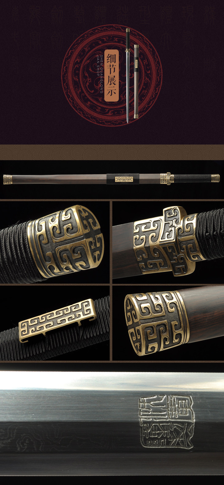 霸王剑 掌门沈州 全手工传统收藏宝剑 龙泉沈广隆剑铺宝剑 定制品 工艺品 未开刃 镀金银装