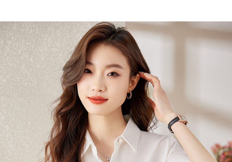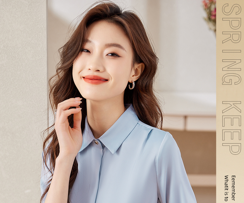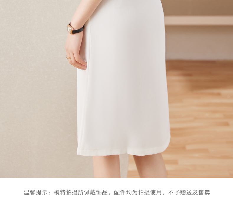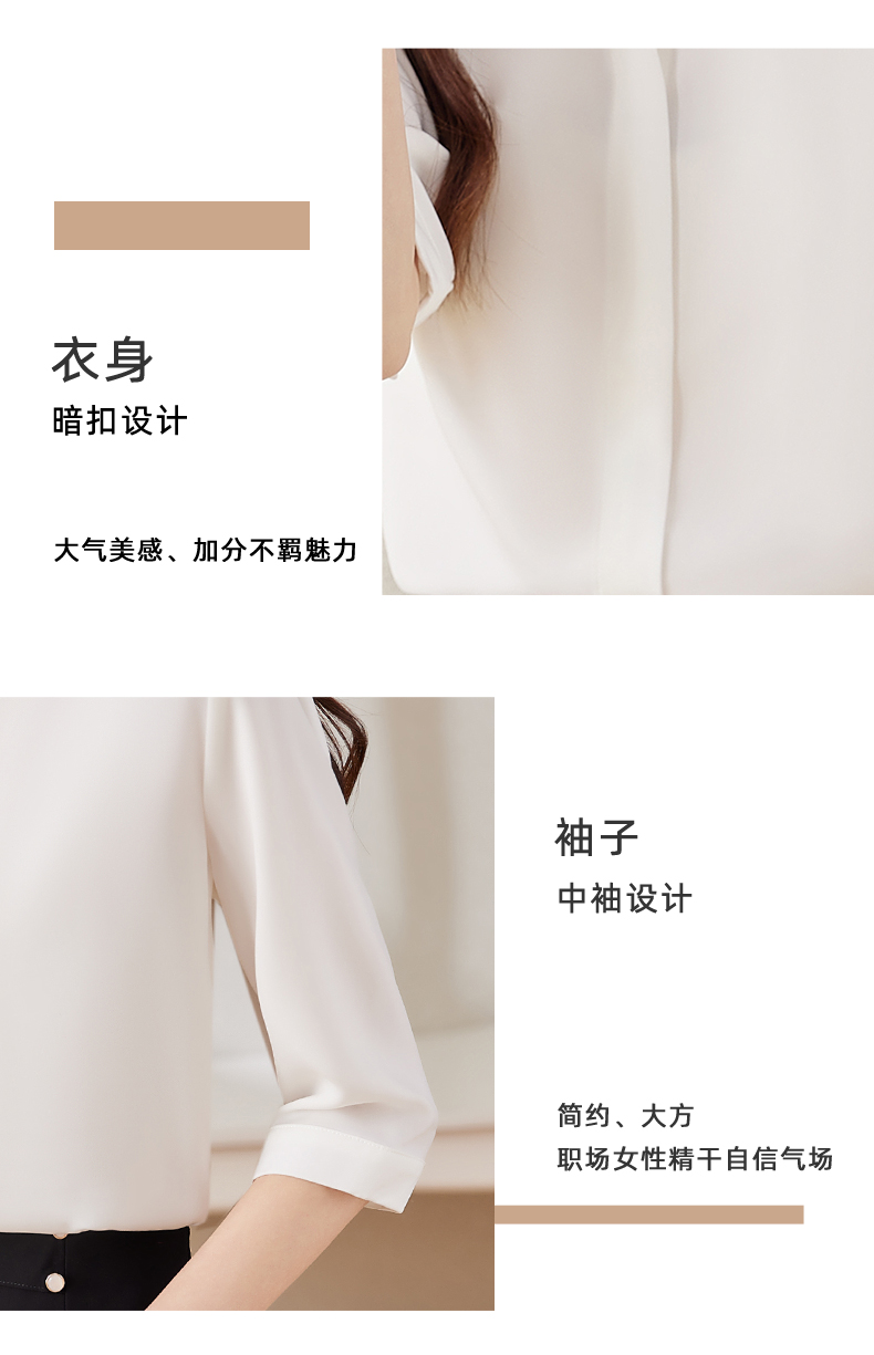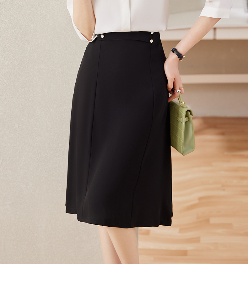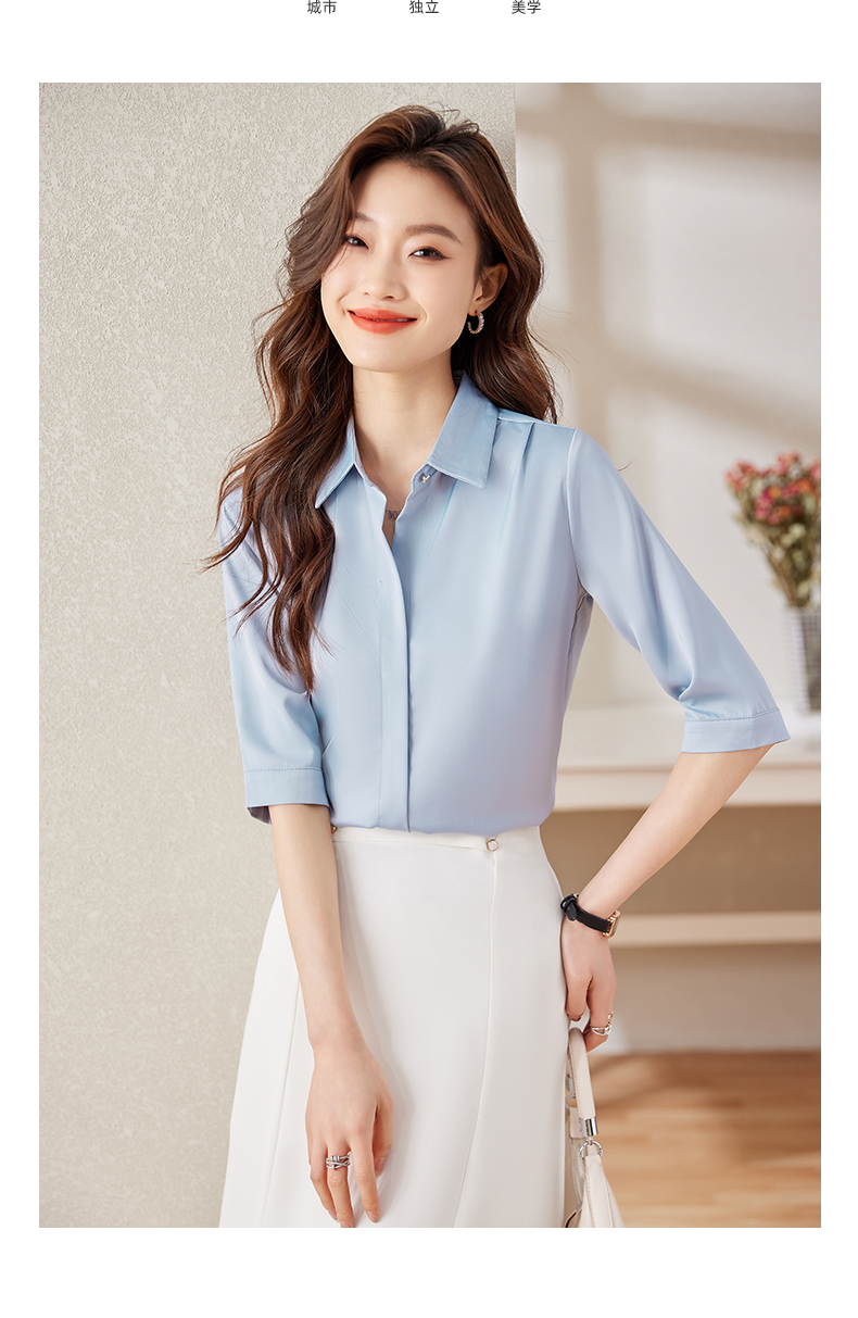 五分袖缎面职业时尚衬衫高腰A字半身裙子两件套