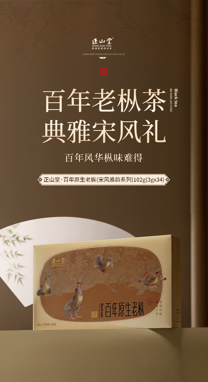 正山堂 宋风雅韵百年老枞礼盒装 正山小种红茶特级茶叶年货送礼102g