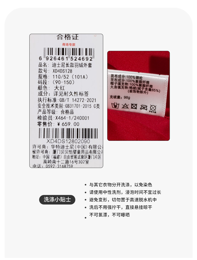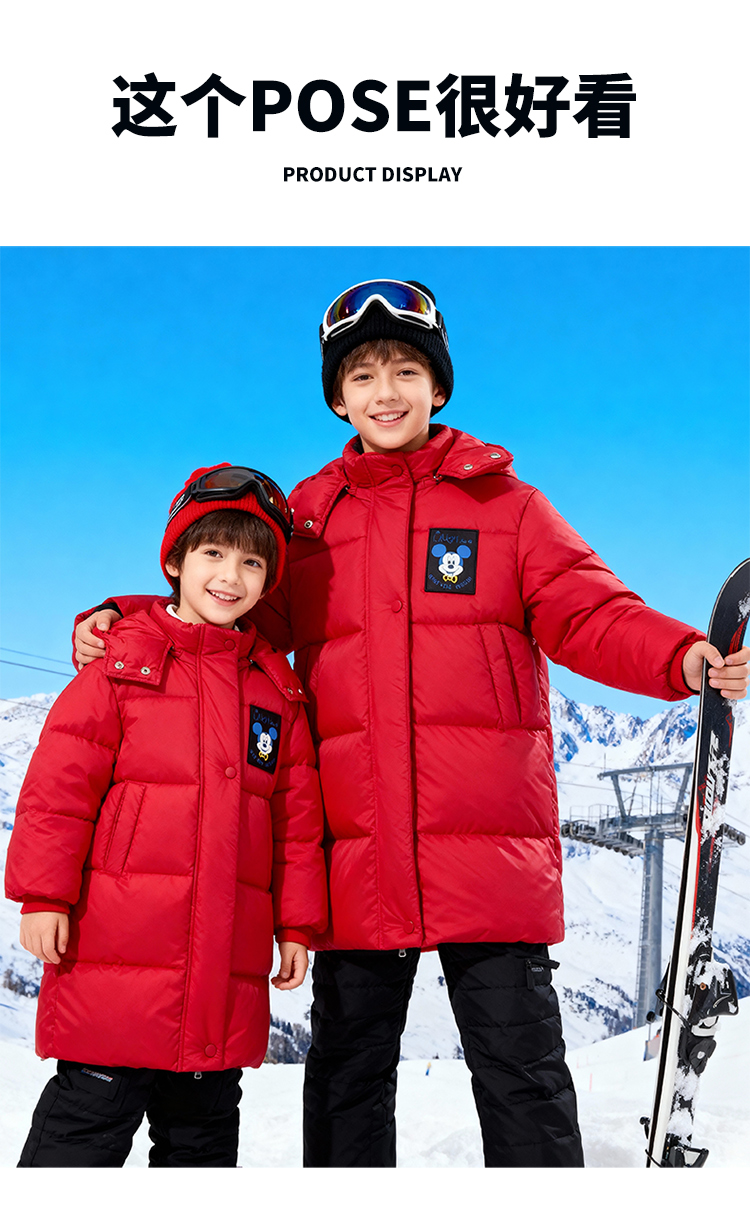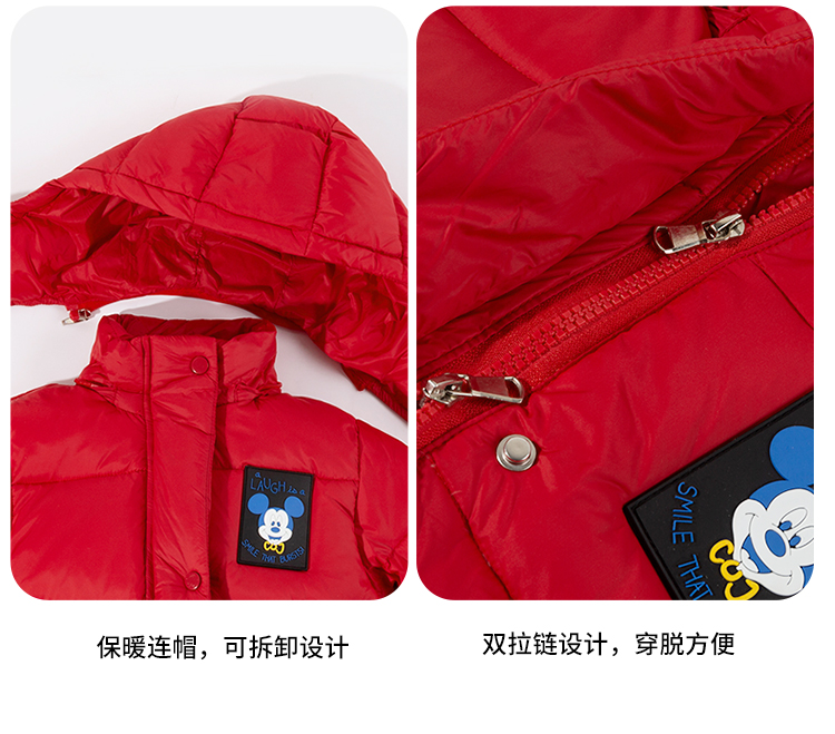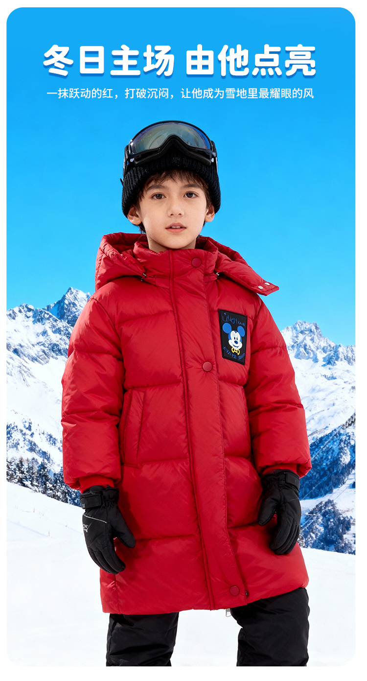 迪士尼男童大红过年款保暖中长款羽绒服XD4DS128