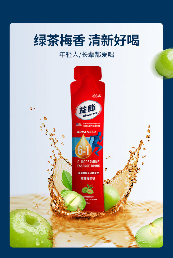 美国进口Move Free益节氨糖软骨素系列 红瓶日常养护 绿瓶添加缓痛因子 液体氨糖新升级