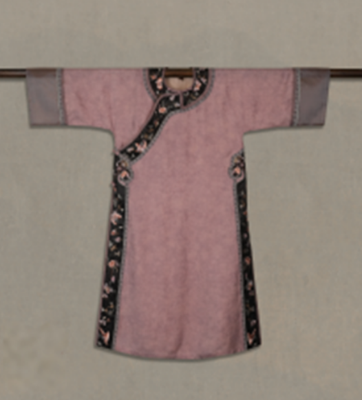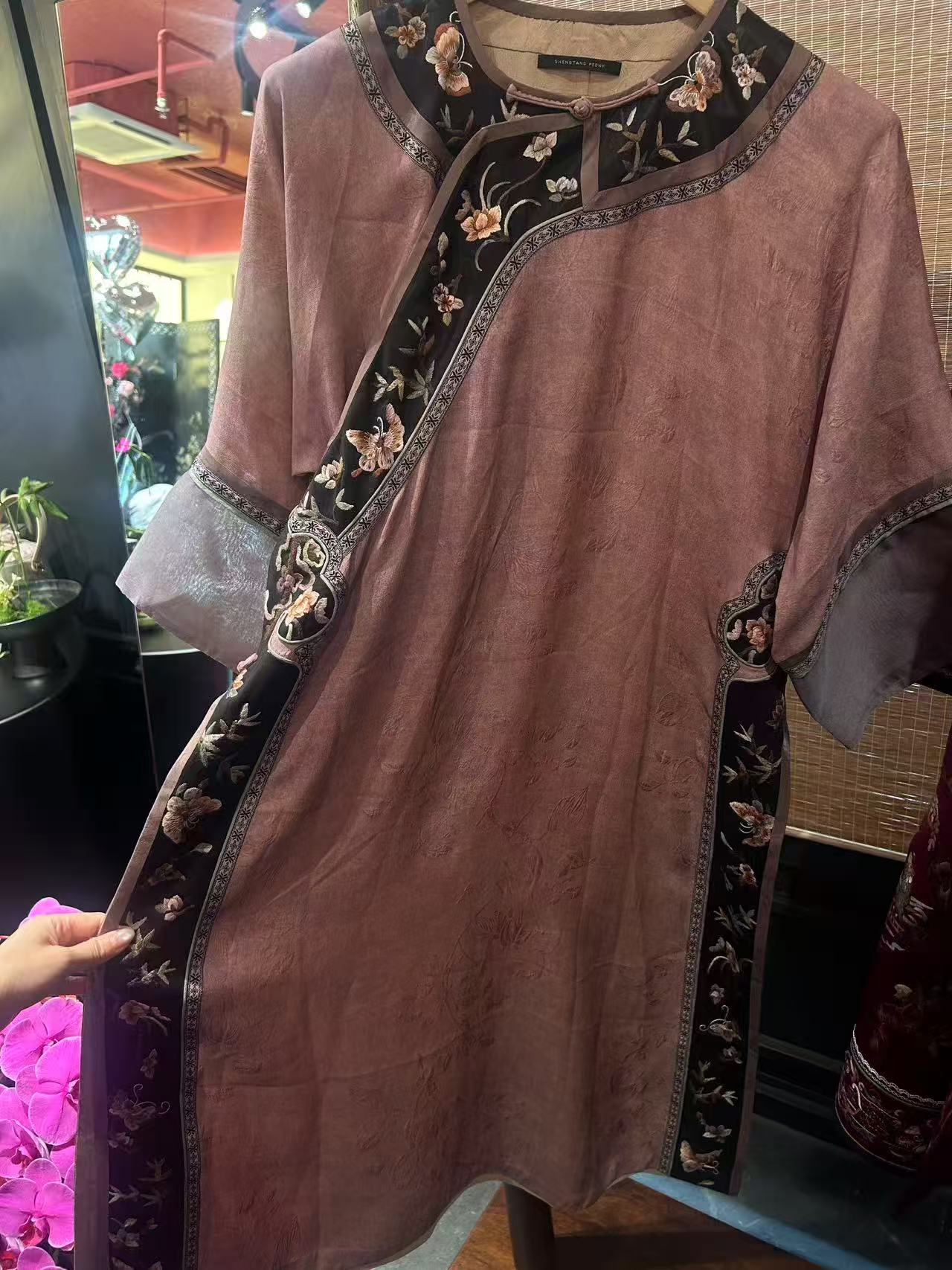 盛唐牡丹盛奢系列| 真丝香云纱手绣偏襟长袍-粉色