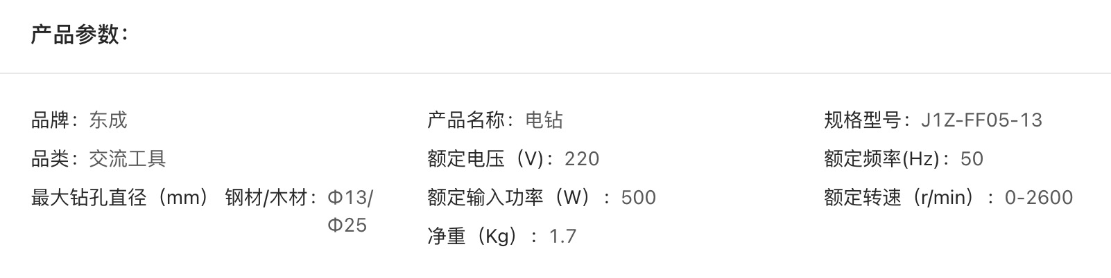 电钻(东成) J1Z-FF05-13(自锁)