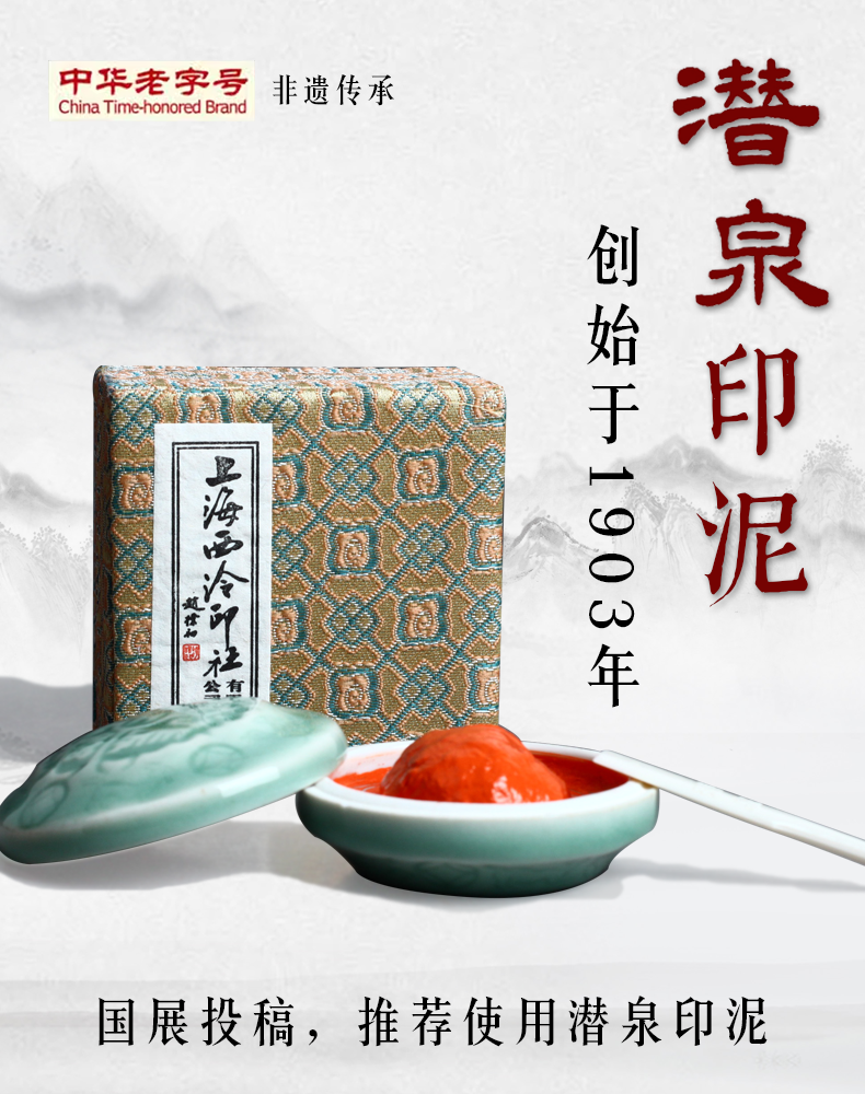 上海西泠印社潜泉-式熊上品朱砂30g盒装 高级书法书画用印章篆刻印泥