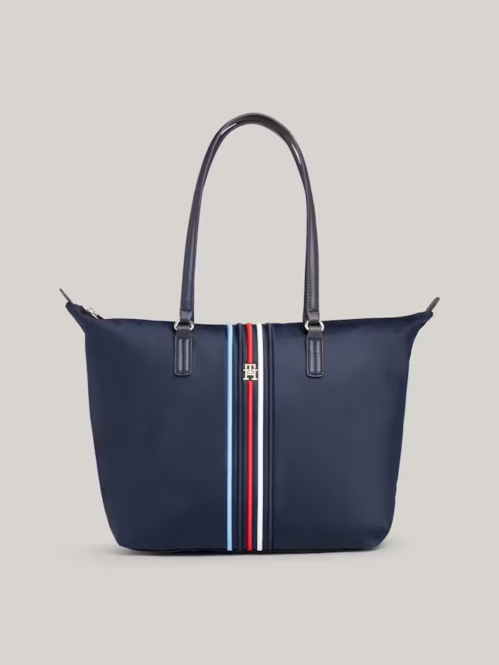 贝壳三 休闲拼色织带尼龙大容量单肩包简约金属手提托特包C022401