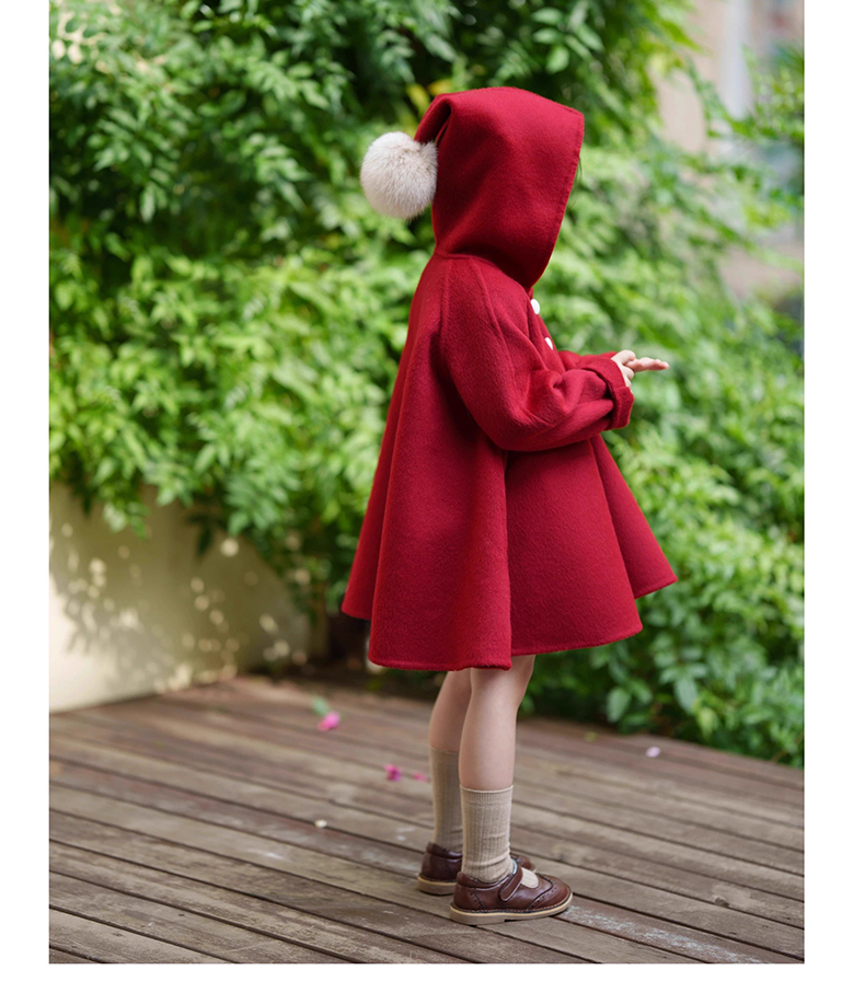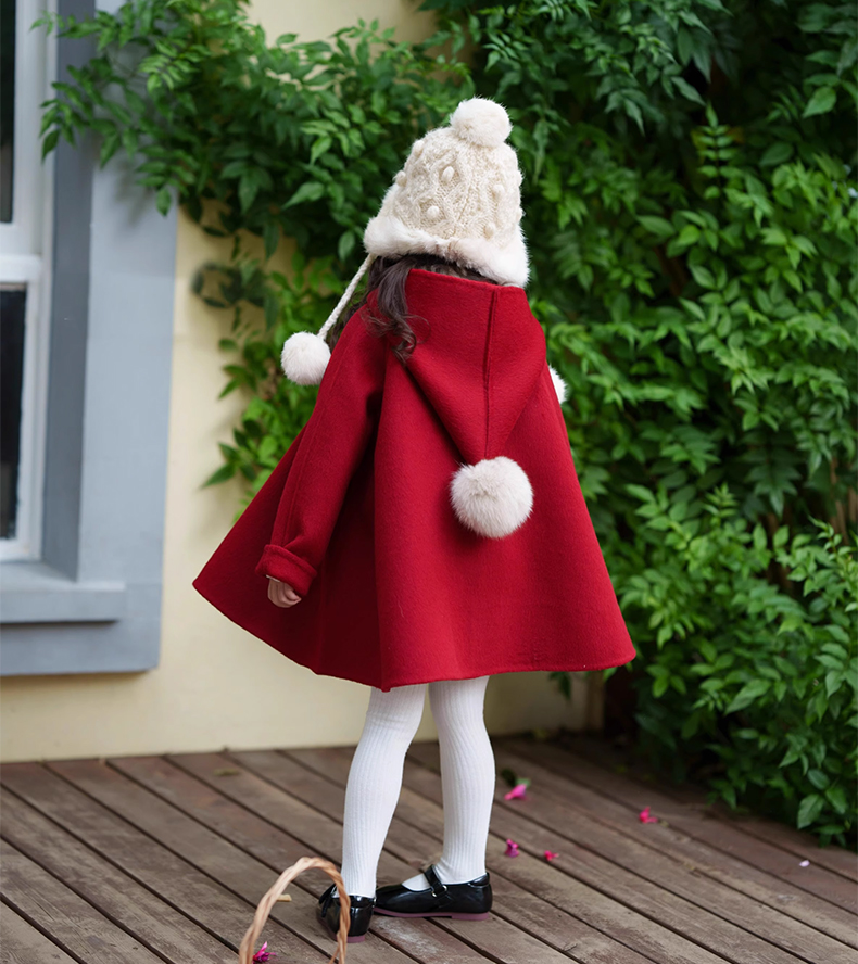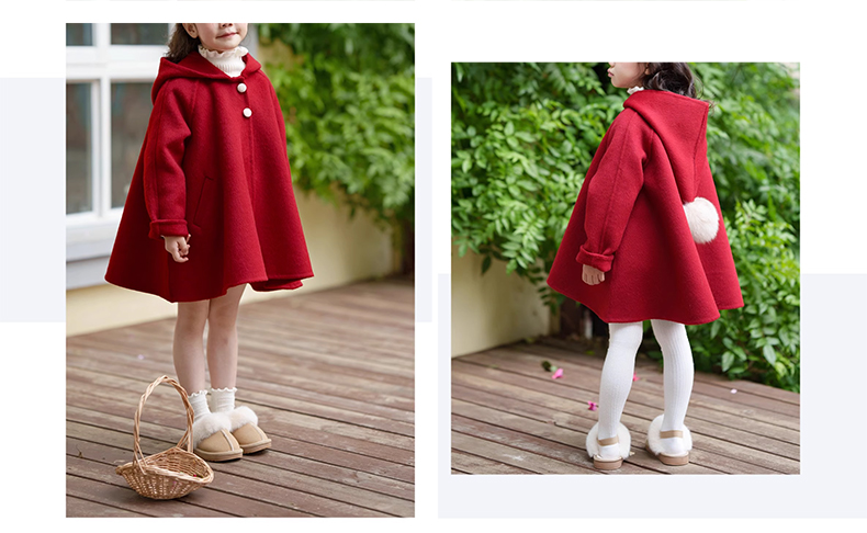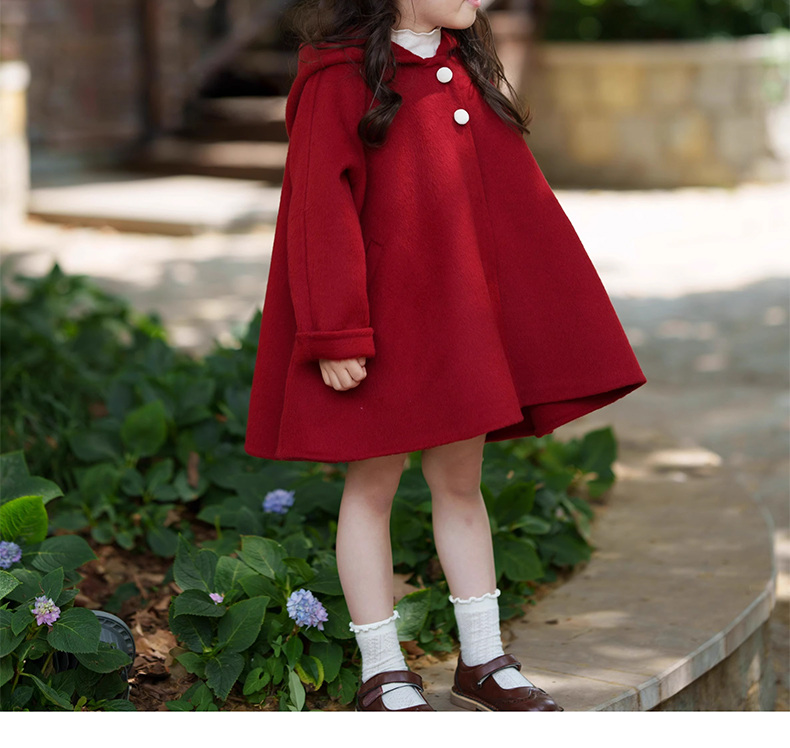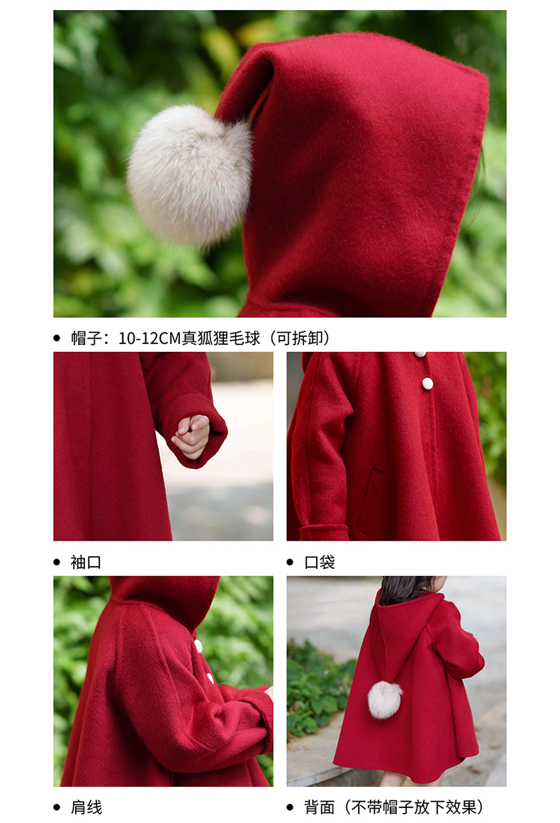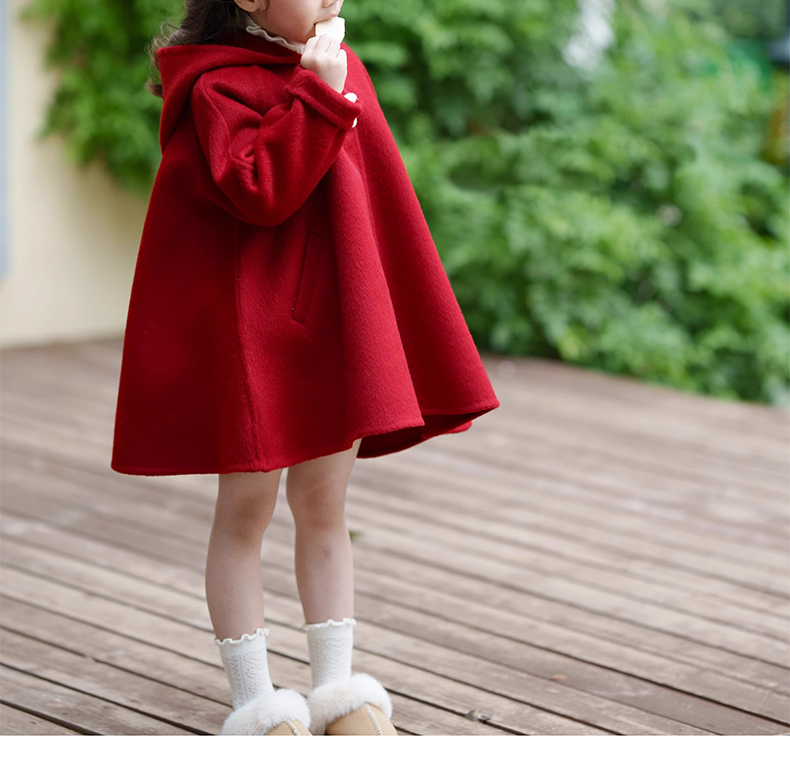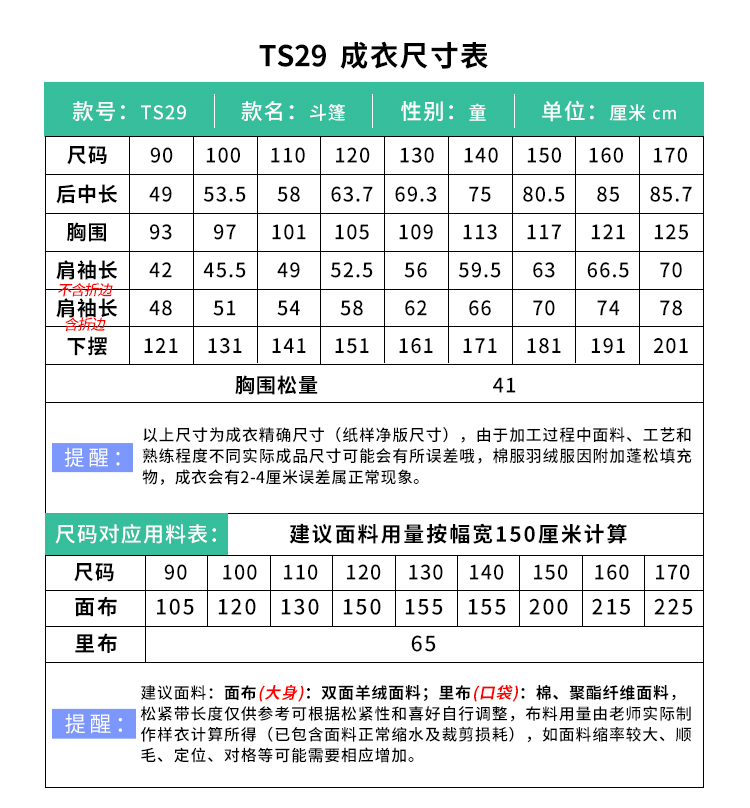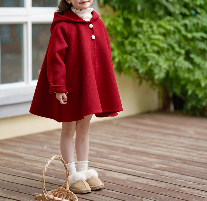 裁缝学苑TS29双面羊绒儿童连帽大衣纸样斗篷毛呢童装做衣服样板裁剪图