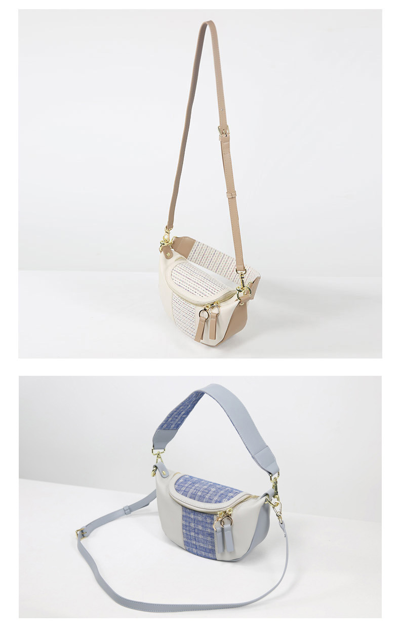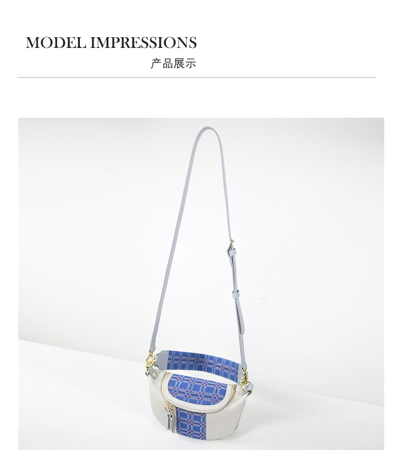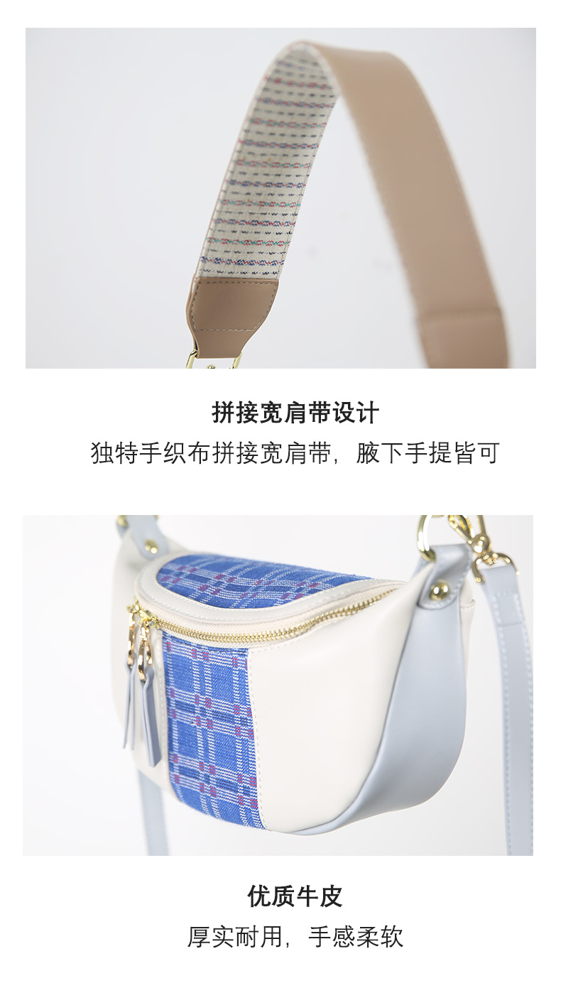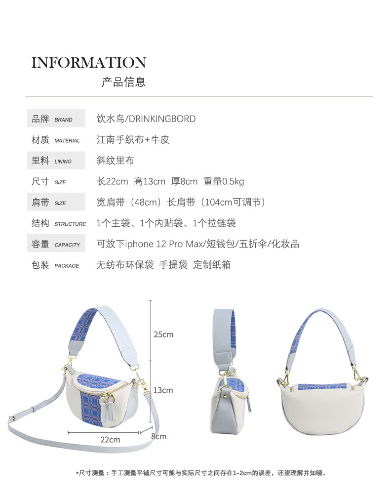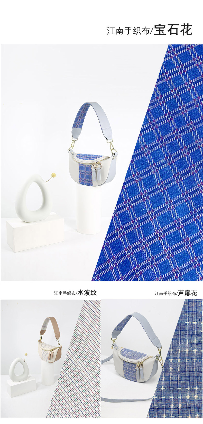 饮水鸟非遗江南手织布真皮百搭包 饺子包 芦扉花/水波纹