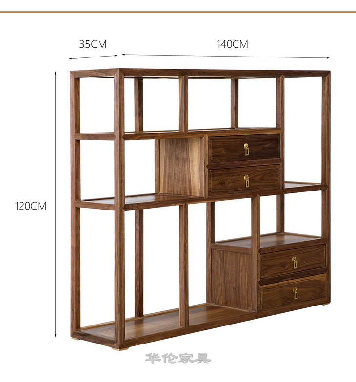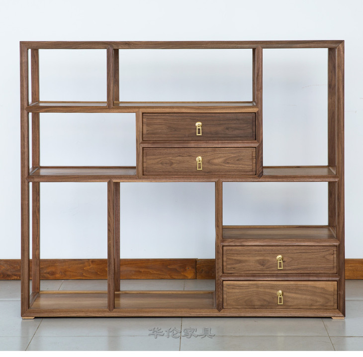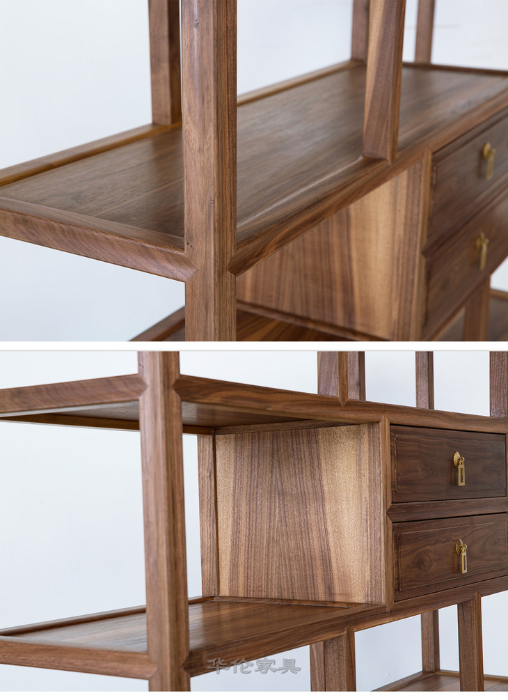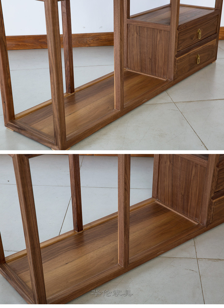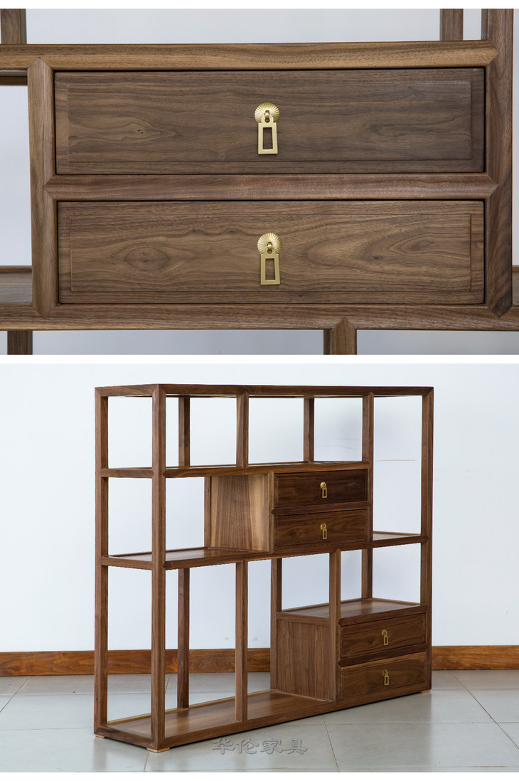 新仿黑胡桃木新中式四屉双面多宝阁书架架子QN1609000766 Newly made Black walnut wood Reproduction Double side display shelf