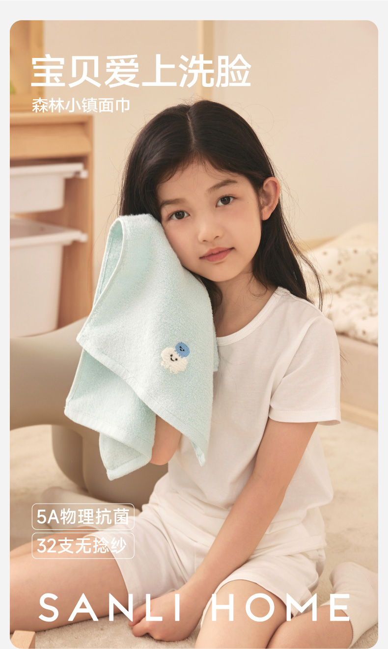 三利5A抗菌儿童毛巾纯棉全棉吸水洗脸洗澡家用柔软宝宝小毛巾面巾