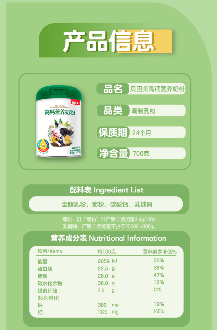 【乳糖酶升级版】贝因美高钙营养奶粉700克