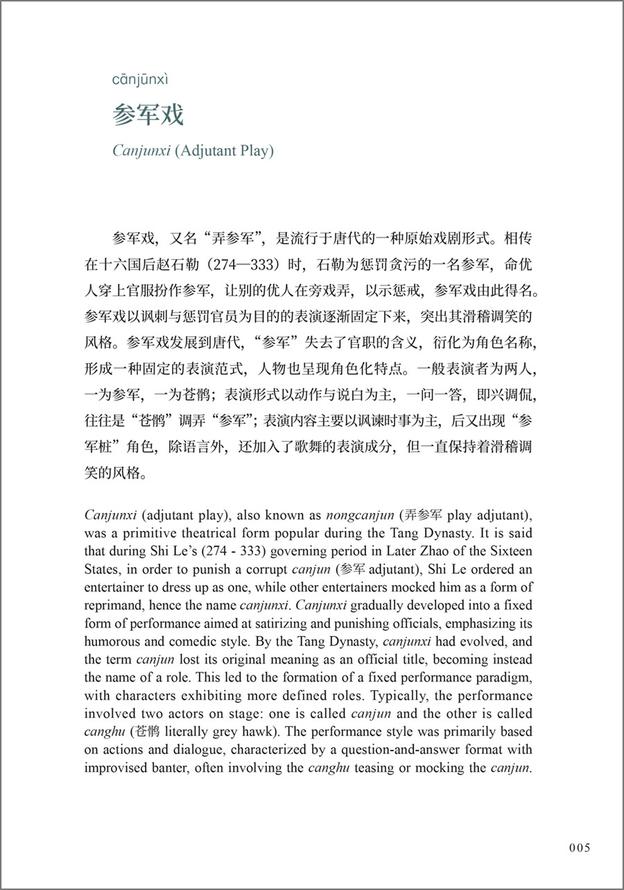 《中国戏曲文化关键词(汉英对照)》为;中华思想文化术语传播工程的重要成果之一。中国戏曲作为中国民族艺术的优秀代表,是世界上三种古老的戏剧文化之一,在世界戏剧舞台上享有盛誉。中国戏曲孕育于先秦及更早的时期,形成于宋元,此后不断丰富、革新、发展,出现了金元杂剧、南戏、明清传奇、京剧昆曲等重要的舞台形态。目前,中国戏曲有348个剧种(截止到2017年底),剧目演出数以万计,其演剧内容、舞台语言、艺术样式等,在中华艺术史乃至世界艺术史上,都闪烁着独特的艺术光芒。为更好地实现中国戏曲内容的文化阐释,推动中外戏剧交流互鉴,讲好中国戏曲故事,中国文化故事,中国故事,本书特从中国戏曲如烟海般文化宝库中遴选出富有文化内涵的一百多个词汇,通过解读、阐发,以实现中国戏曲文化的当代化、国际化发展,进而为世界戏剧之发展、世界文化之繁荣贡献中国戏曲智慧。