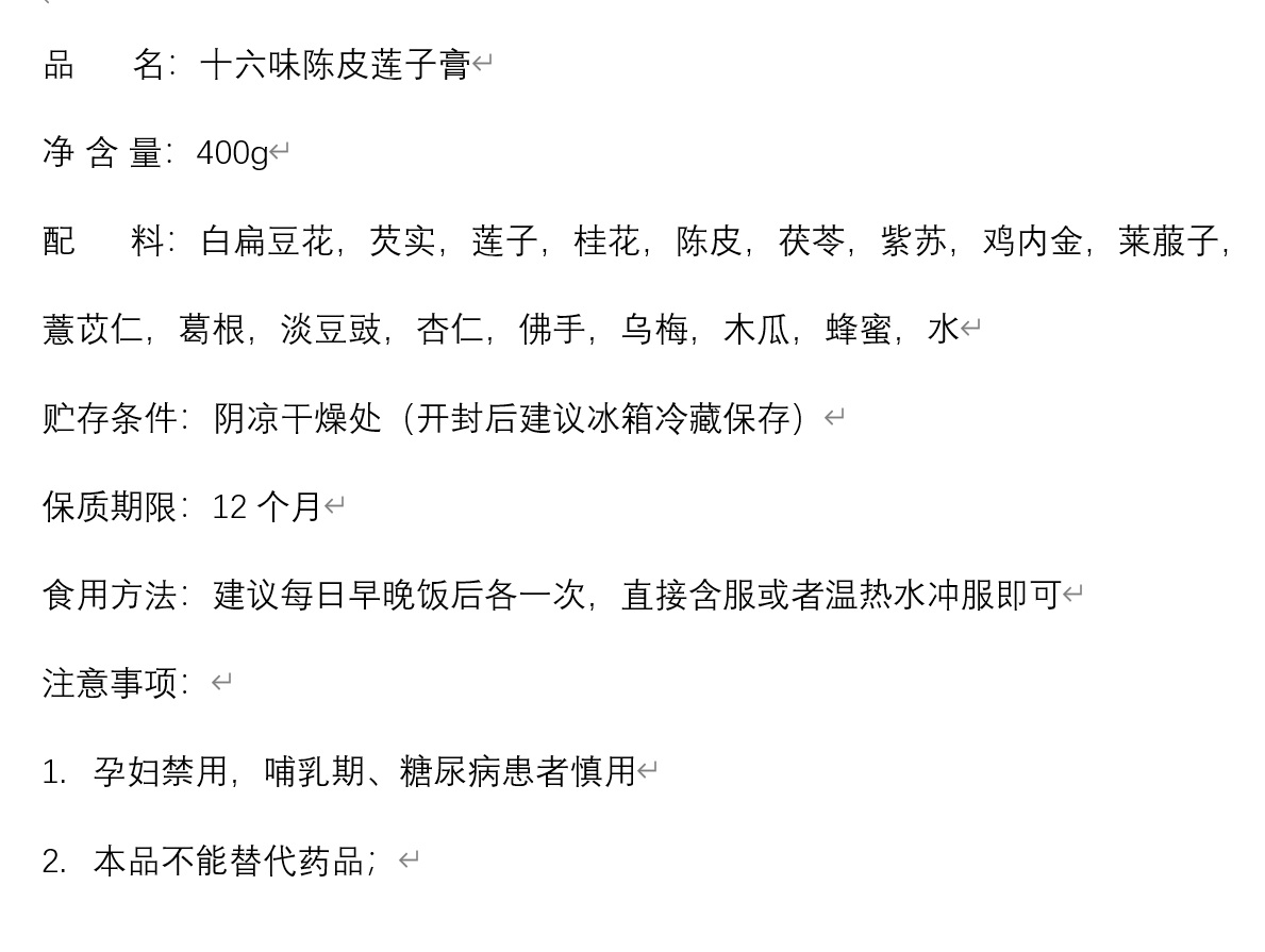 十六味陈皮莲子膏 脾胃 3岁以上皆可用 传统熬制