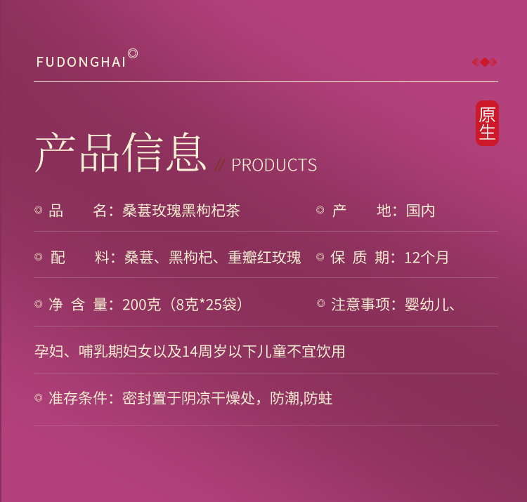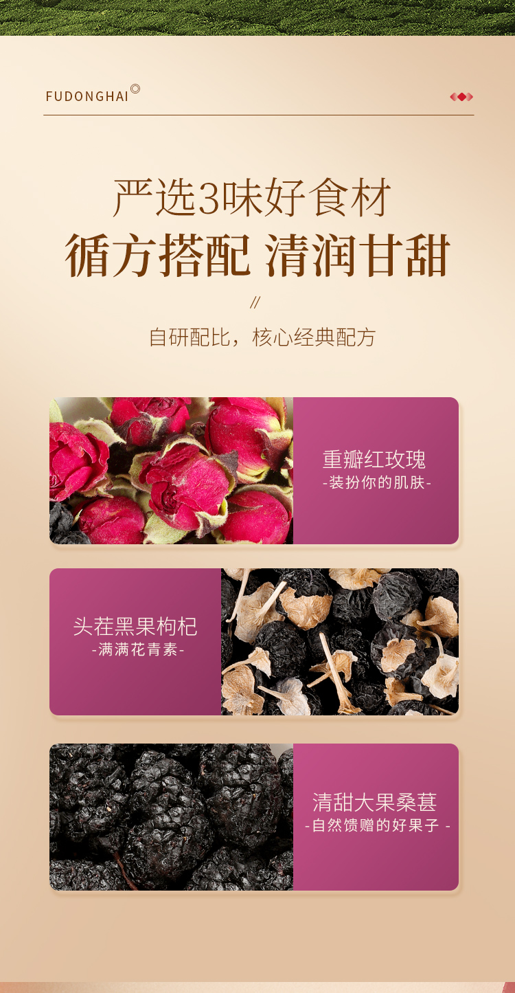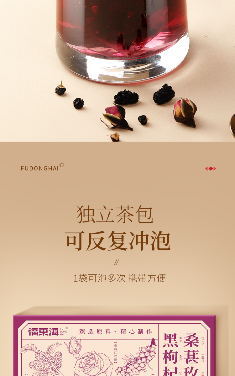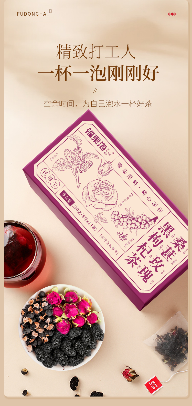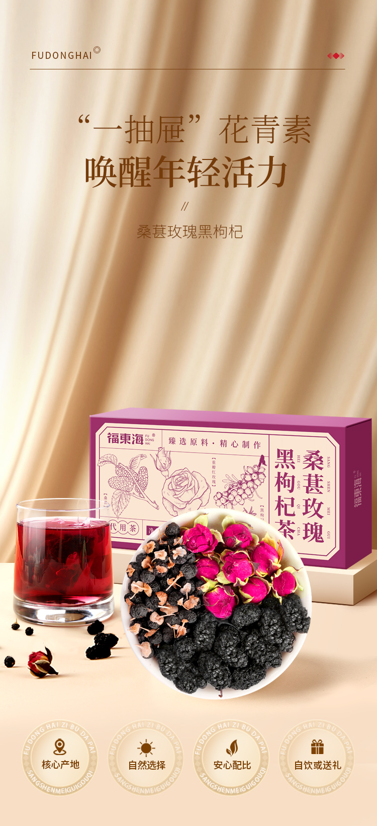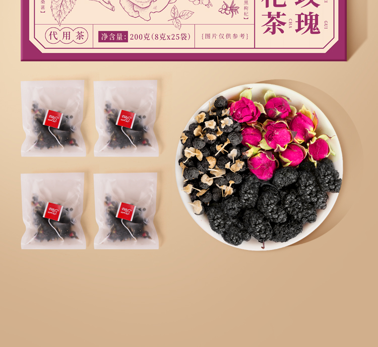 福东海 桑葚玫瑰黑枸杞茶200克 重花青素重瓣玫瑰花茶女神养生泡水茶包