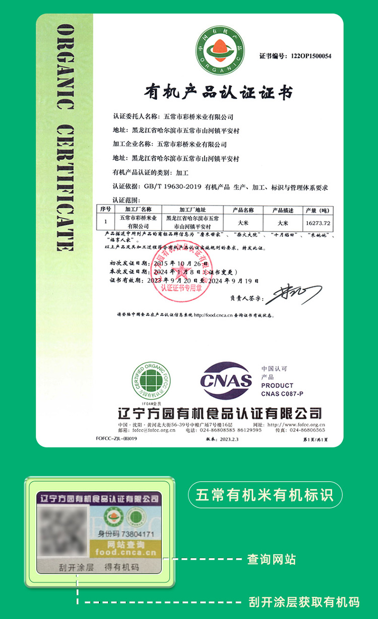 十月稻田 有机五常大米5kg/袋*2