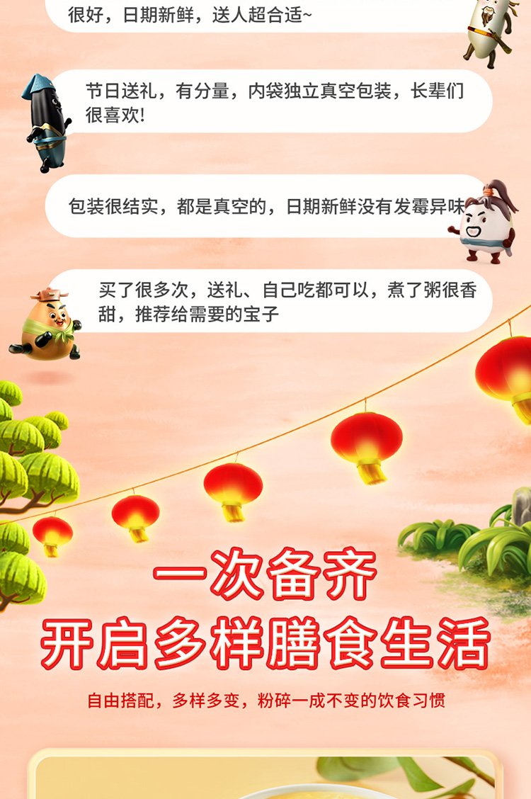 【配 料】黄豆、荞麦米、血糯米、糙米、小麦仁、糯米、燕麦米、高粱米、黑米、大黄米