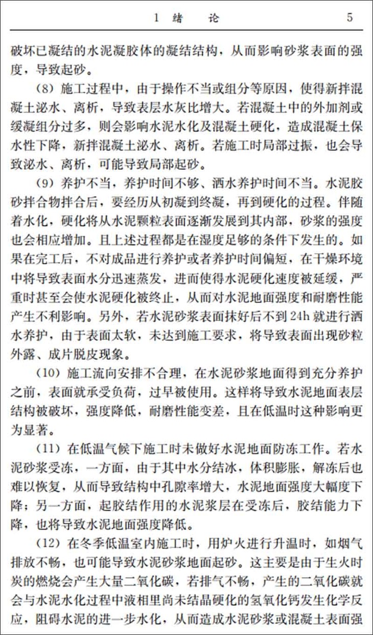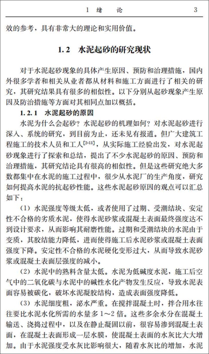 水泥起砂现象严重影响建筑物质量,但目前仍缺乏水泥抗起砂性能检测方法,更缺乏对提高水泥的抗起砂性能的了解。《水泥起砂成因与对策》一书在系统研究了水泥起砂的原因及机理的基础上,研发成功了一种操作简单、重现性良好、可定量的水泥抗起砂性能检测设备及检测方法。并以此为基础,详细研究了水泥配比、粉磨工艺、外加剂等水泥生产工艺过程对水泥抗起砂性能的影响规律,力图从水泥生产控制角度提高水泥的抗起砂性能。此外,还研究了水泥施工时的水灰比、灰砂比、施工操作及养护条件等因素,对水泥砂浆及混凝土表面起砂量大小的影响,并从微观角度分析了水泥起砂的机理。最后,还详细探讨了水泥起砂的预防措施,以及水泥起砂后的修复方法。