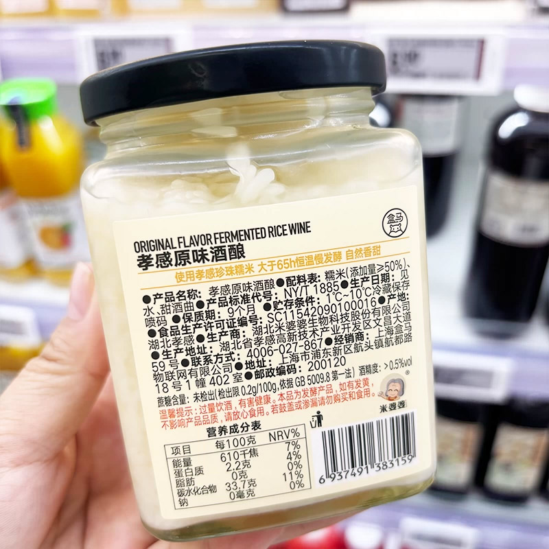盒马孝感原味酒酿400g瓶装自然香甜红枣桂圆枸杞酒酿早餐晚餐