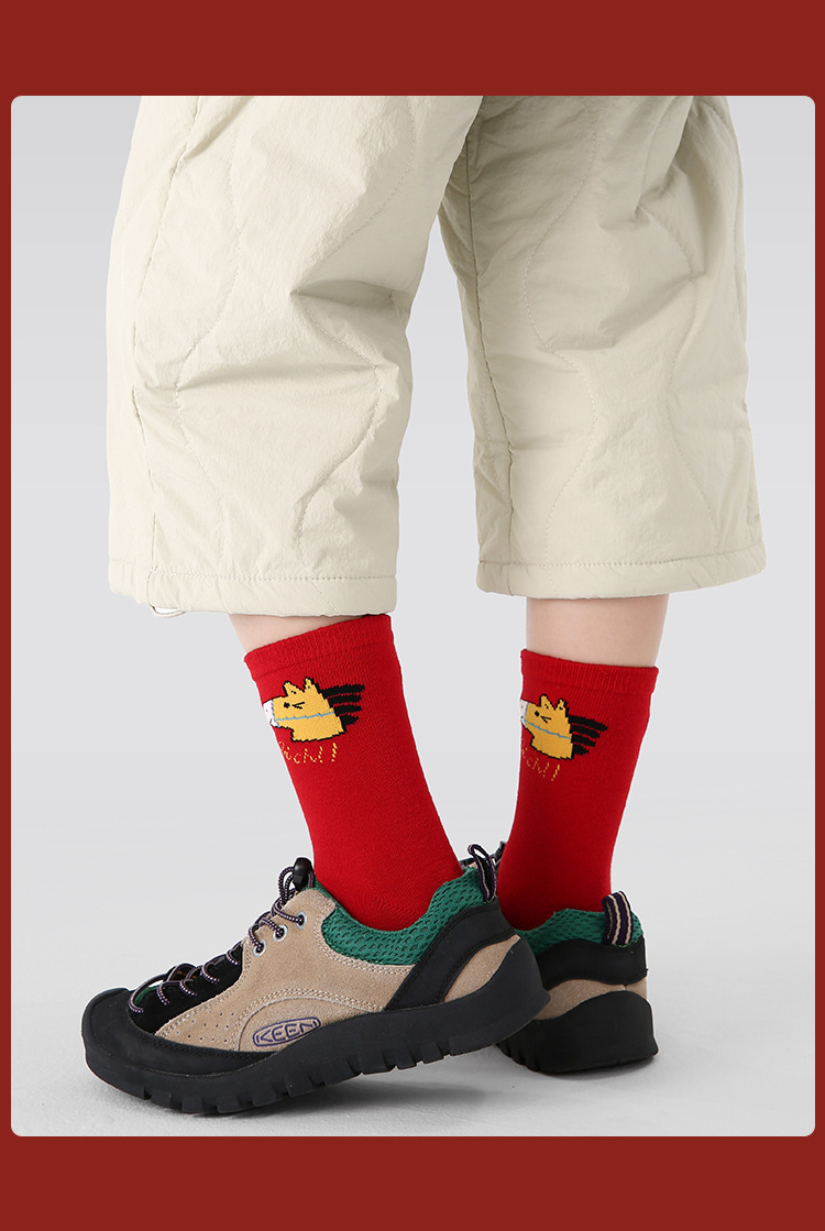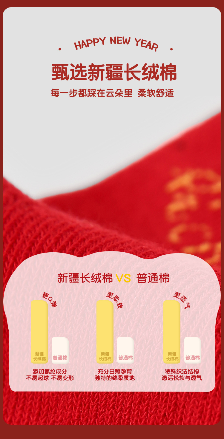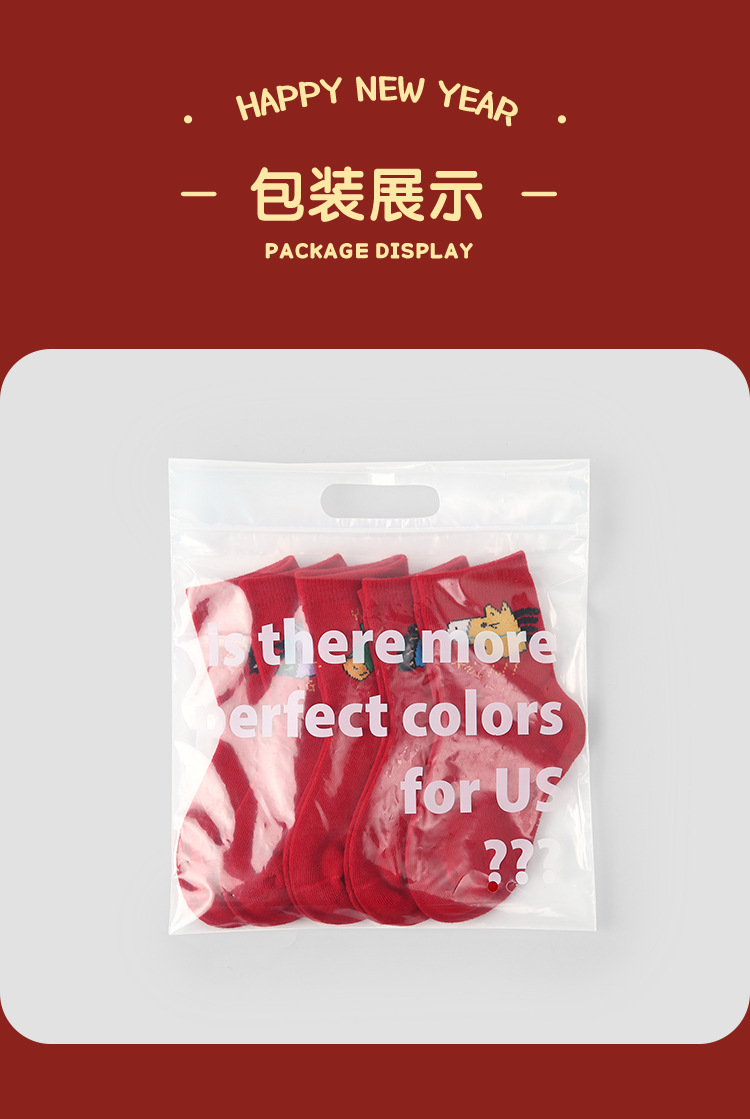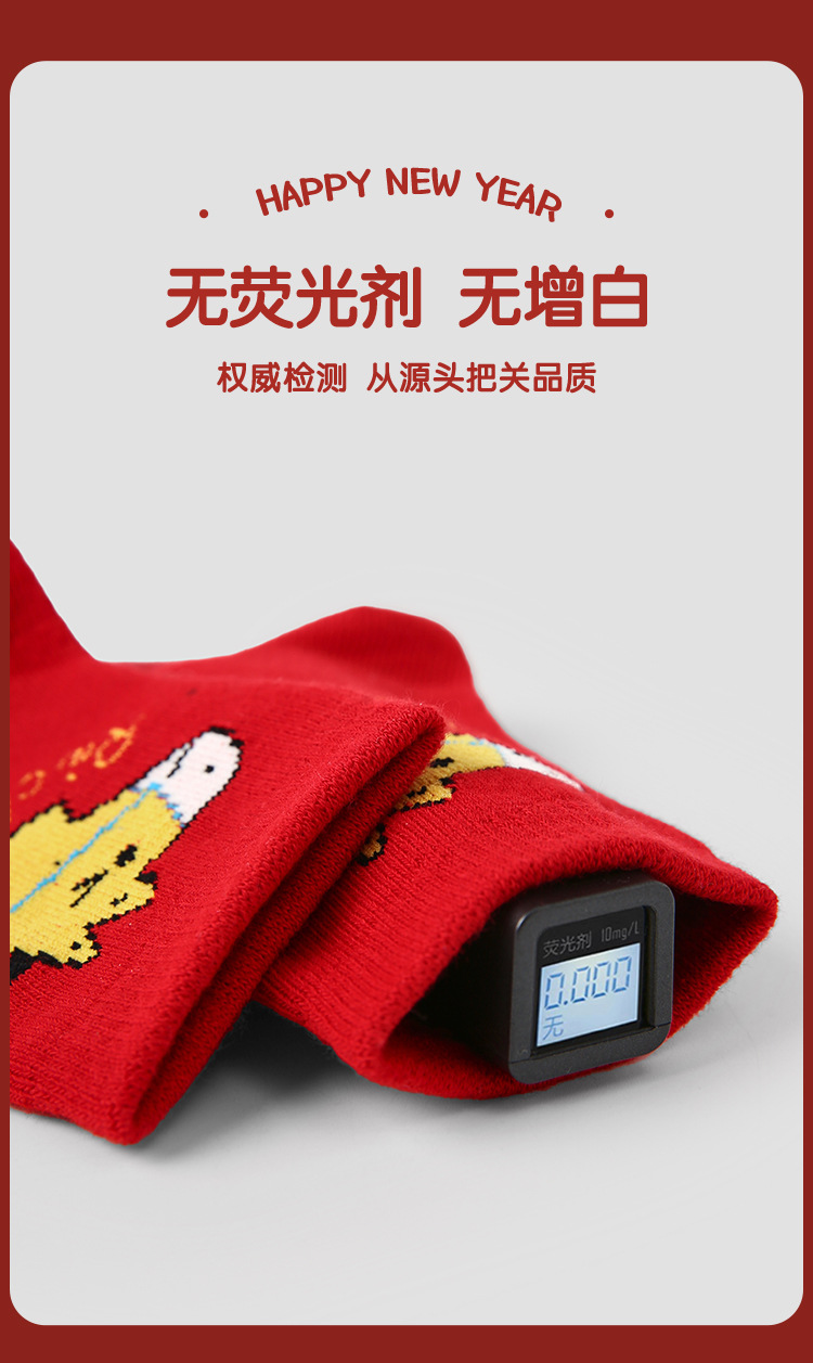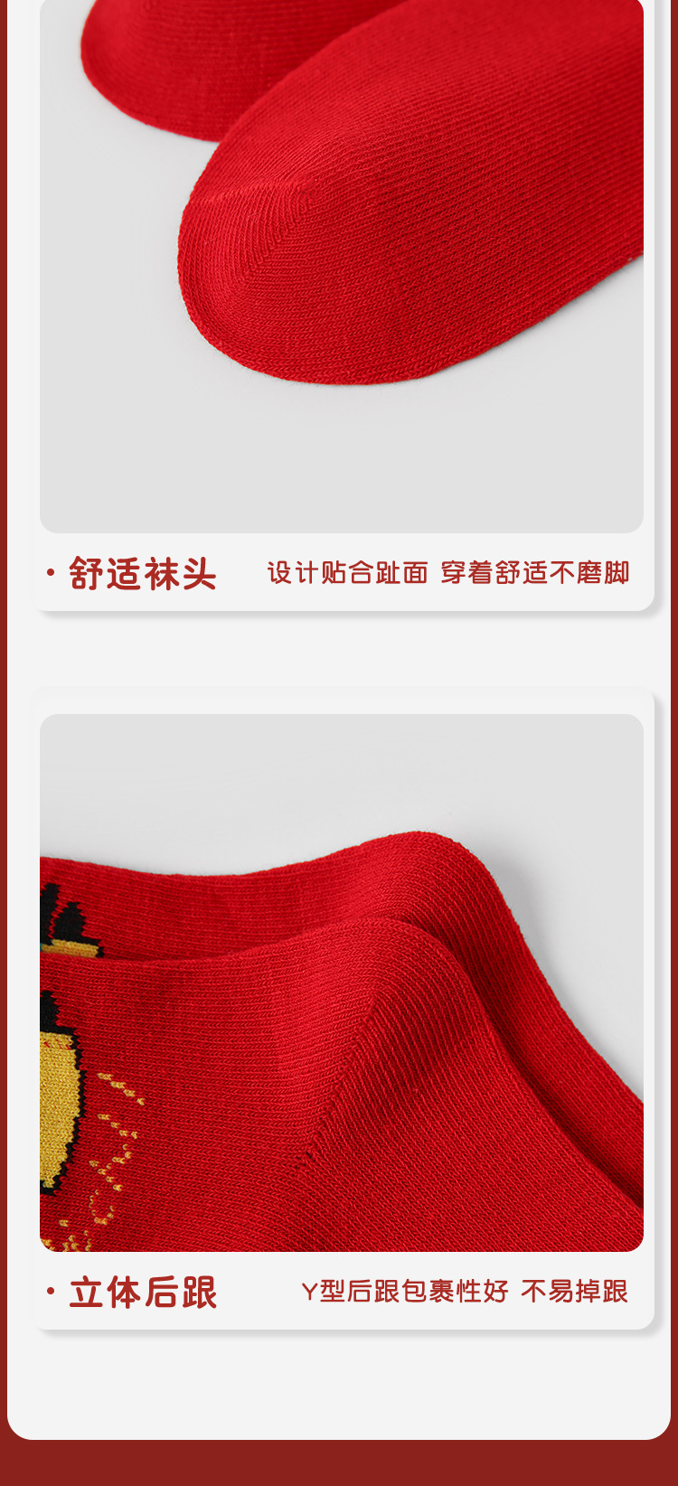 5双装!2026马年大红色幸运加马儿童袜 新年袜无骨卡通棉袜子中筒袜