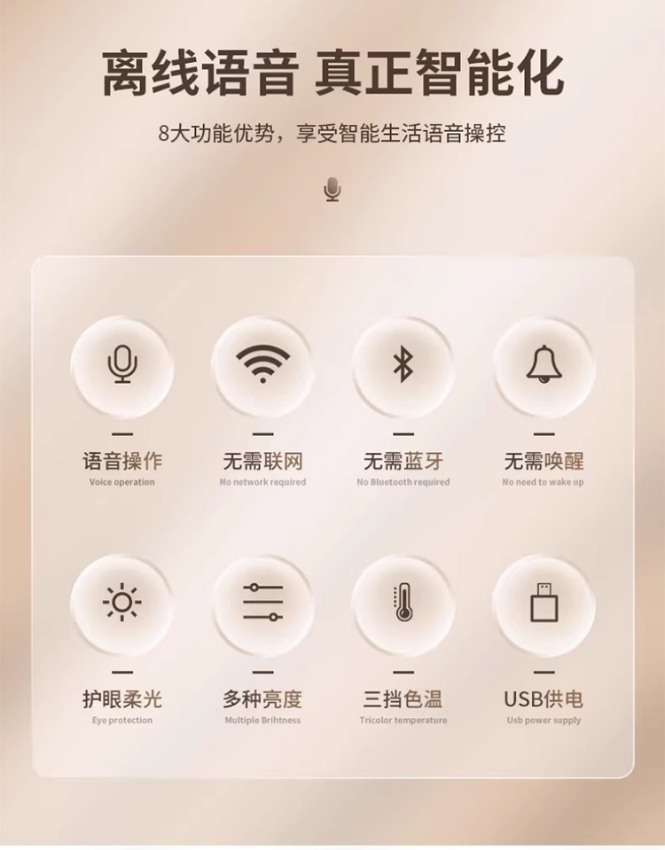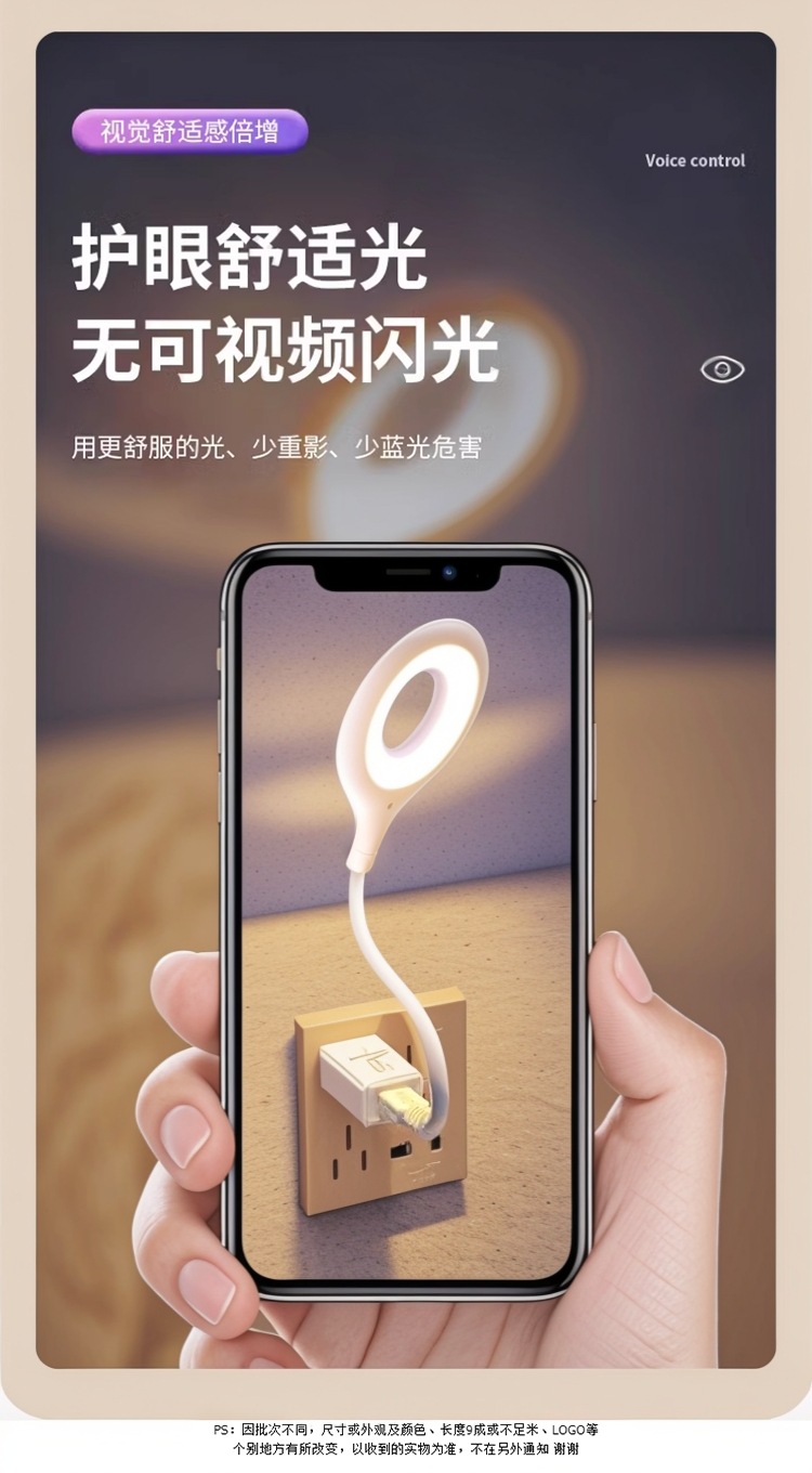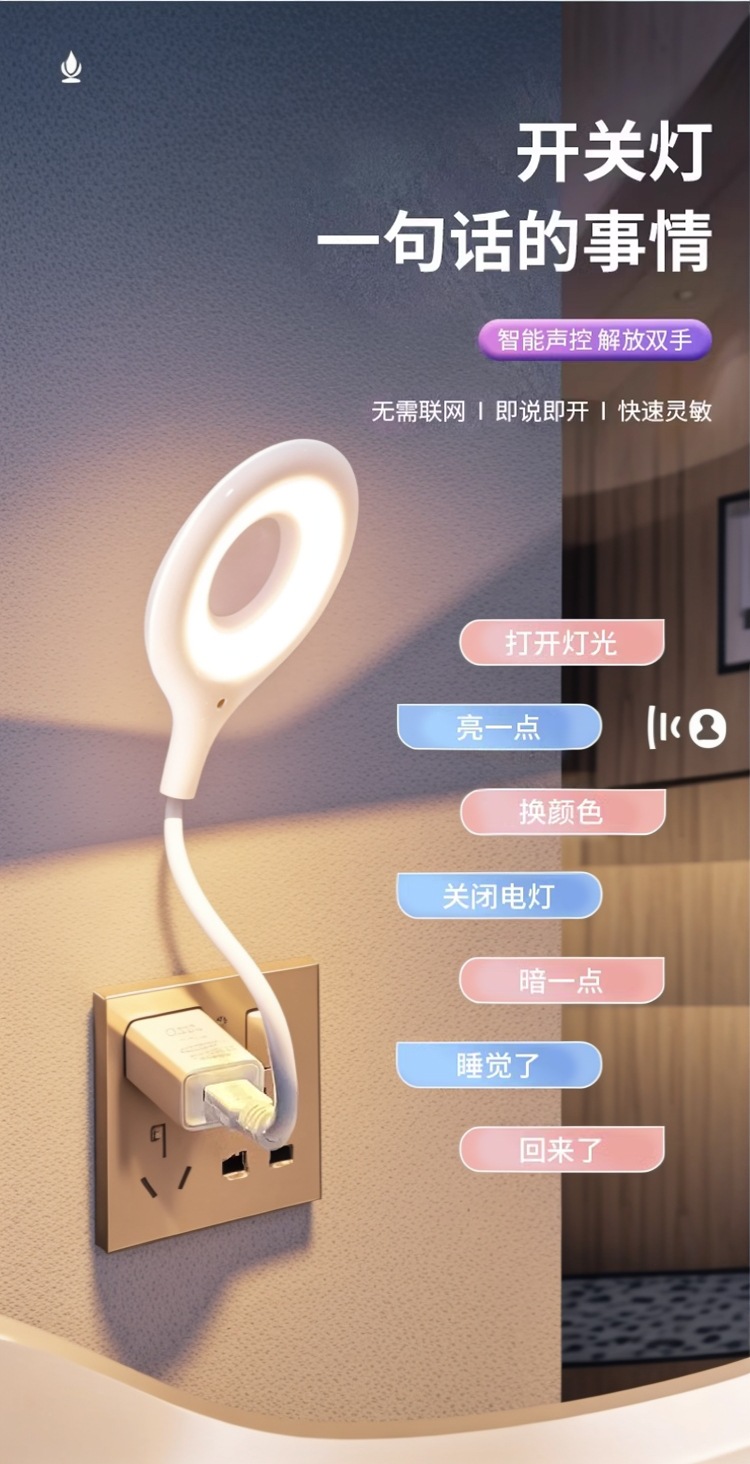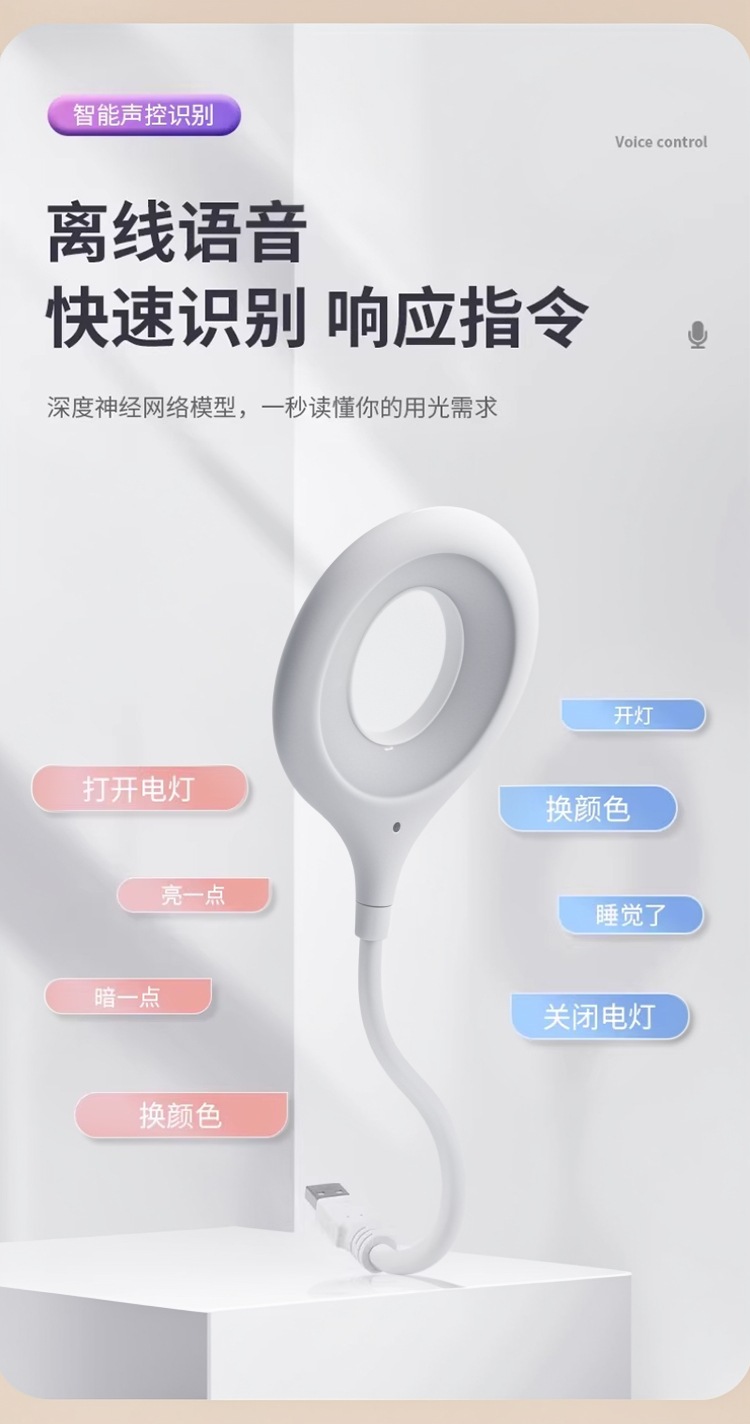 USB智能语音台灯声控灯感应灯护眼小夜灯卧室床头柜照明灯三色灯