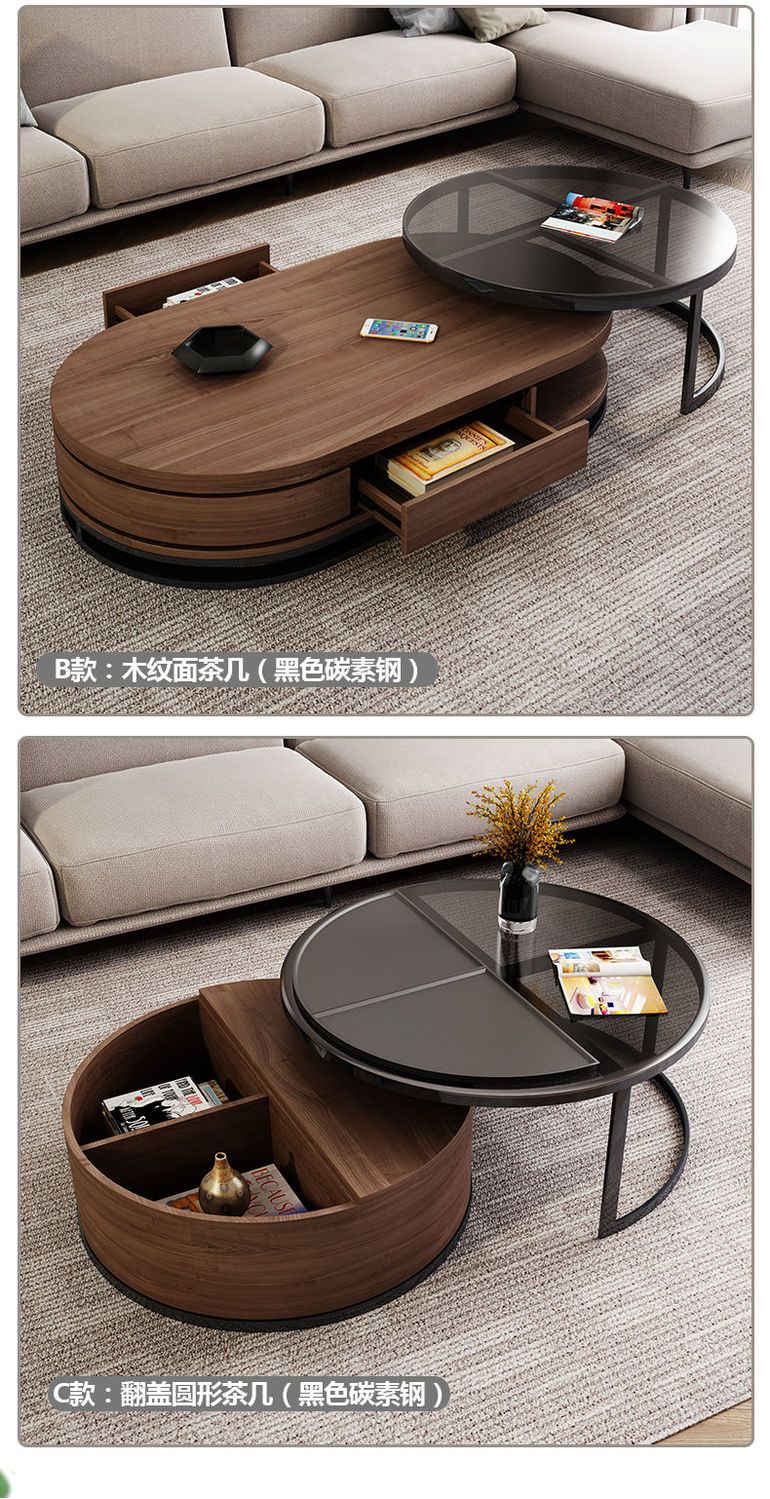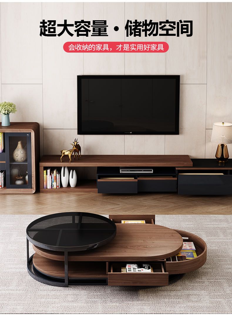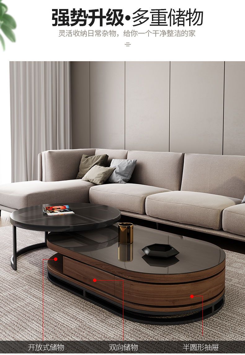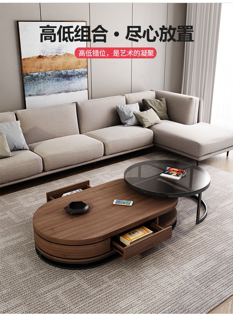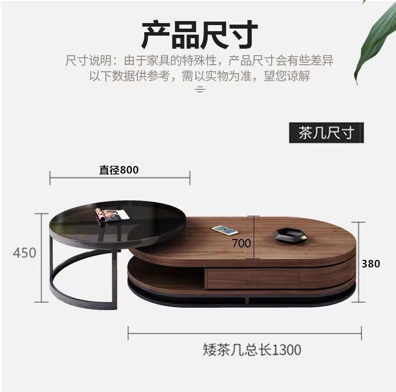 茶几电视柜简约现代圆形钢化玻璃茶几桌客厅家用小户型多功能桌子