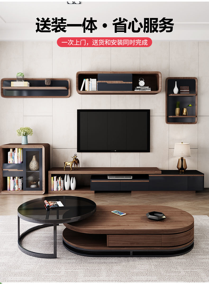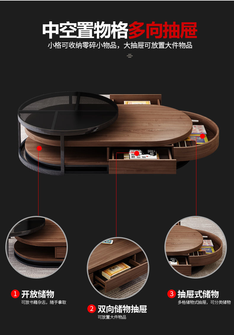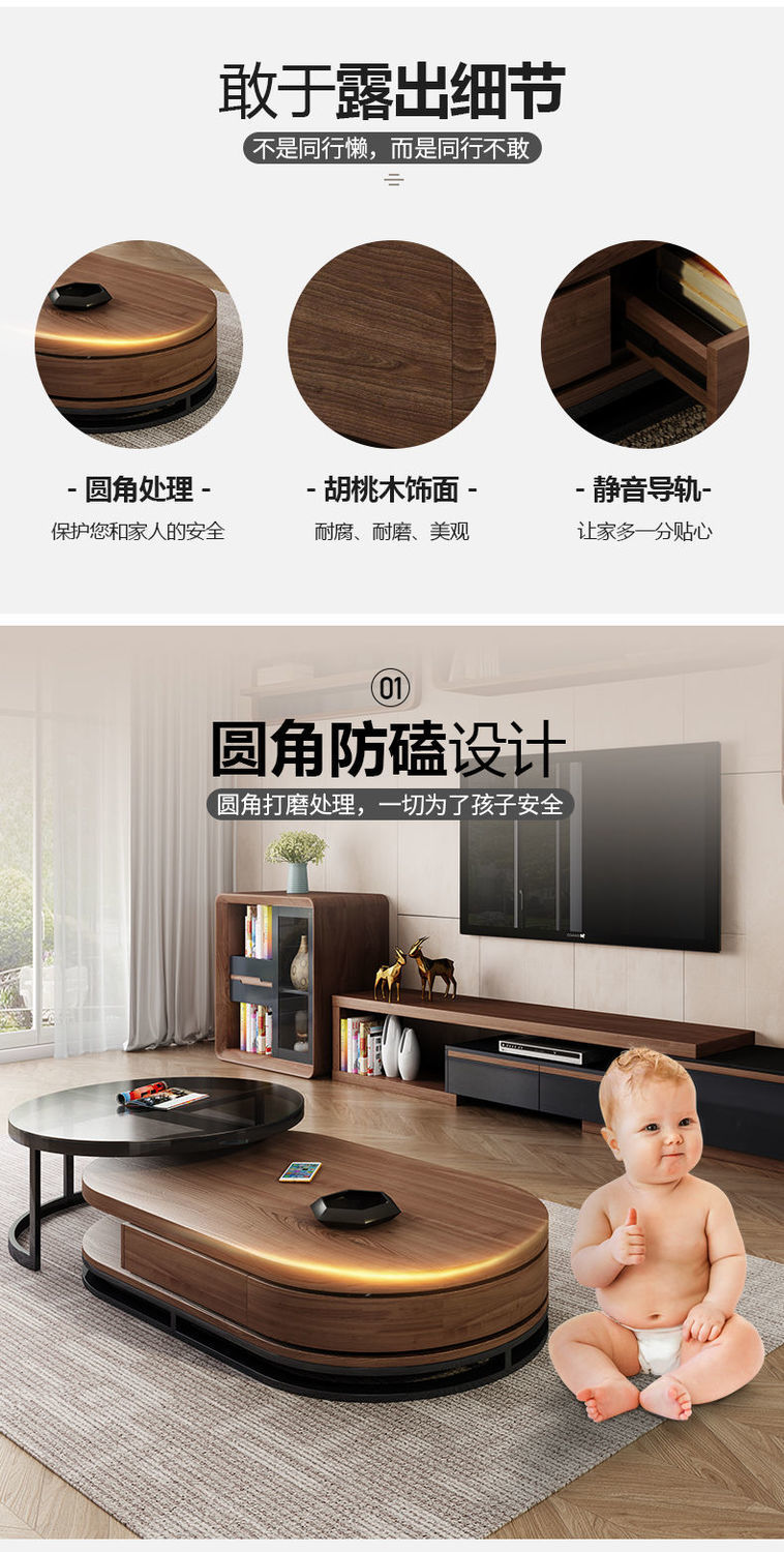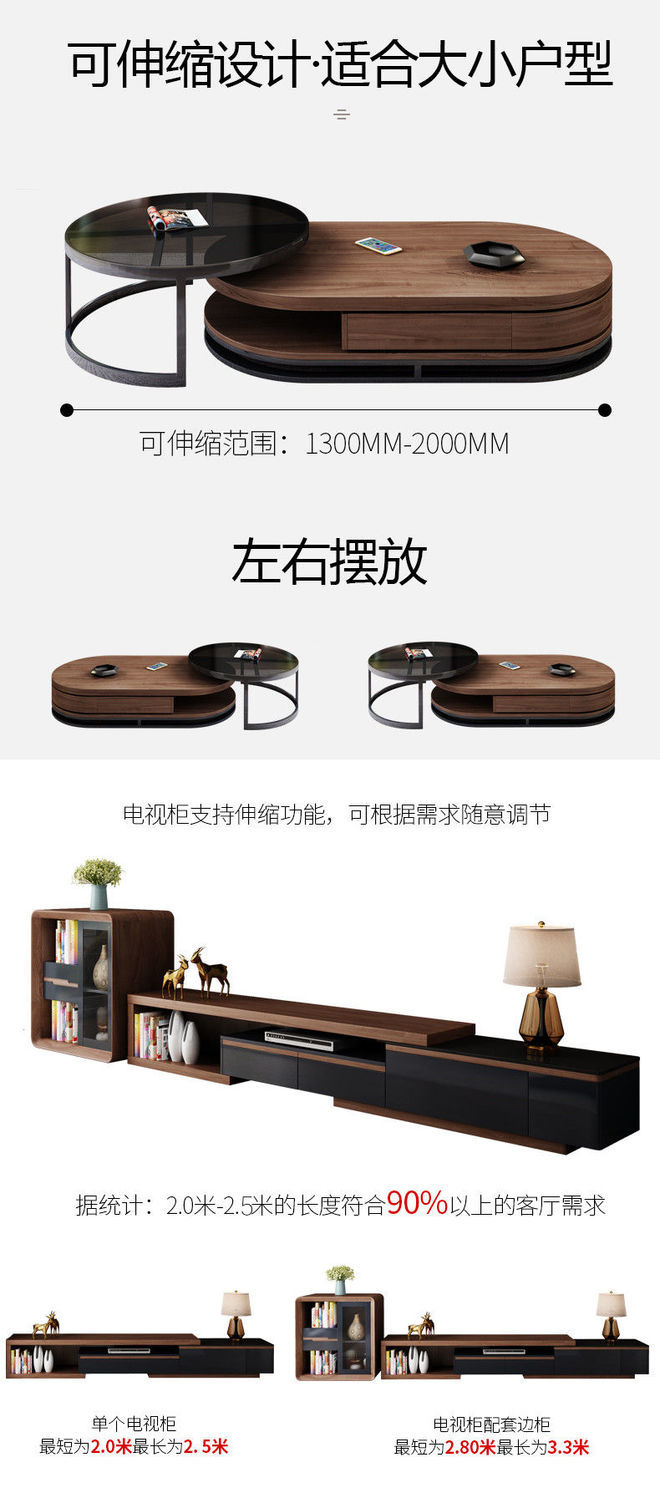 茶几电视柜简约现代圆形钢化玻璃茶几桌客厅家用小户型多功能桌子