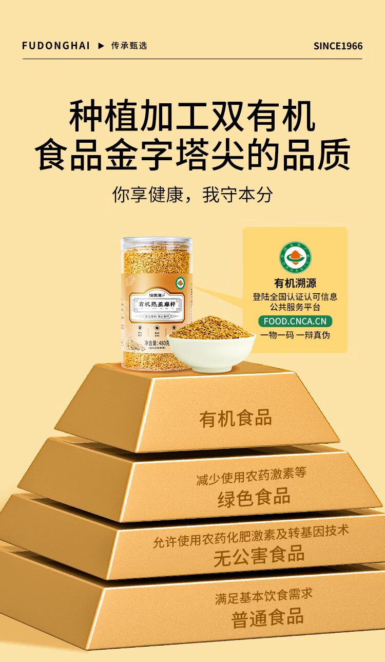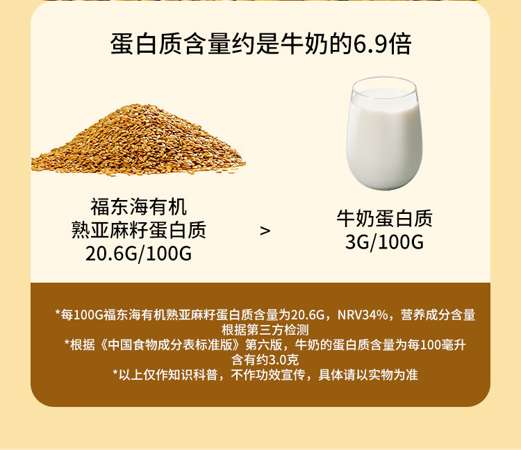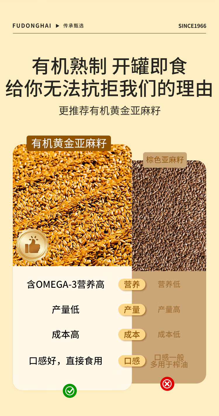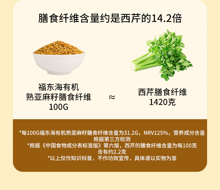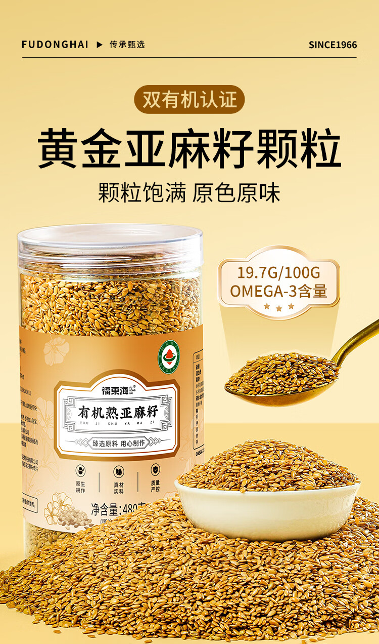 福东海 有机熟亚麻籽480克 低温烘焙黄金亚麻子即食代餐磨粉膳食纤维粉