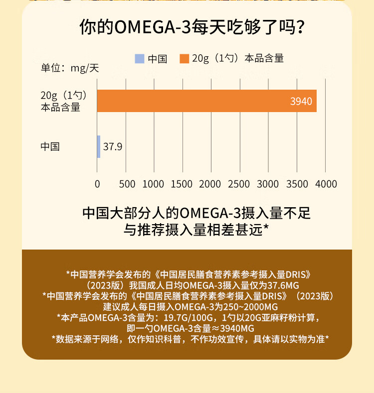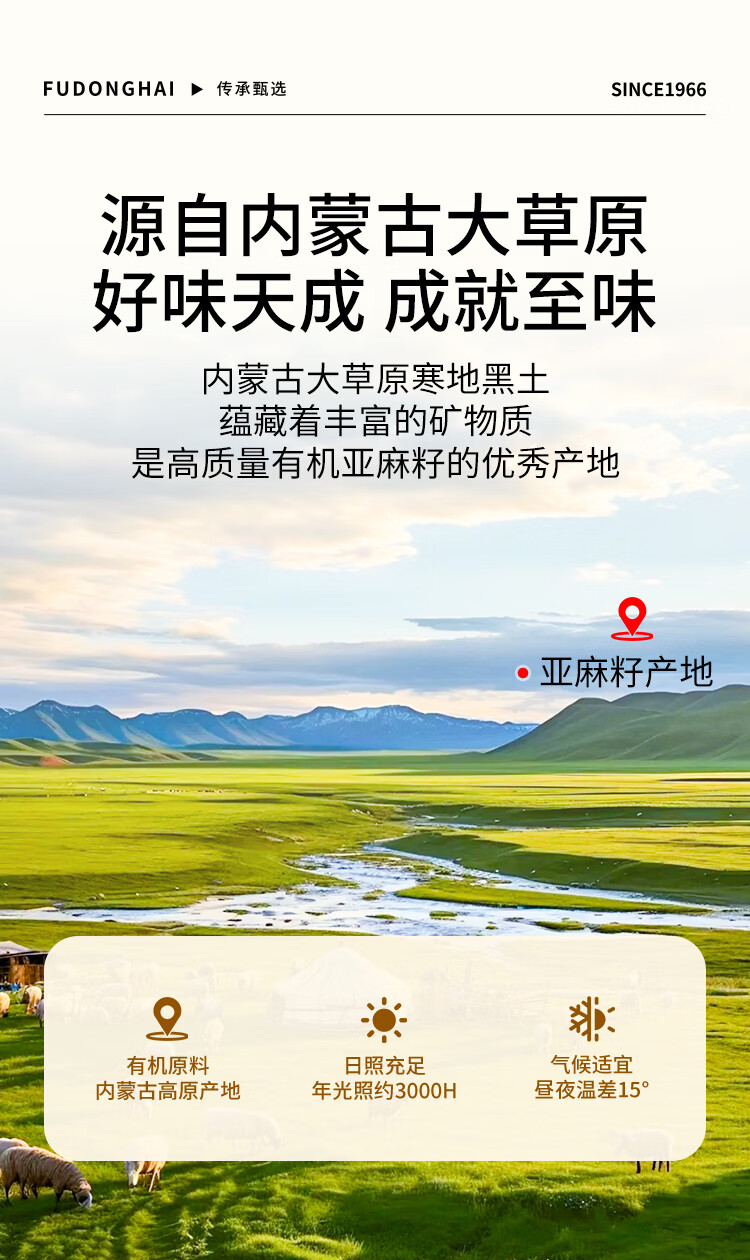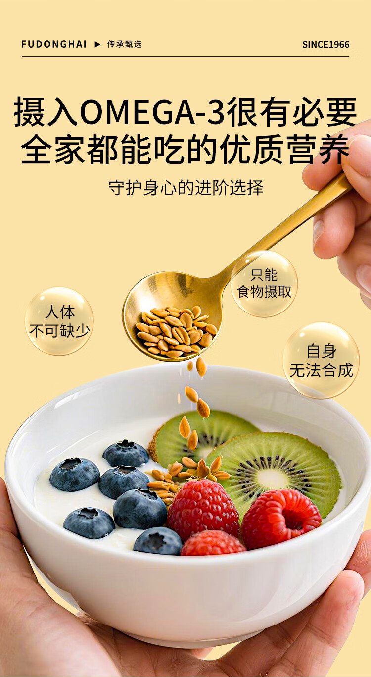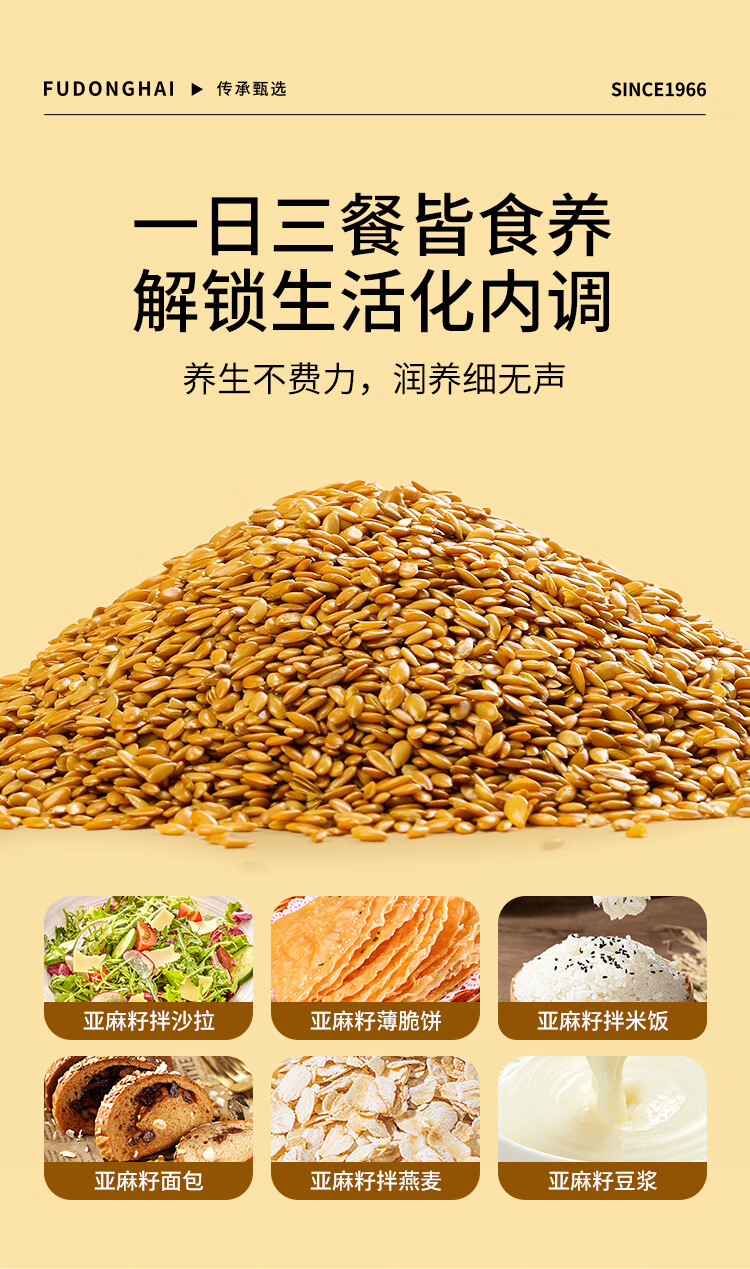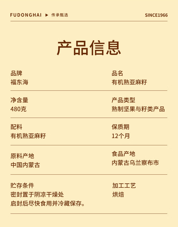 福东海 有机熟亚麻籽480克 低温烘焙黄金亚麻子即食代餐磨粉膳食纤维粉
