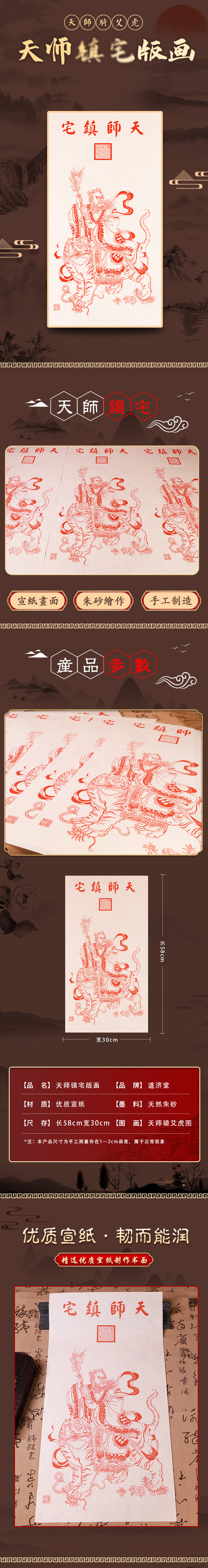 天师安宅宣纸版画,天师骑艾虎