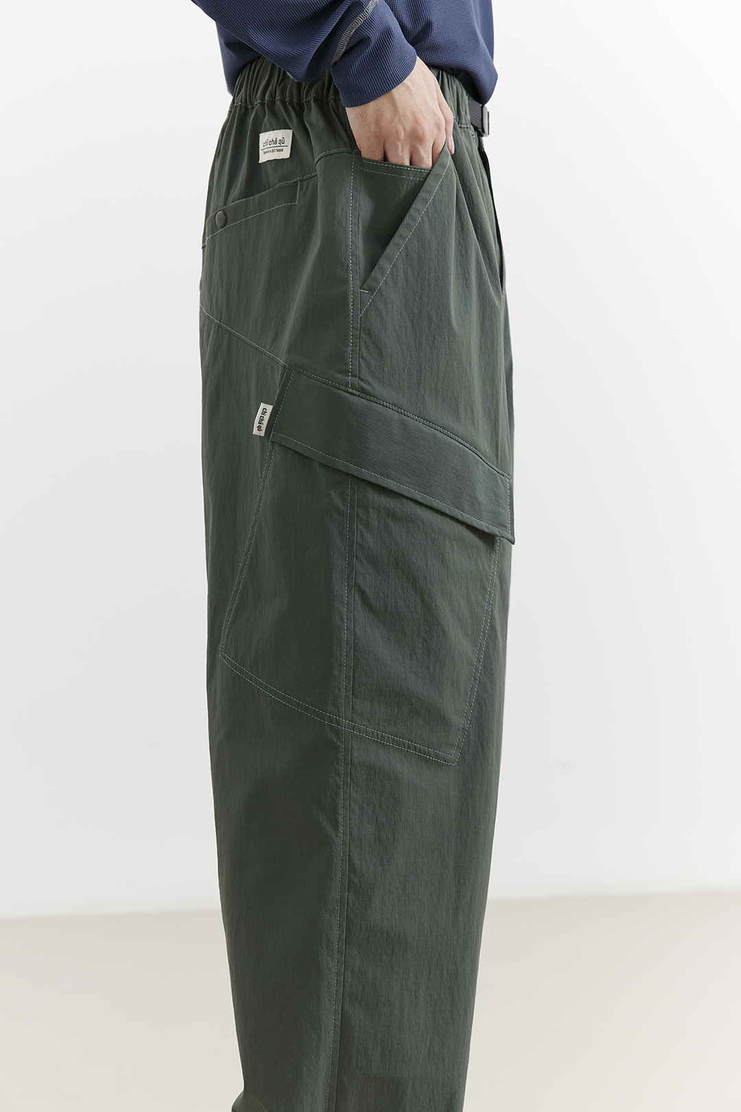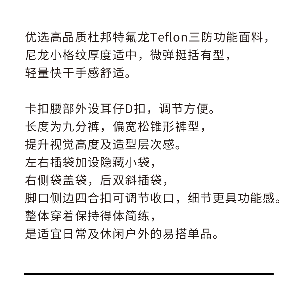吃茶去chichaqu25户外特氟龙三防卡扣尼龙九分裤休闲宽松百搭