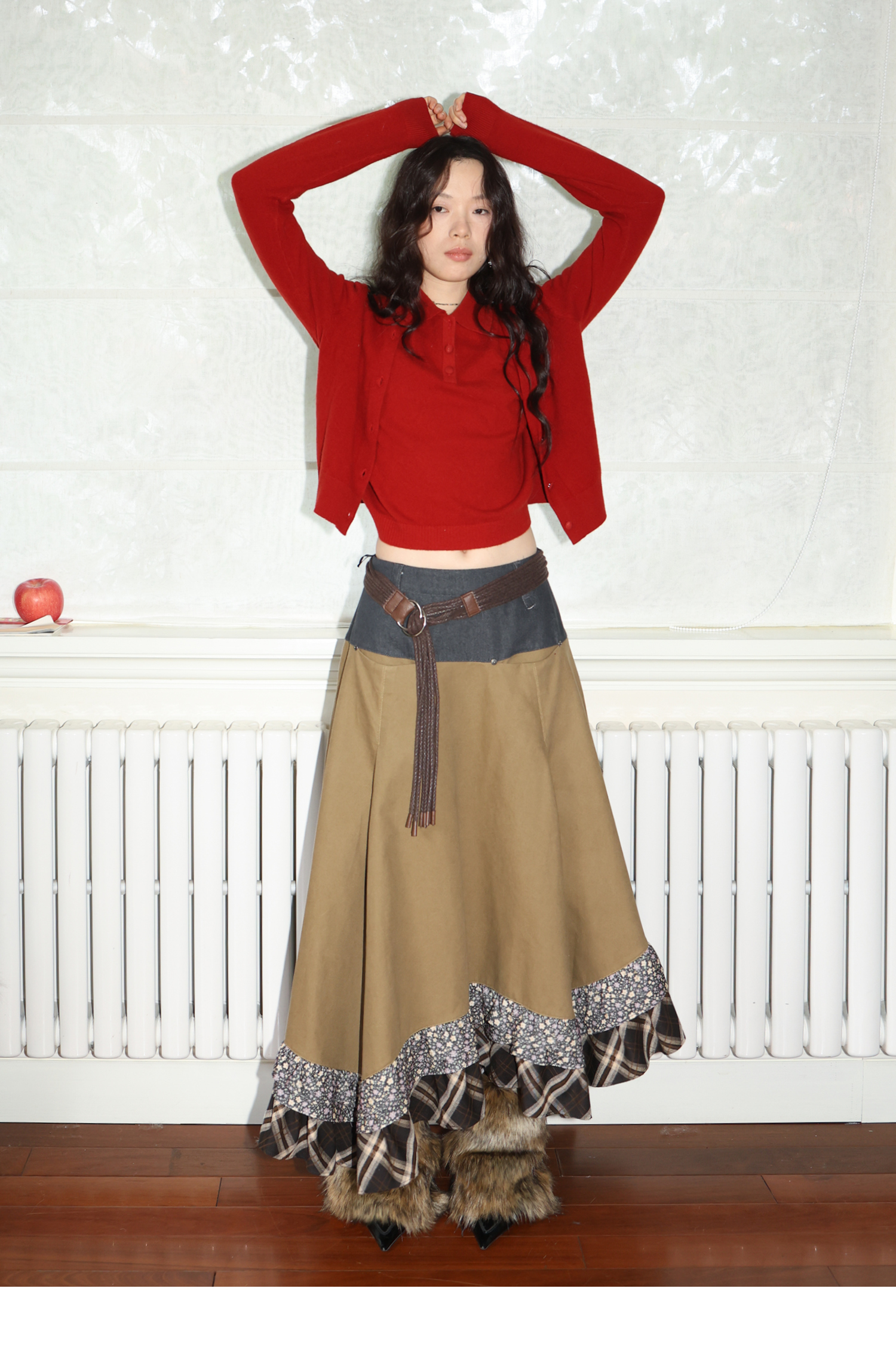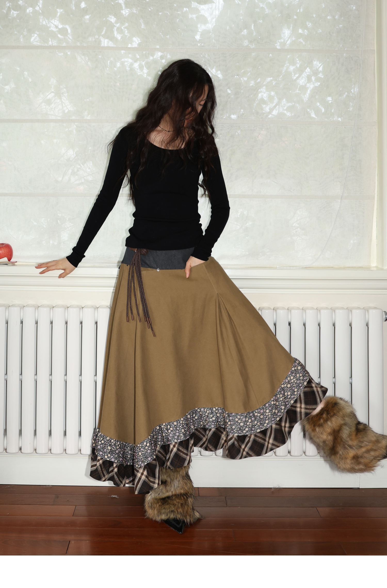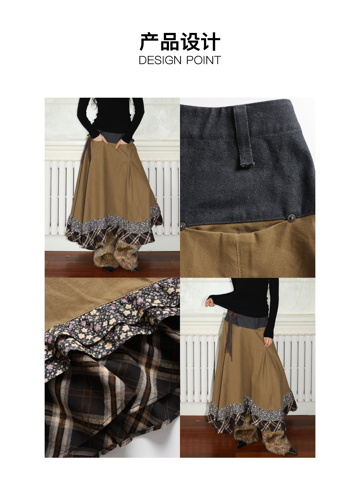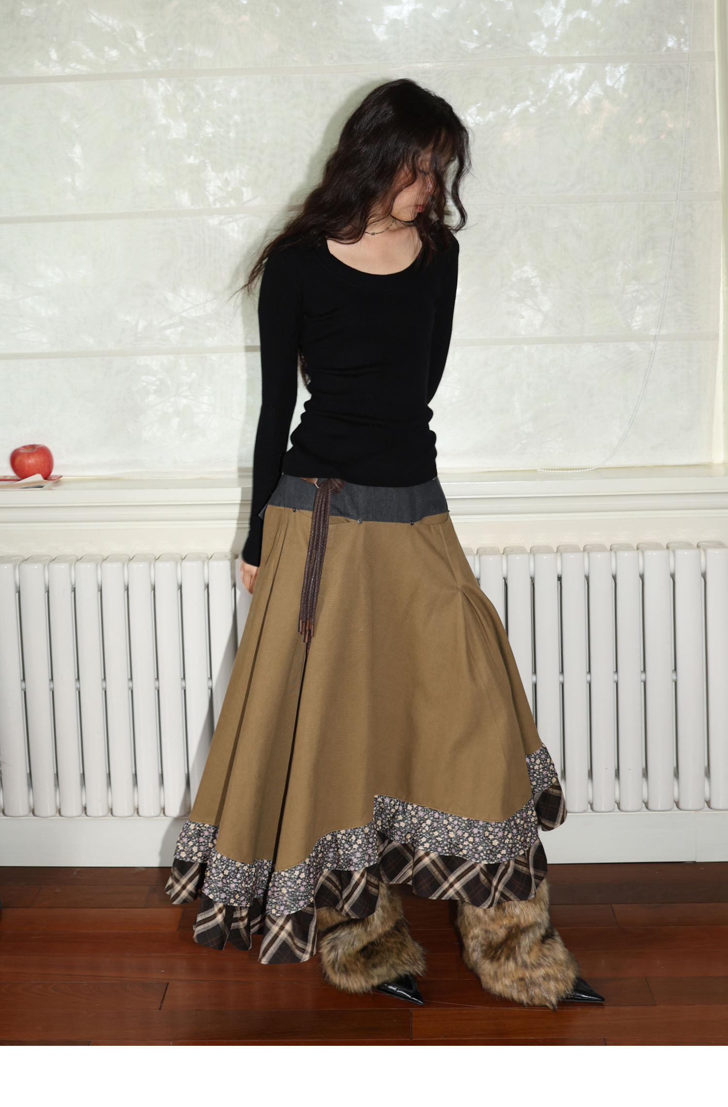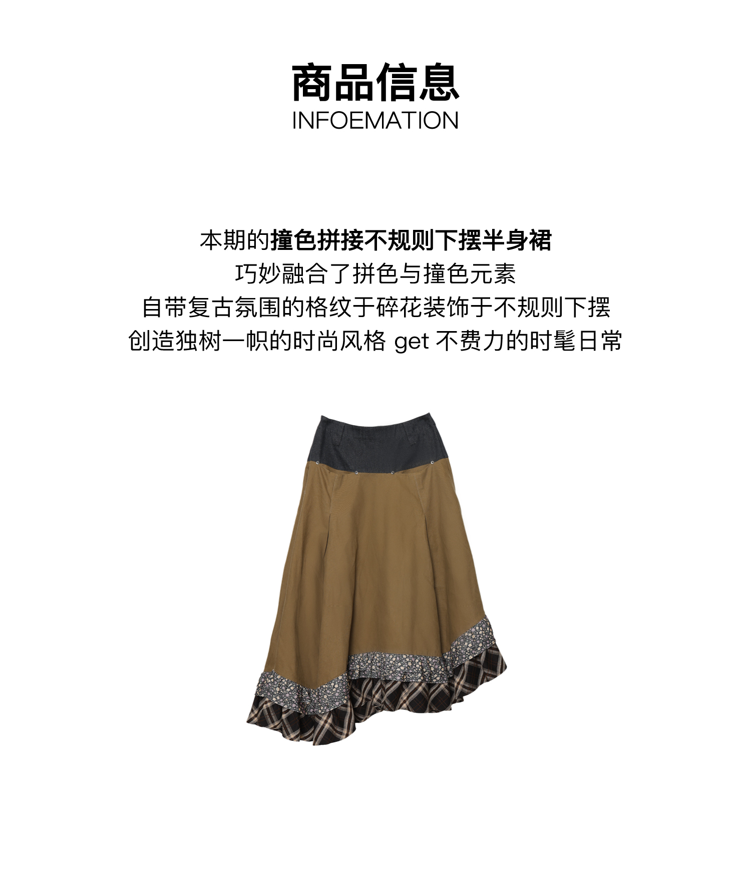 素舶 VTG复古流浪感撞色拼接不规则下摆半身裙SUPERSCAPE