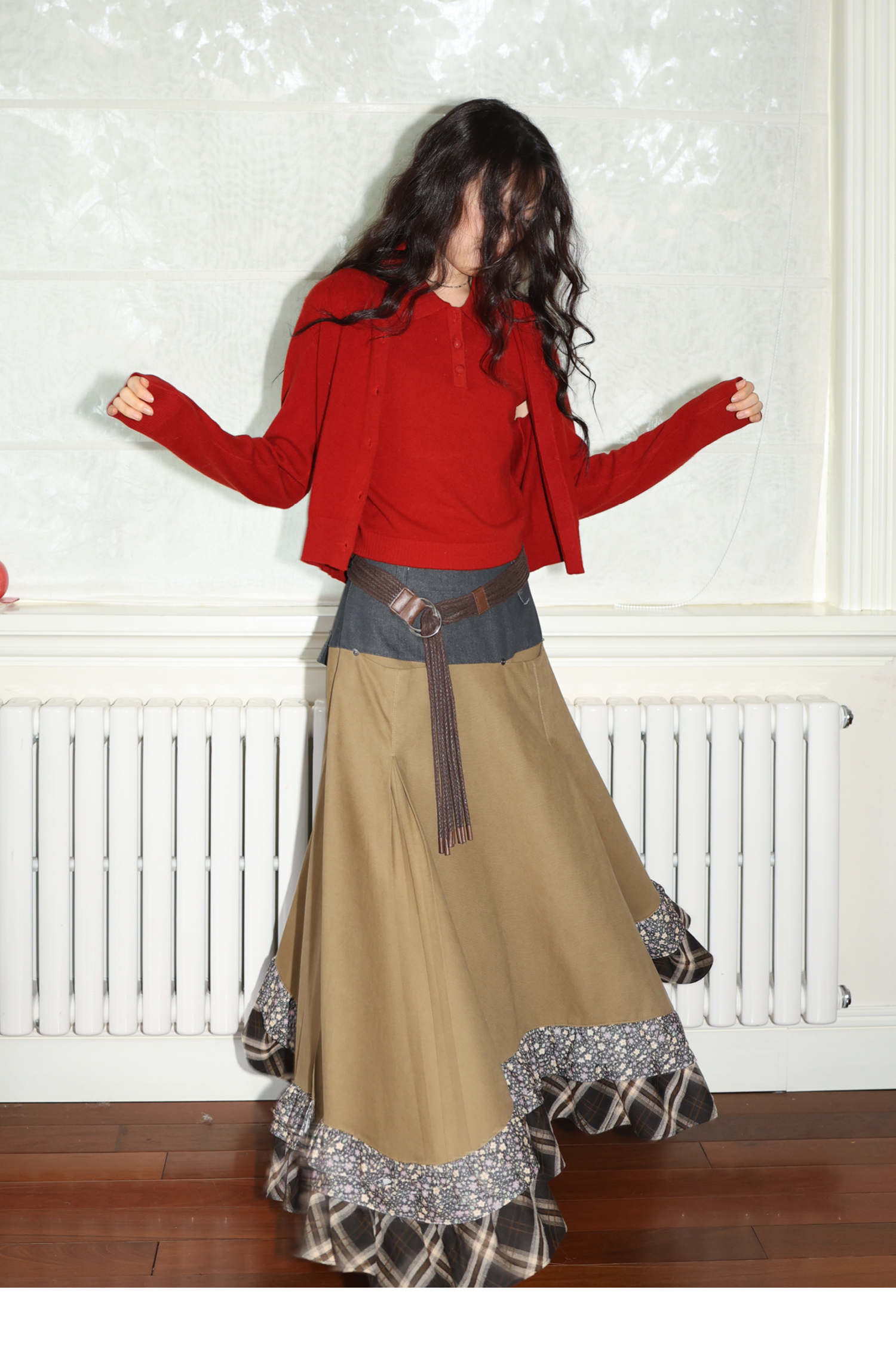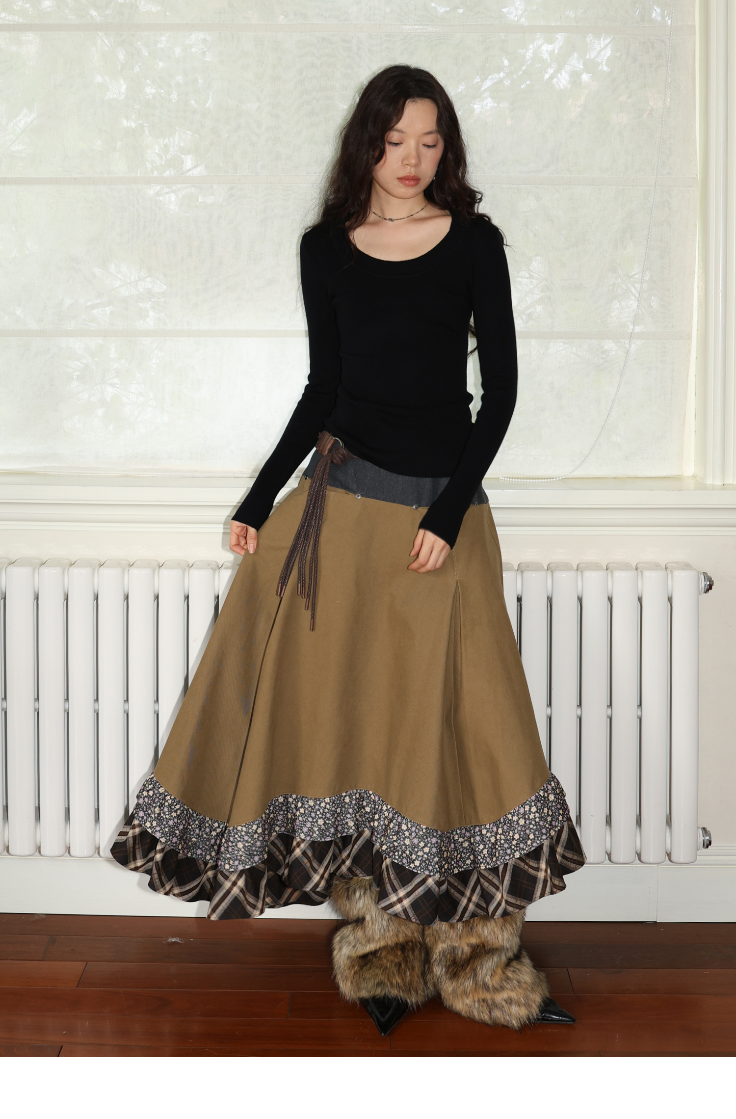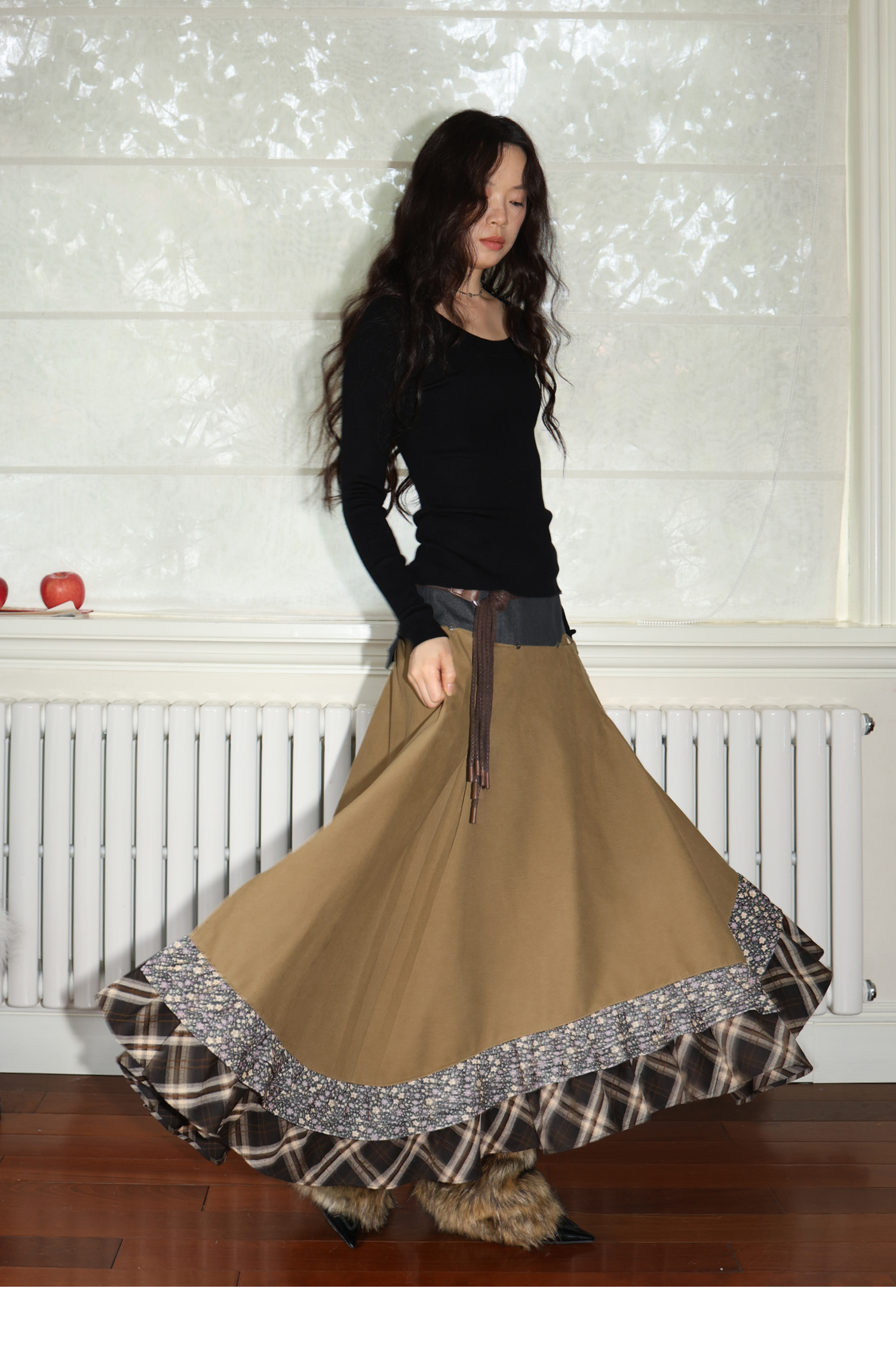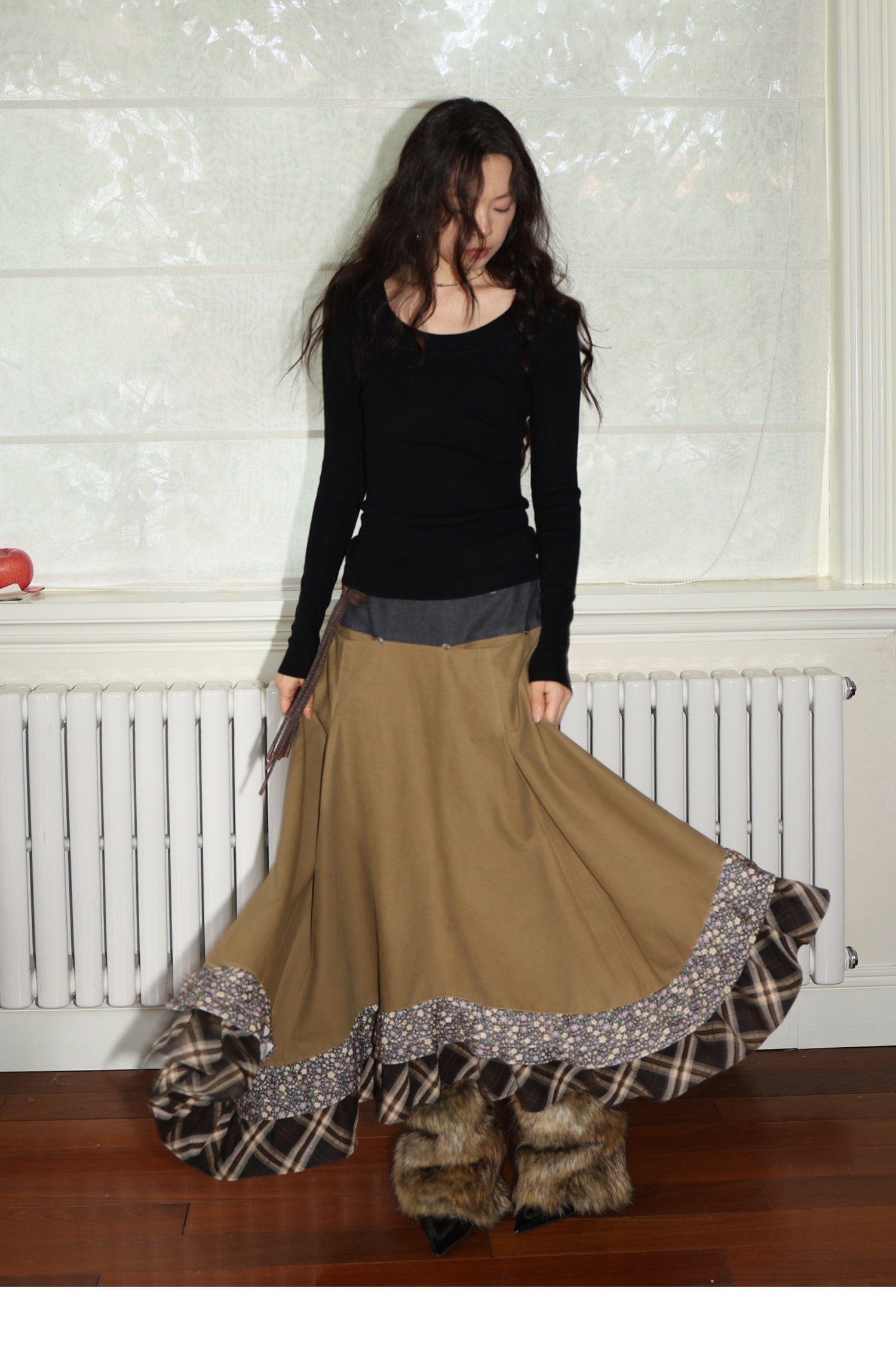 素舶 VTG复古流浪感撞色拼接不规则下摆半身裙SUPERSCAPE