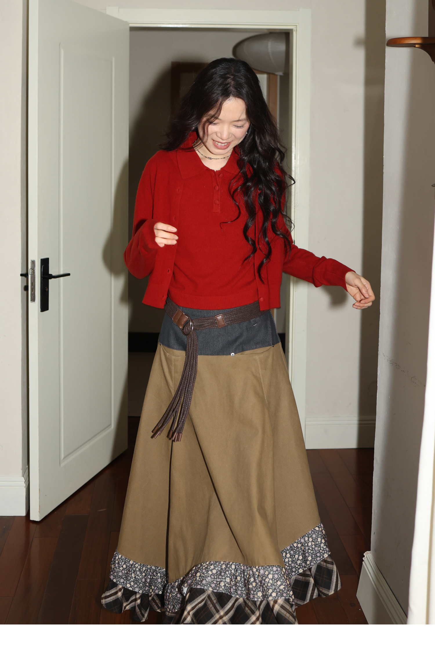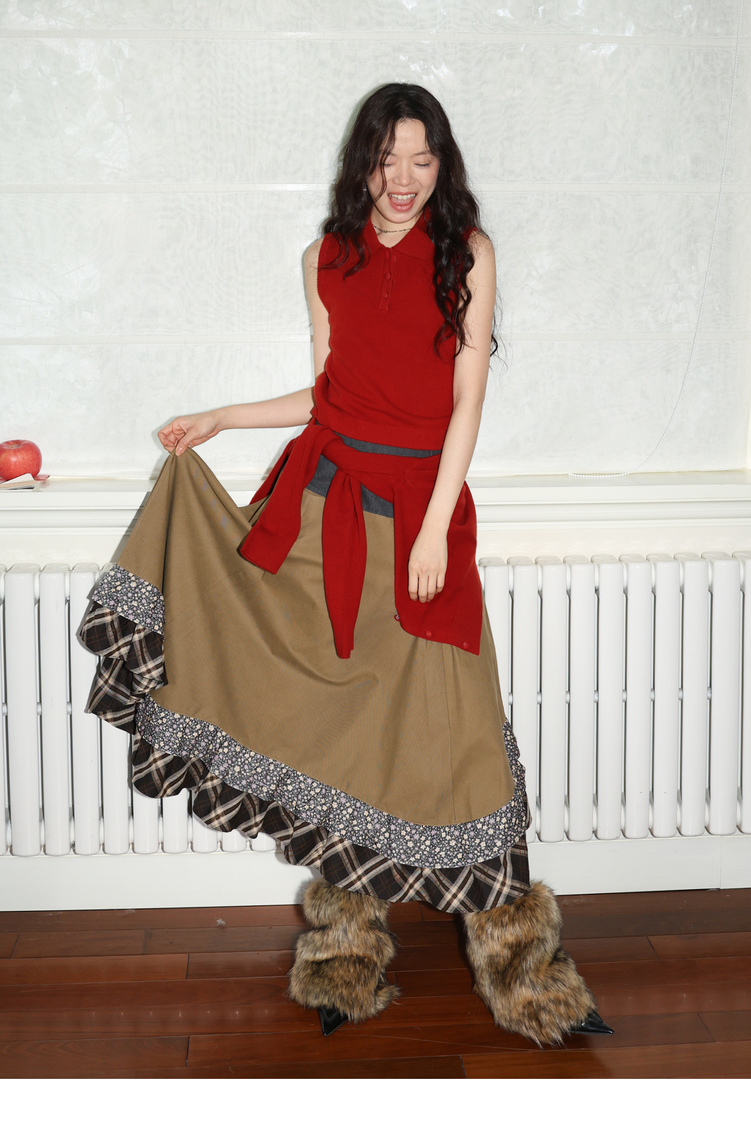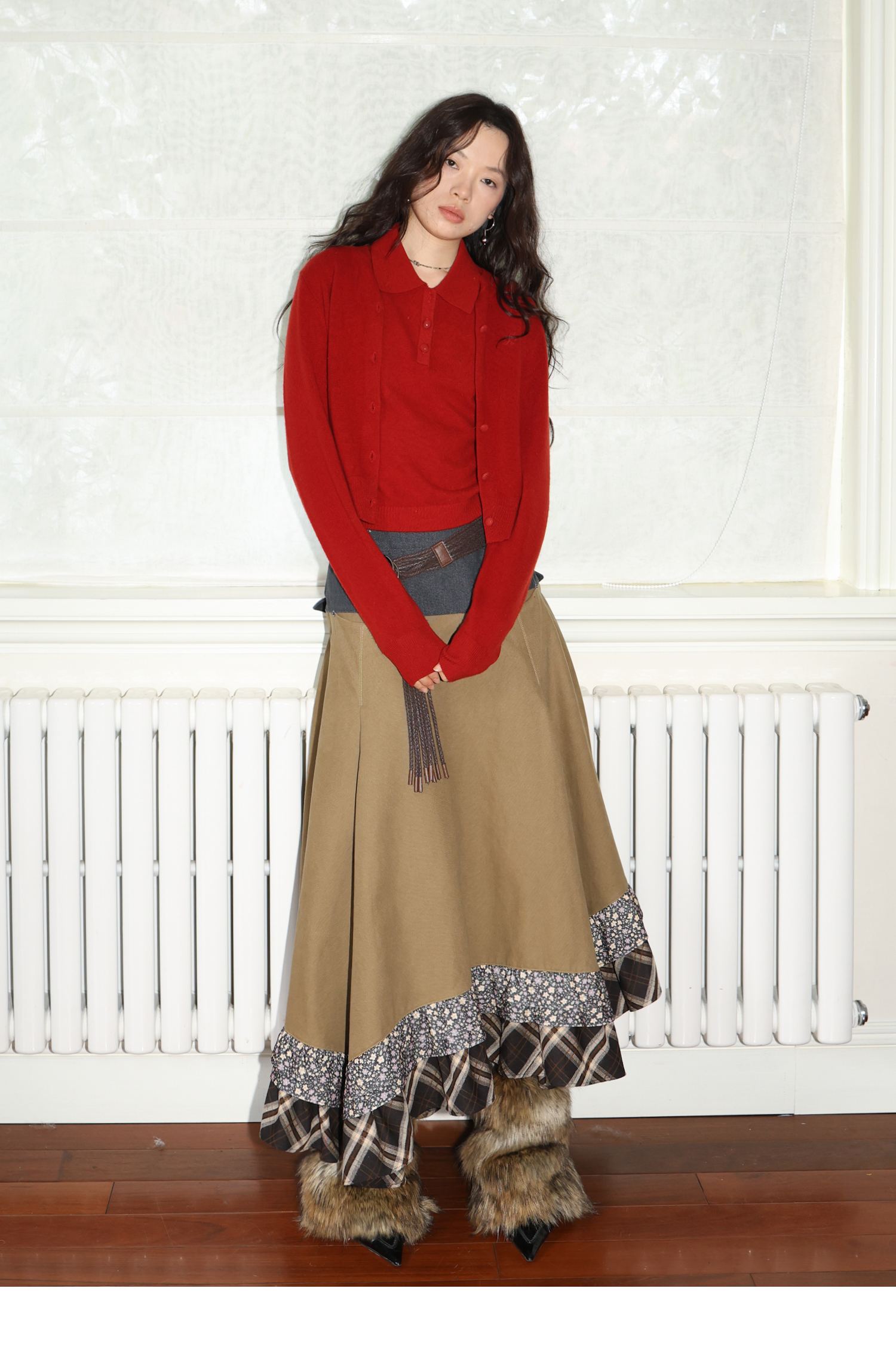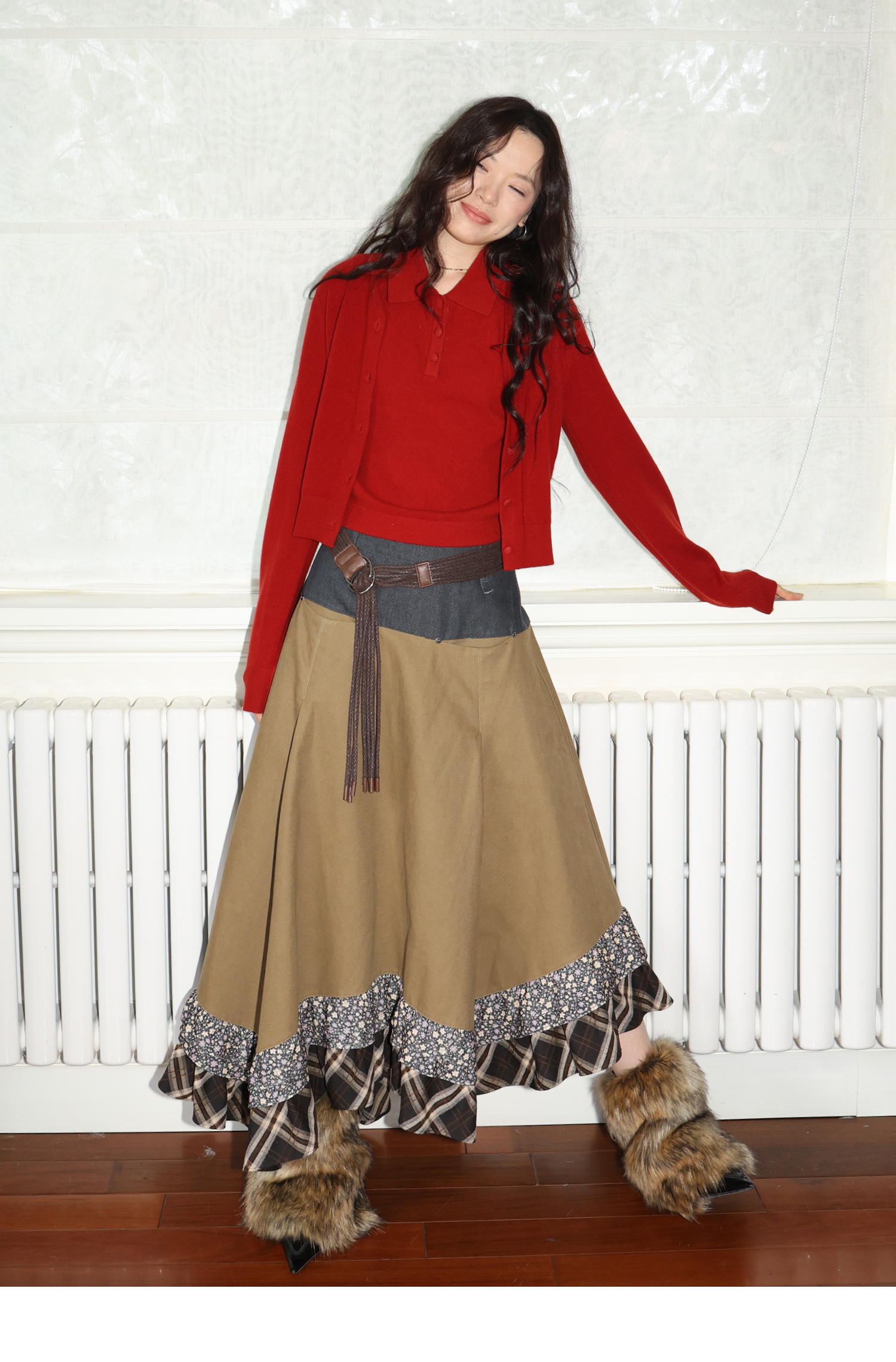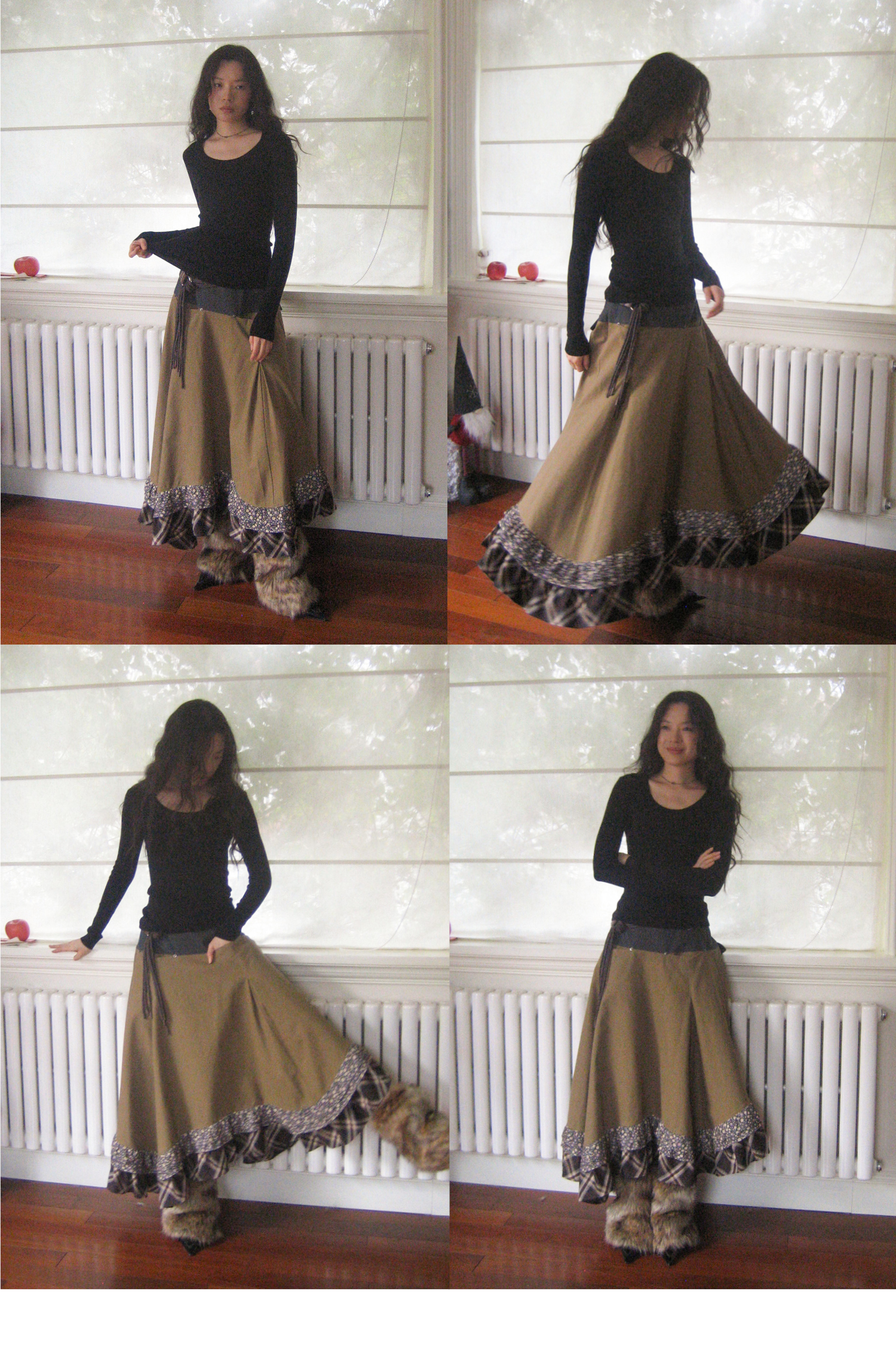 素舶 VTG复古流浪感撞色拼接不规则下摆半身裙SUPERSCAPE
