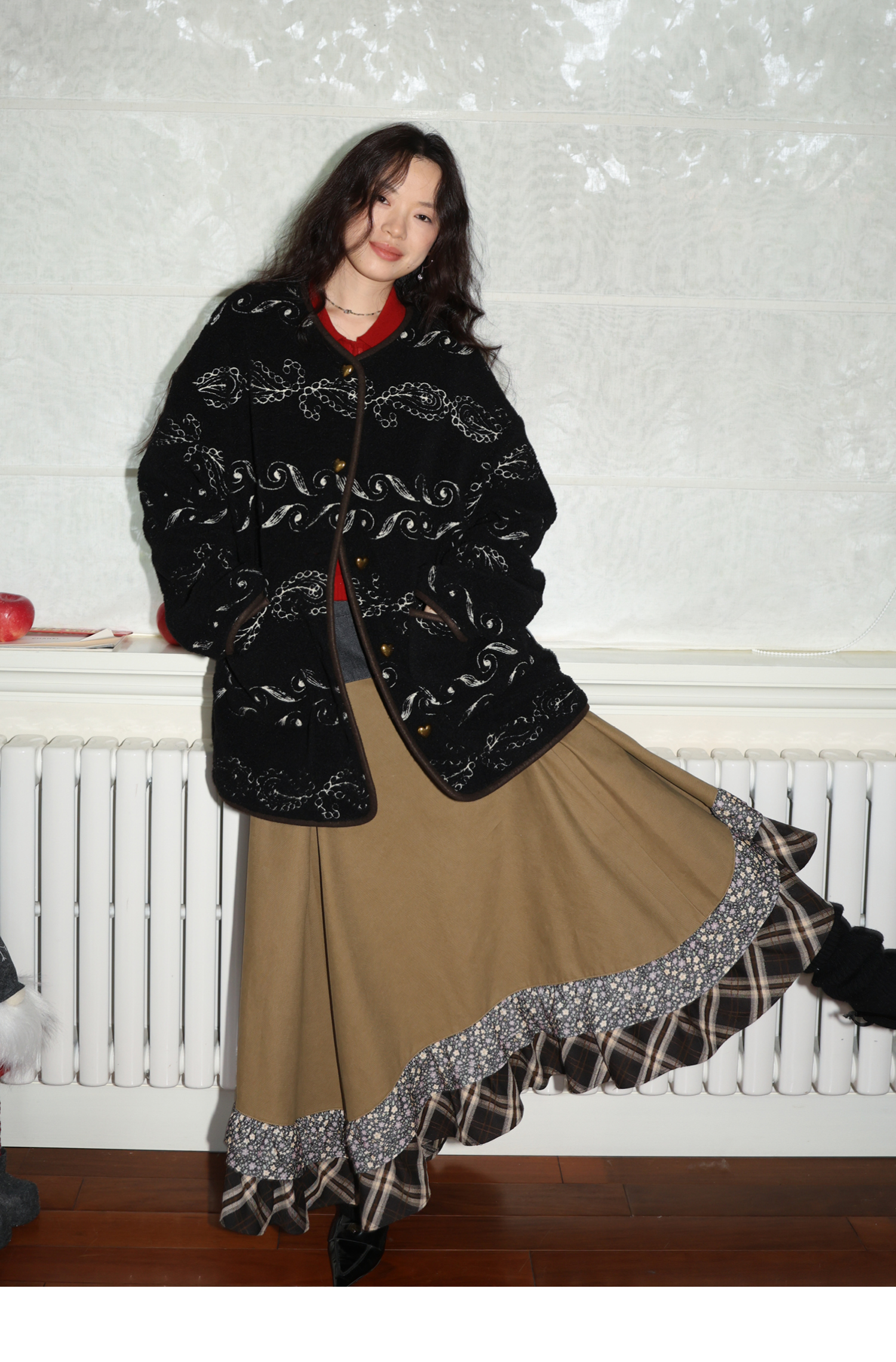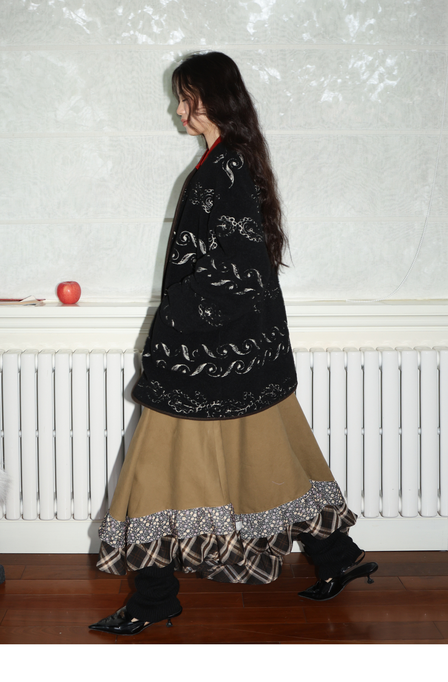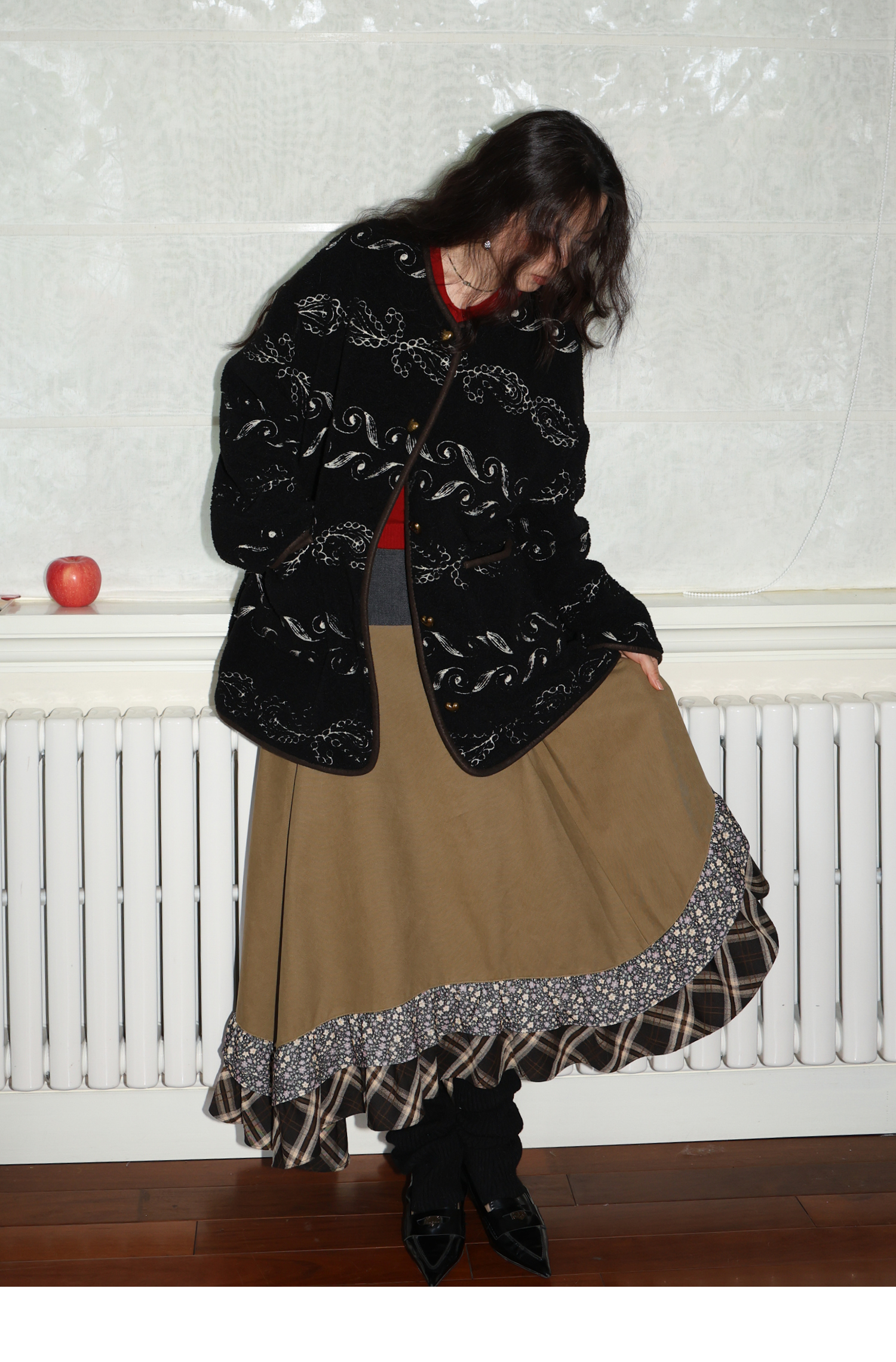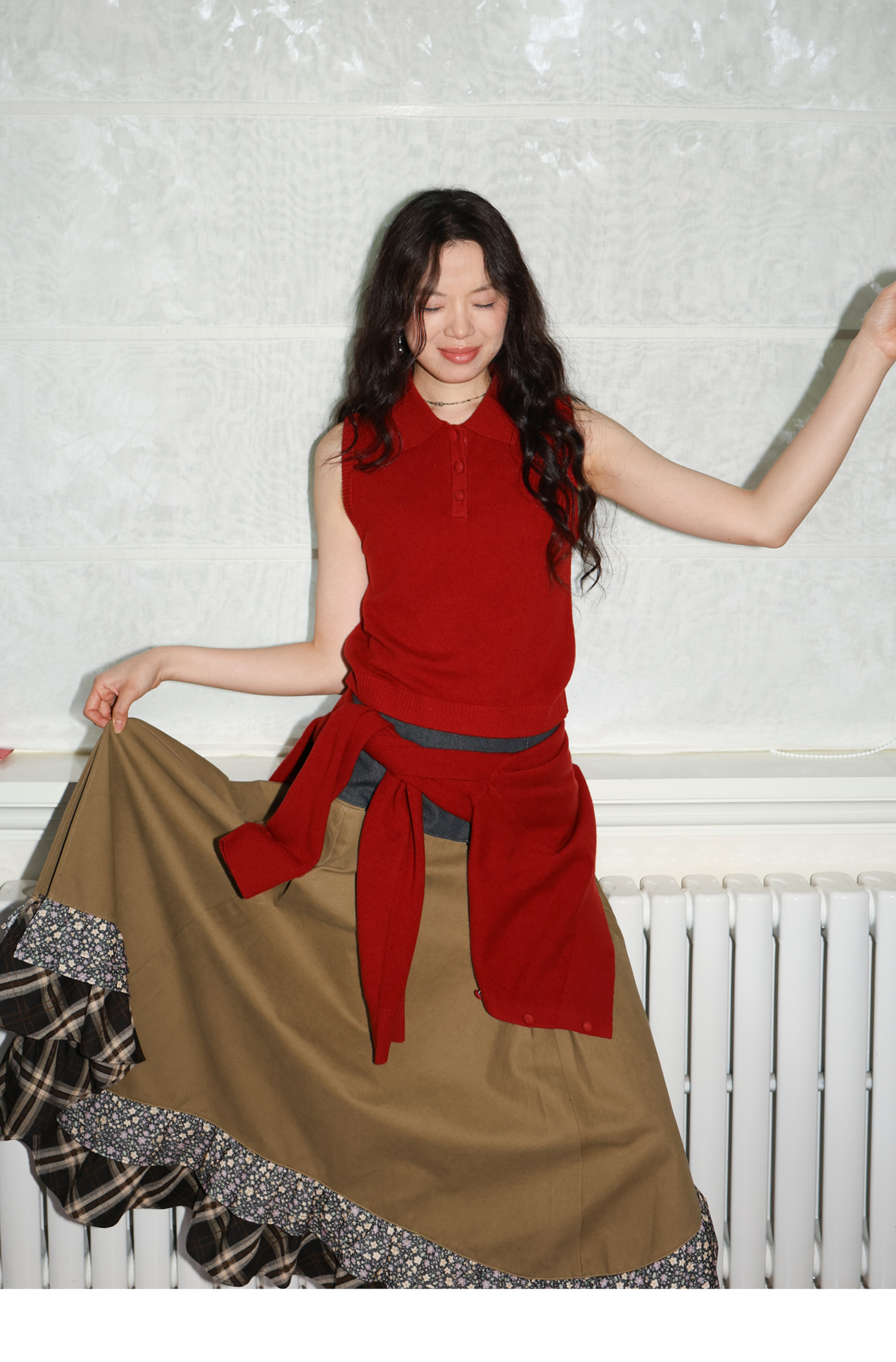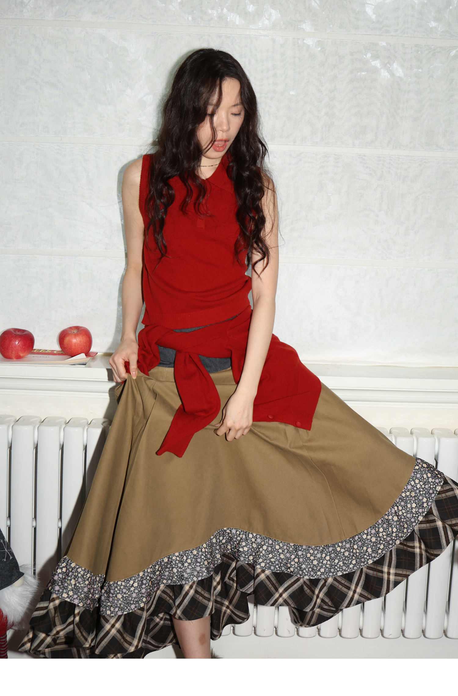 素舶 VTG复古流浪感撞色拼接不规则下摆半身裙SUPERSCAPE
