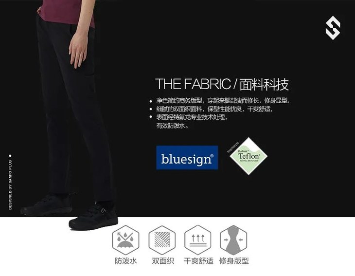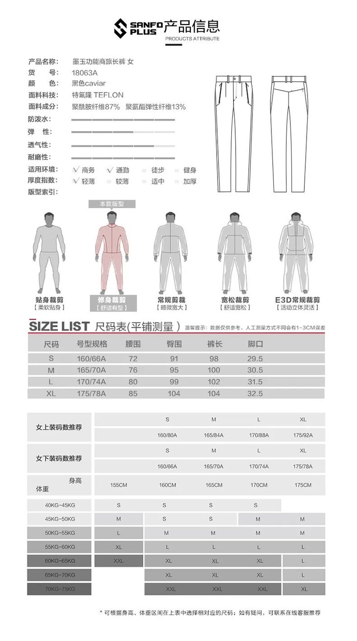 SanfoPlus墨玉功能轻薄防泼水商旅通勤修身长裤 女 18063