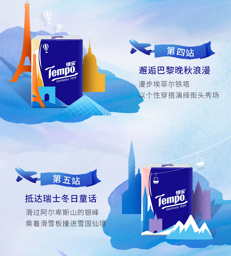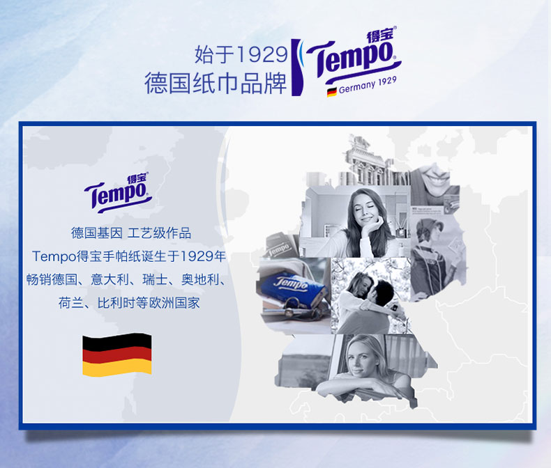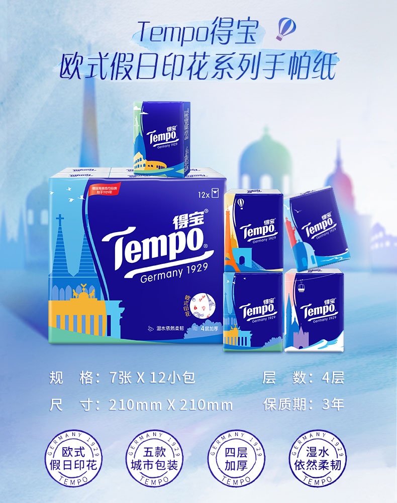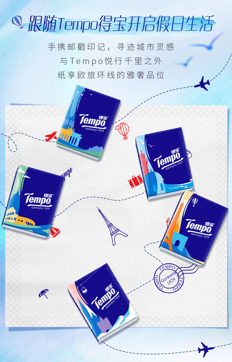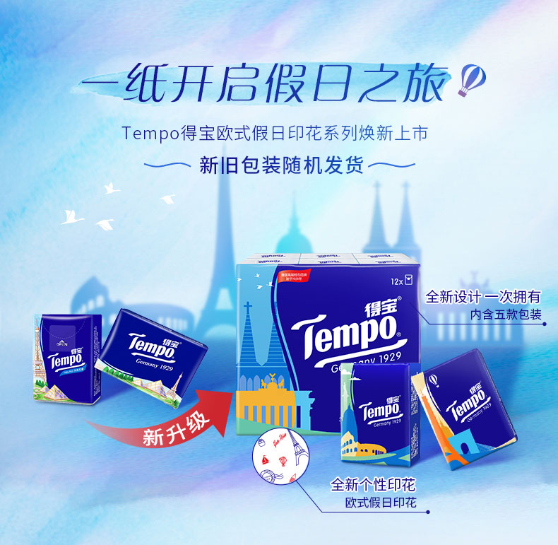 得宝(Tempo) 手帕纸欧式印花无香4层24包 纸巾小包便携装手帕纸餐巾纸