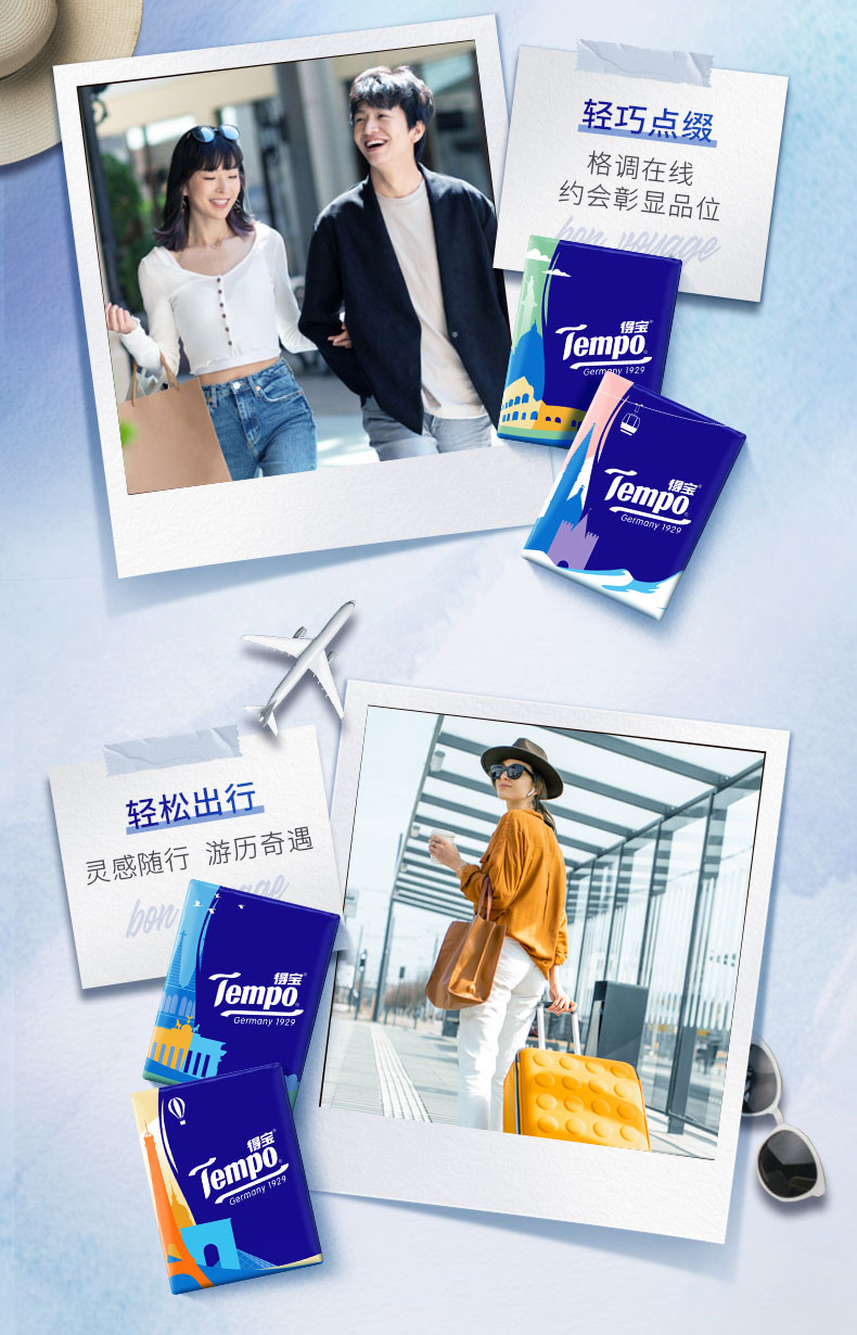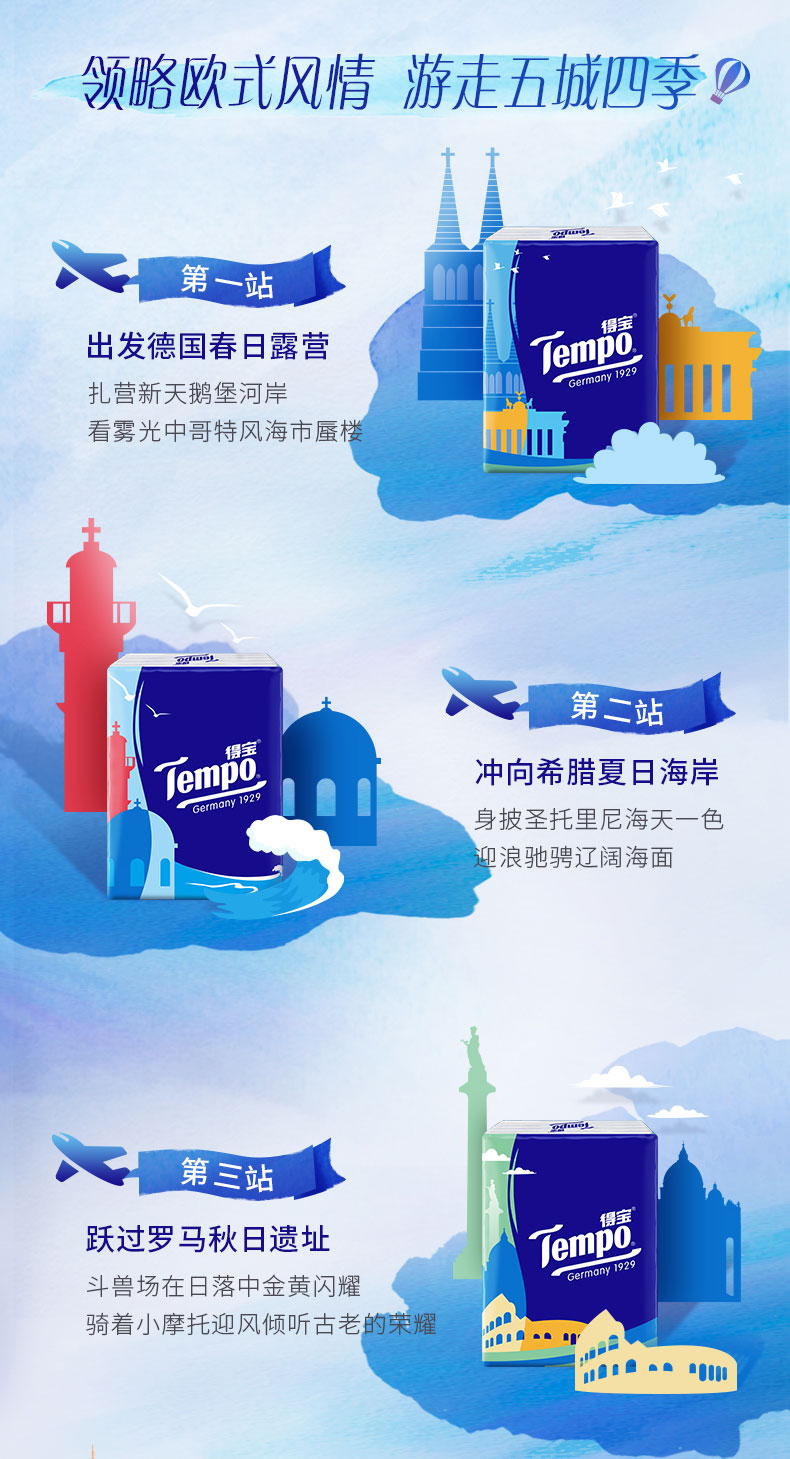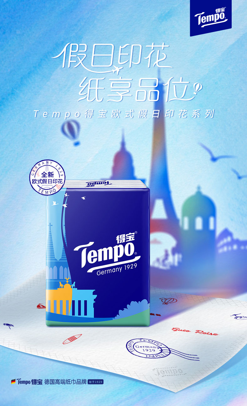 得宝(Tempo) 手帕纸欧式印花无香4层24包 纸巾小包便携装手帕纸餐巾纸