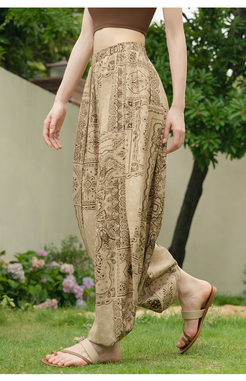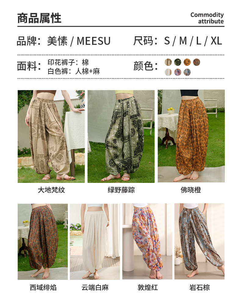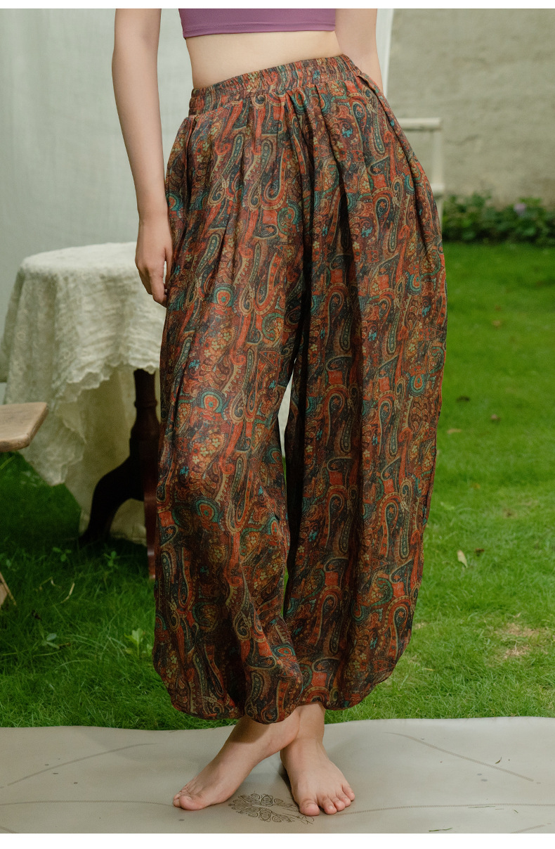 美愫瑜伽裤宽松灯笼裤轻薄新中式民族风时尚印花冥想禅修舞蹈长裤