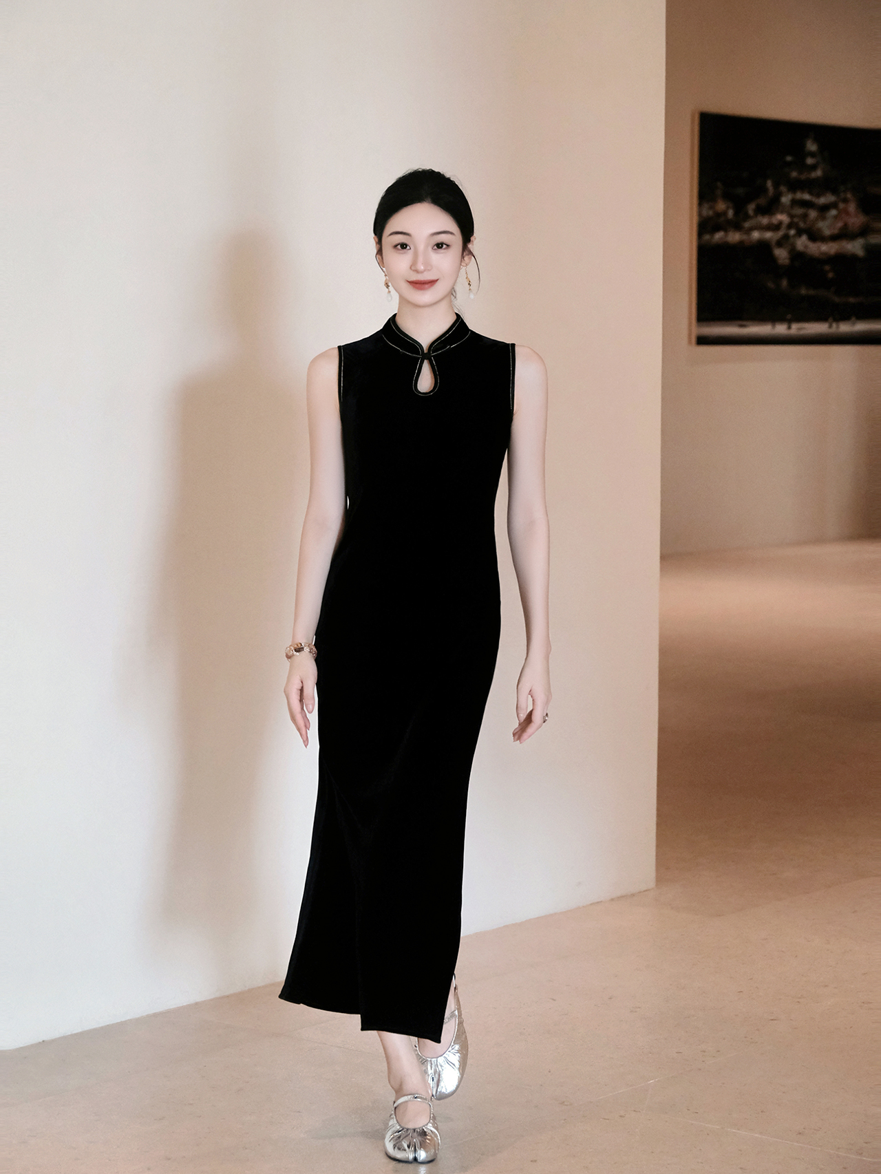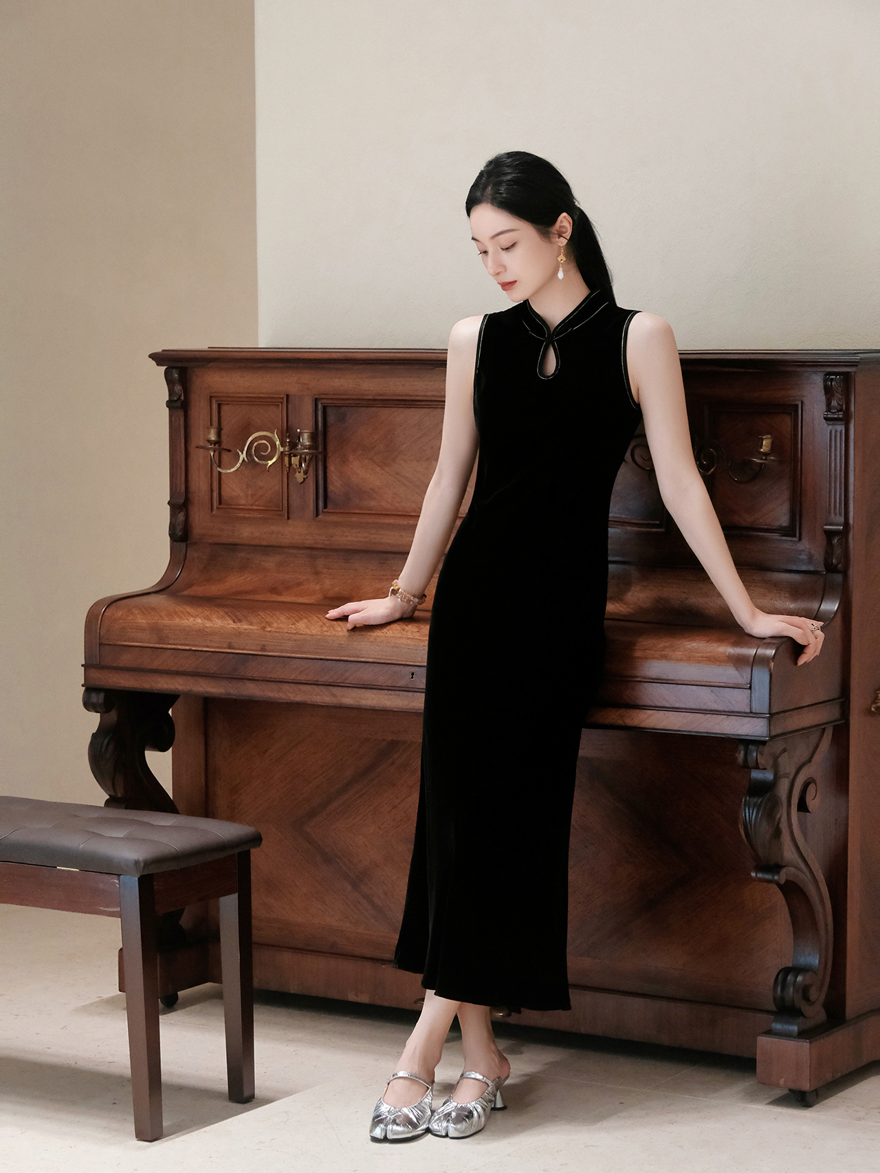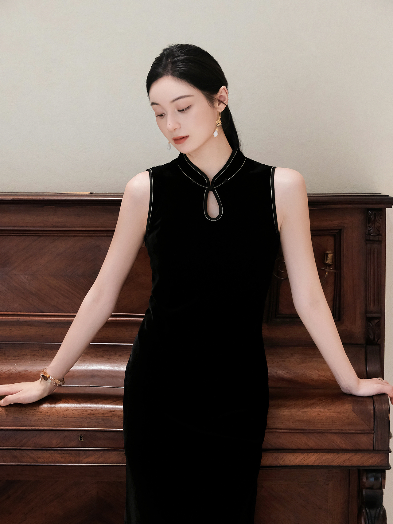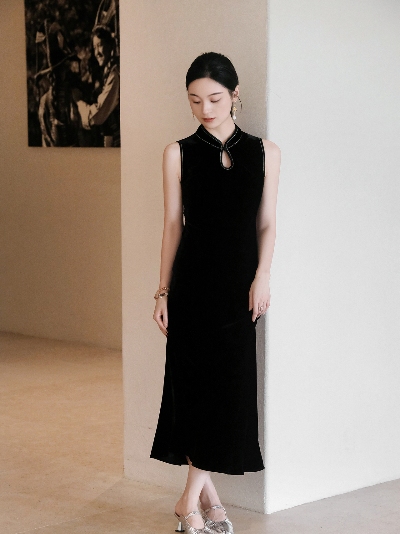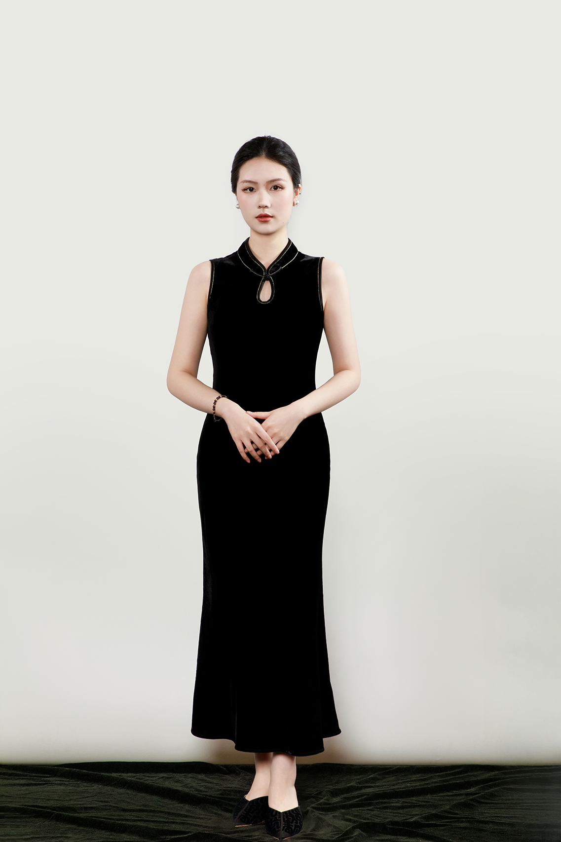 下架|盛唐婧| 重磅真丝绒水滴领旗袍连衣裙