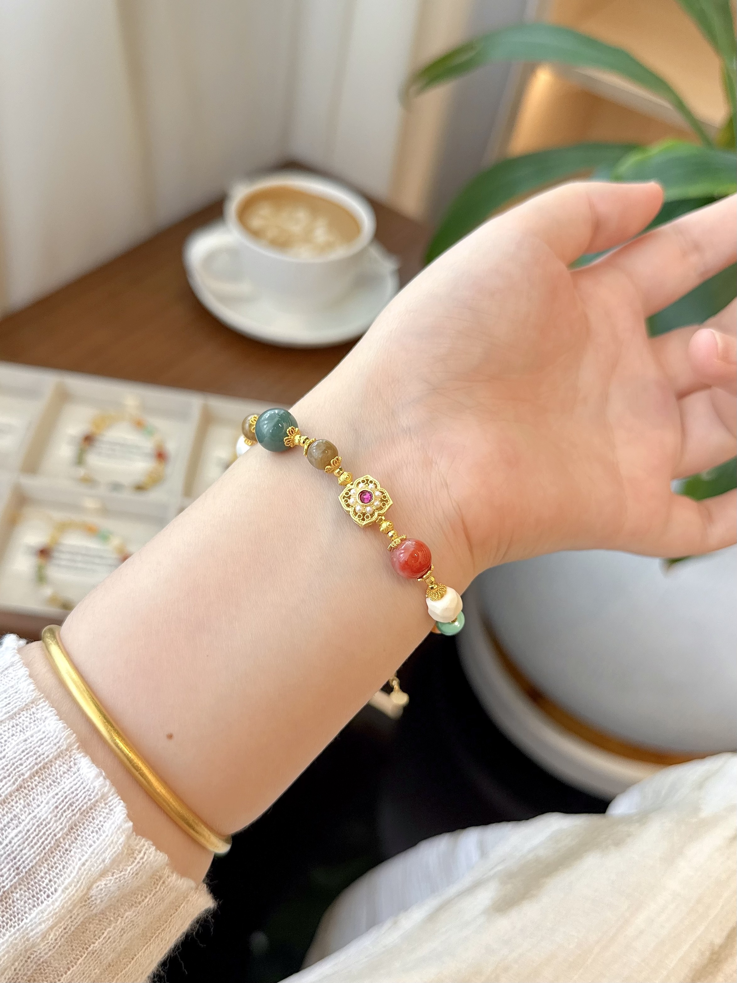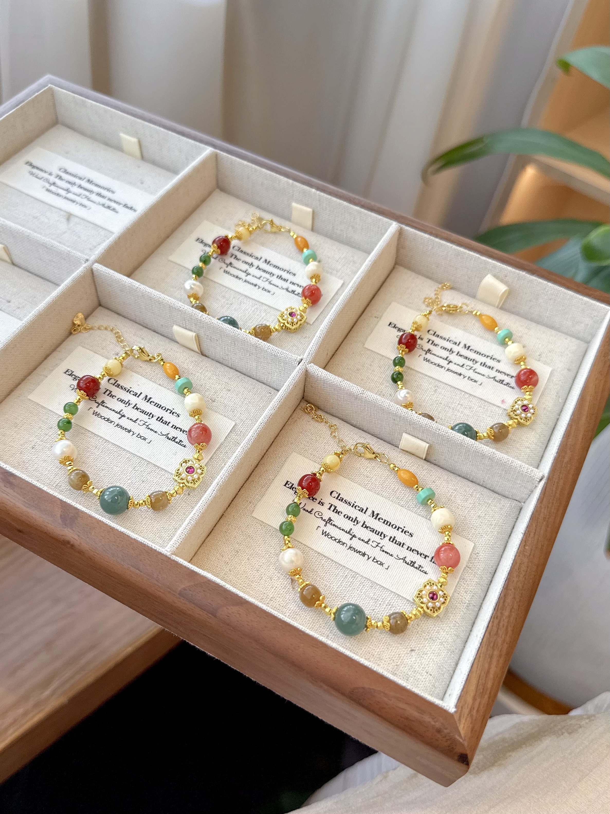 搭配天然蜜蜡,玛瑙,碧玉,淡水珍珠,糖料和田玉,蓝水翡翠南红,菩提无相,菱镁矿,蜜蜡枣珠等