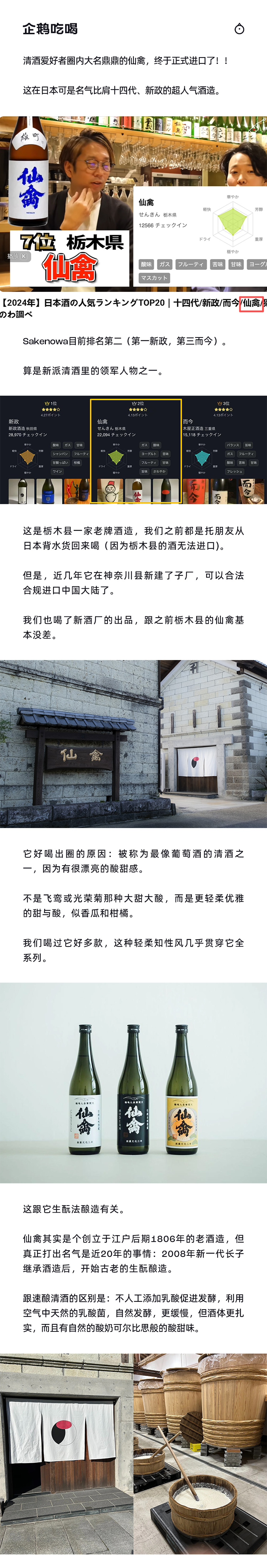 企鹅市集|仙禽酒造 classic / modern 清酒 山田锦/龟之锦 Sakenowa排名第二 优雅酸甜感