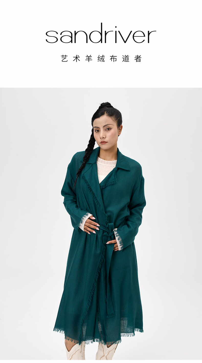 历年在巴黎时装周亮相,享誉世界的艺术羊绒品牌[Sandriver 沙涓]由羊绒布道者郭秀玲女士创立。阿拉善自有牧场纯种羔羊绒,日本国宝设计师小筱顺子,上海自有基地精工细作。承载羊绒情怀,坚持匠人品质。