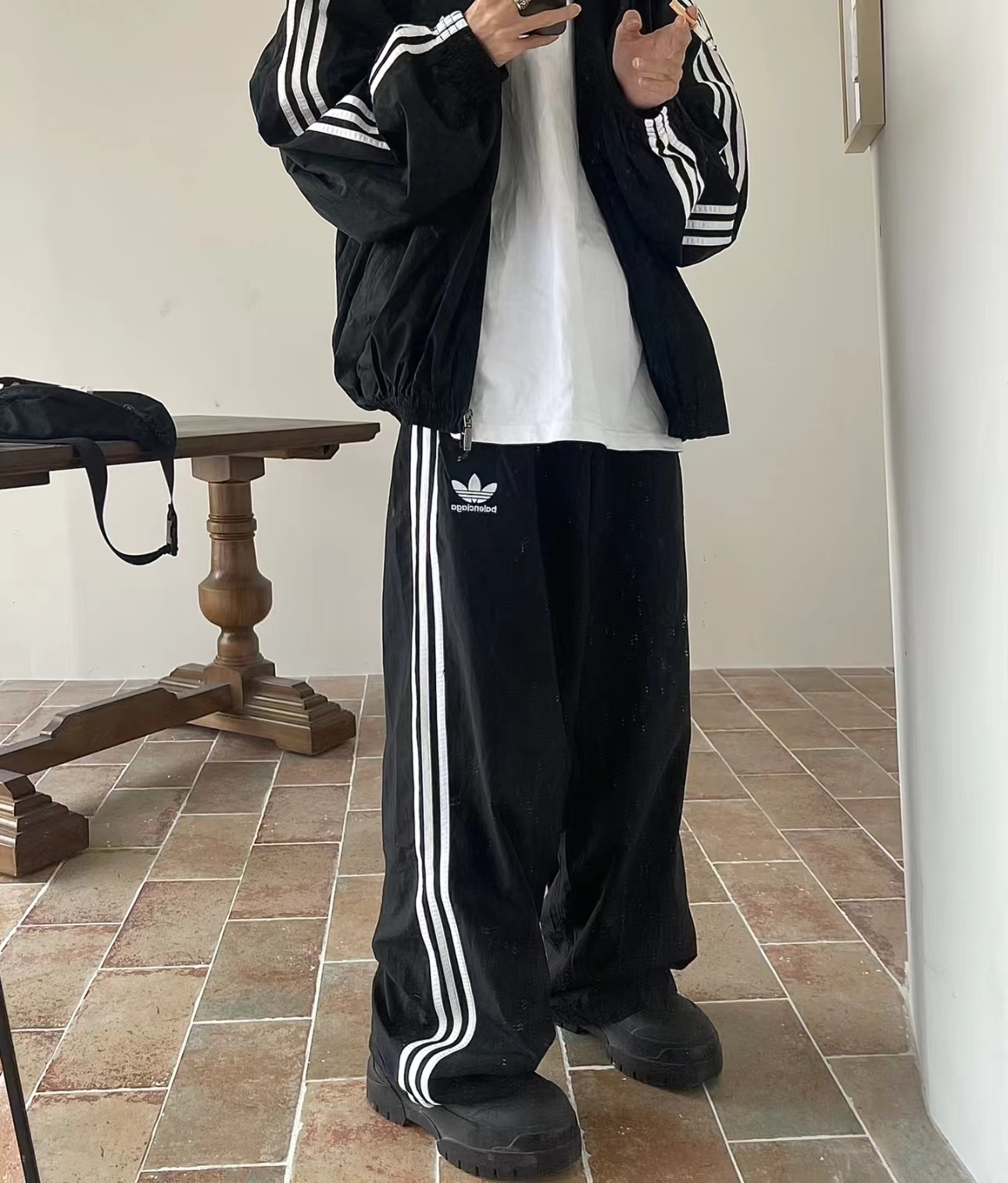 运动长裤轻she主义 男女日常通勤穿搭bi备单品· 定制再生尼龙面料 · 内里采用三级聚酯鸟眼网布· 松紧弹力抽绳收腰设计· 开模定制五金拉链 · 高速绣花机万针立体· 长裤侧面双插袋