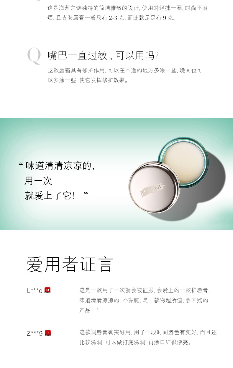 现货▲La mer海蓝之谜修护润唇膏唇膜 滋润修复改善唇 9g