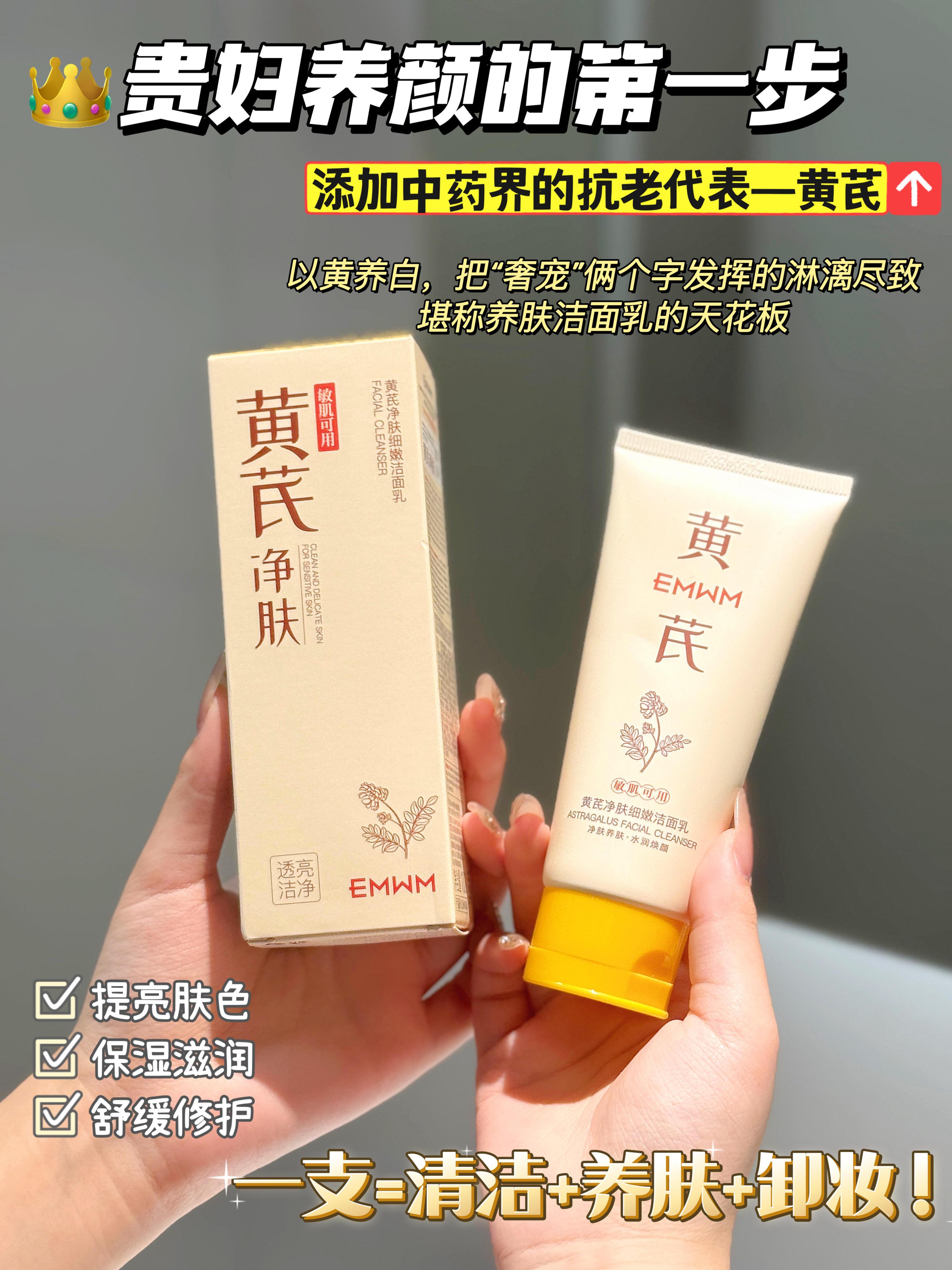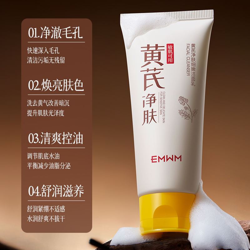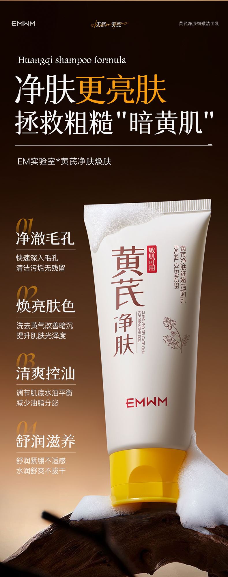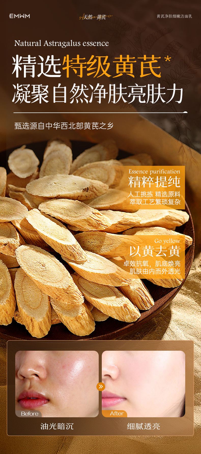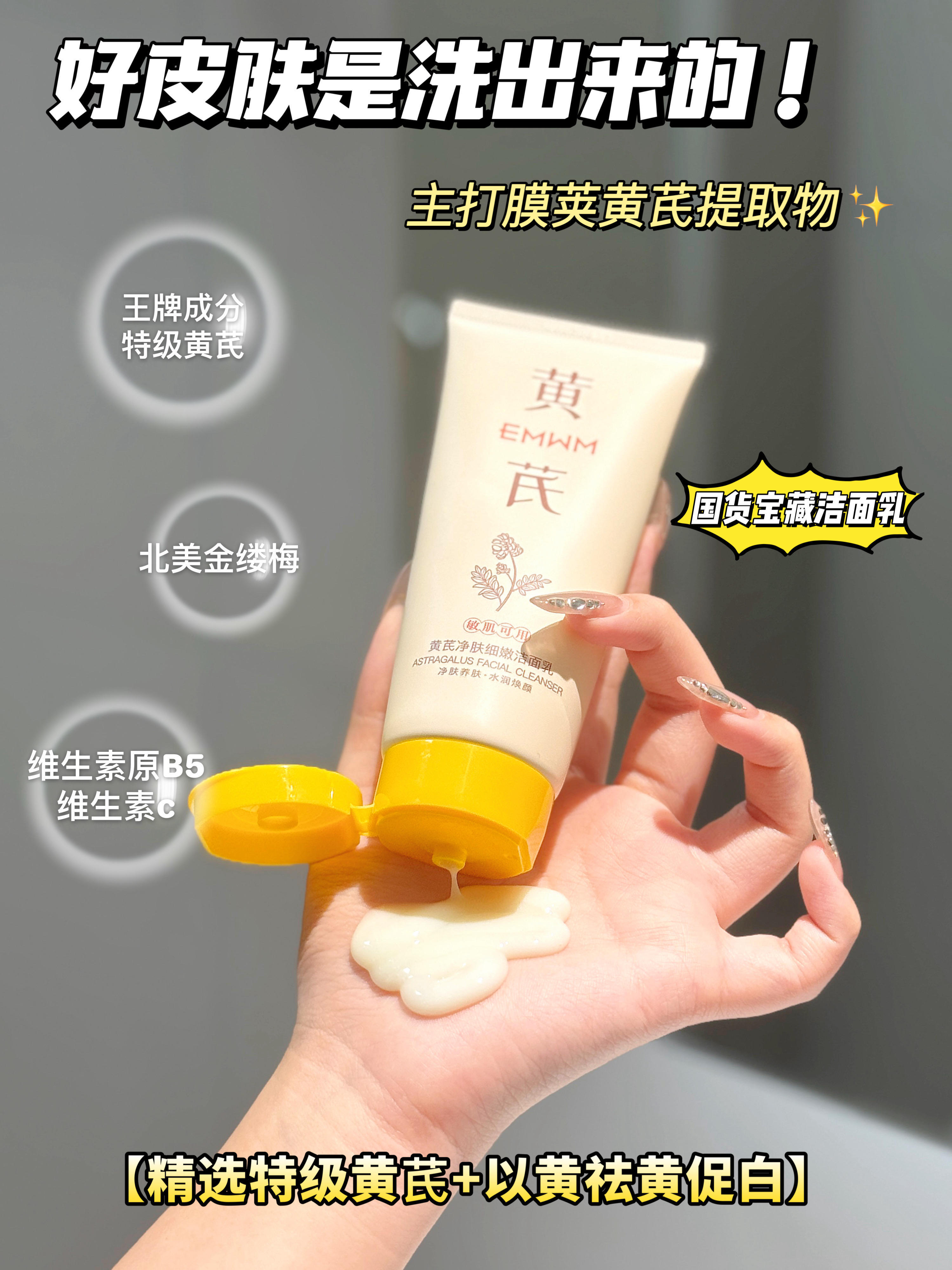 国货之光【EMWM黄芪净肤细嫩洁面乳】油皮必入洗面奶 核心成分超厉害 ·黄芪提取物:具有强大的抗氧化、还能对抗自由基 抗氧亮肤专利!!甄选3种优质进口原料 一支100g!清洁+养肤+卸妆三效合一!