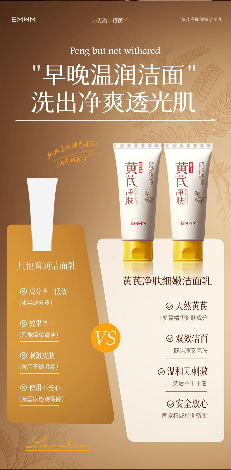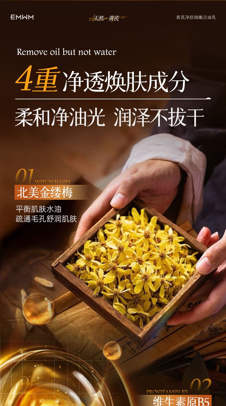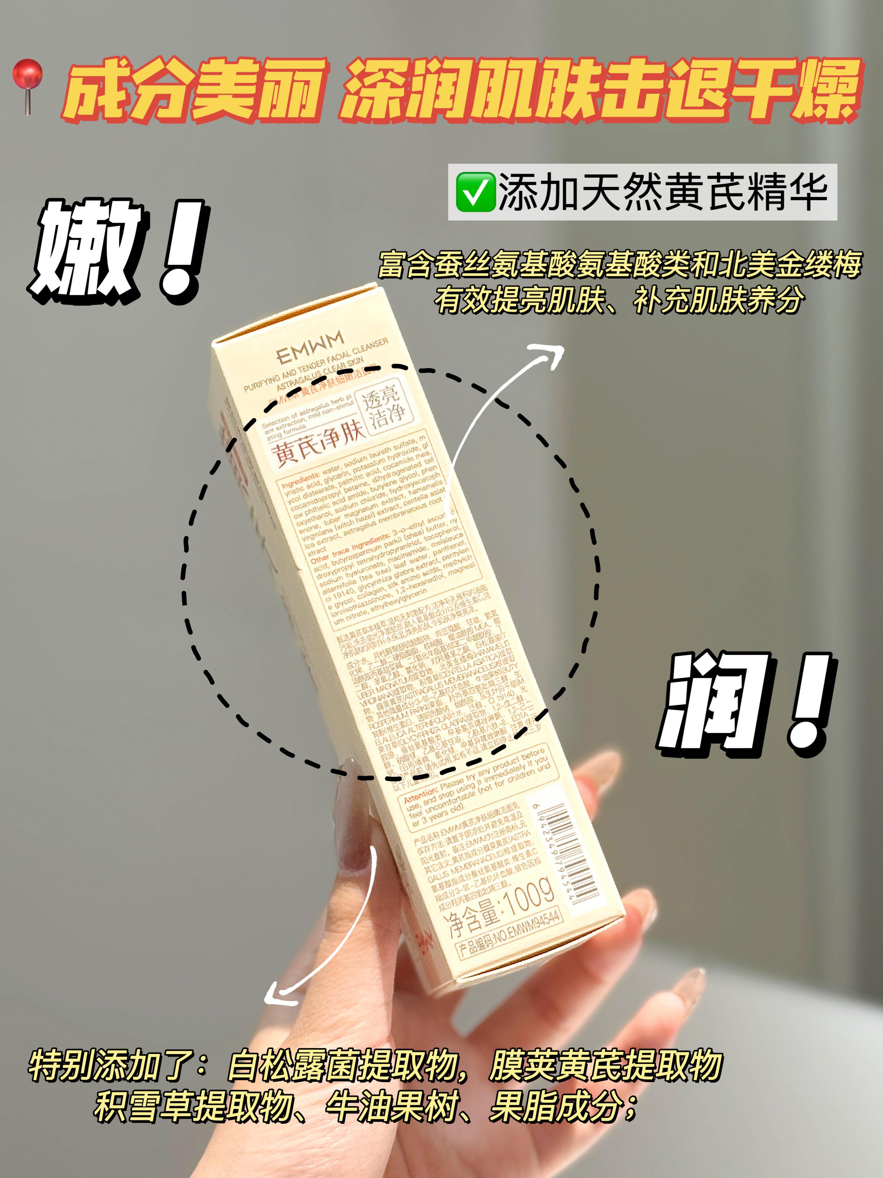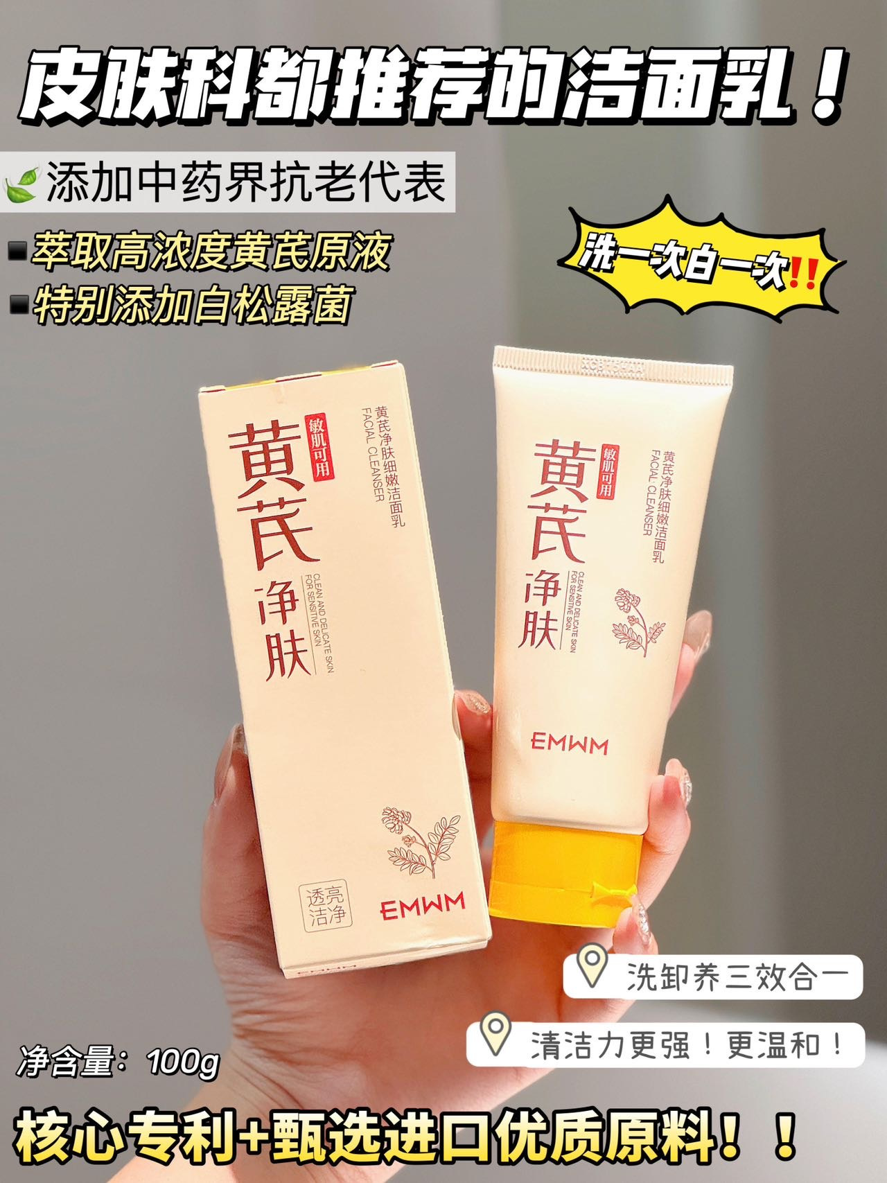 国货之光【EMWM黄芪净肤细嫩洁面乳】油皮必入洗面奶 核心成分超厉害 ·黄芪提取物:具有强大的抗氧化、还能对抗自由基 抗氧亮肤专利!!甄选3种优质进口原料 一支100g!清洁+养肤+卸妆三效合一!