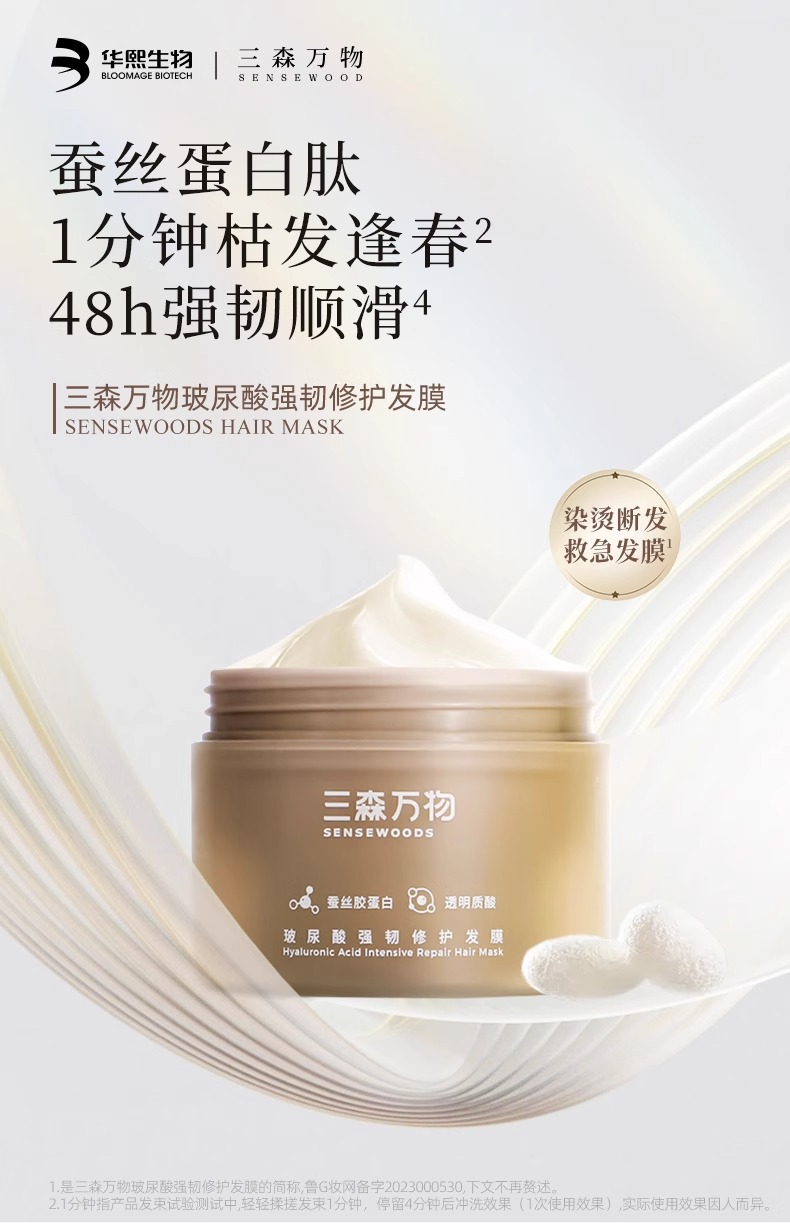 【董洁同款 买一送一】华熙高端精研洗护 三森万物玻尿酸强韧修护发膜200g/盒*2+送10ml试用装