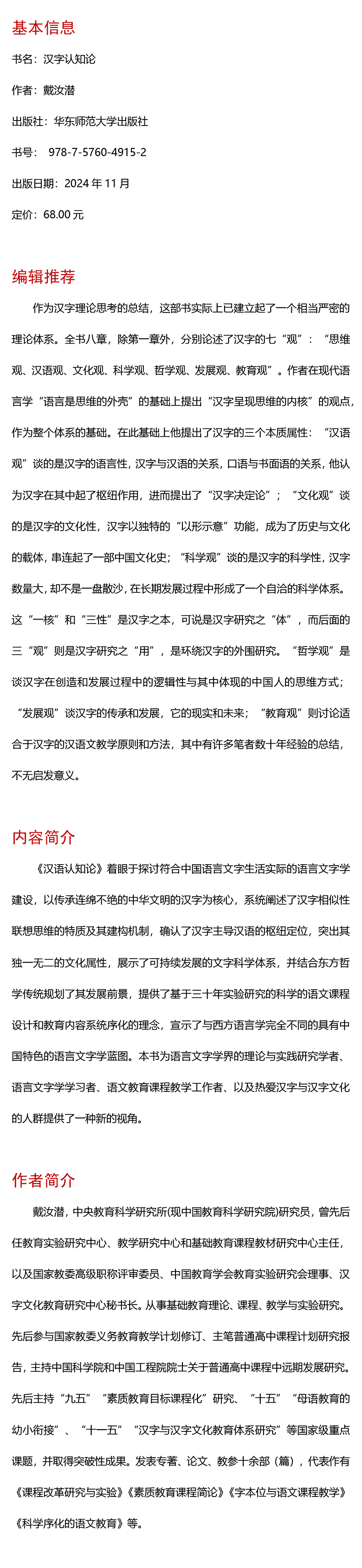 汉字认知论 戴汝潜 汉字理论思考 语言文字学