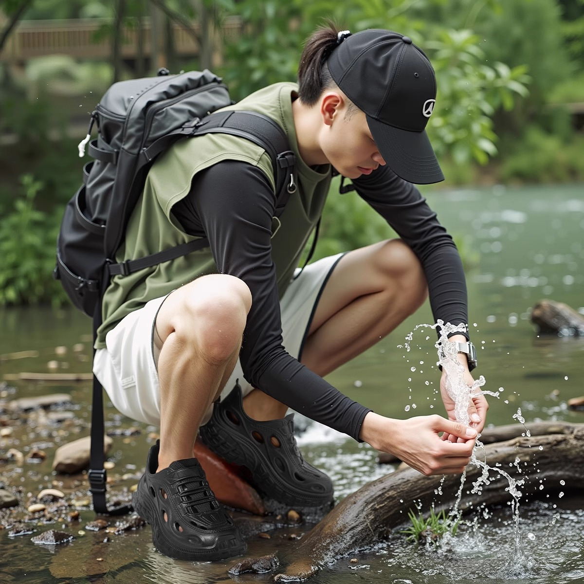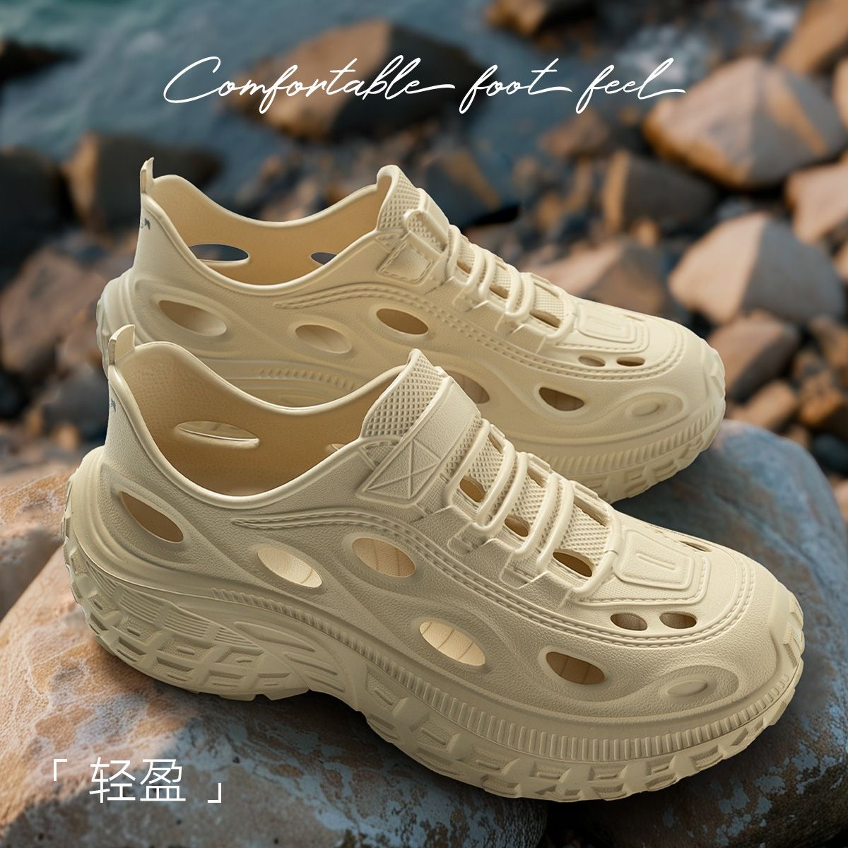 ✅柔软轻盈EVA材质鞋头加宽防撞设计,回弹力好360°透气透水孔环无负担。