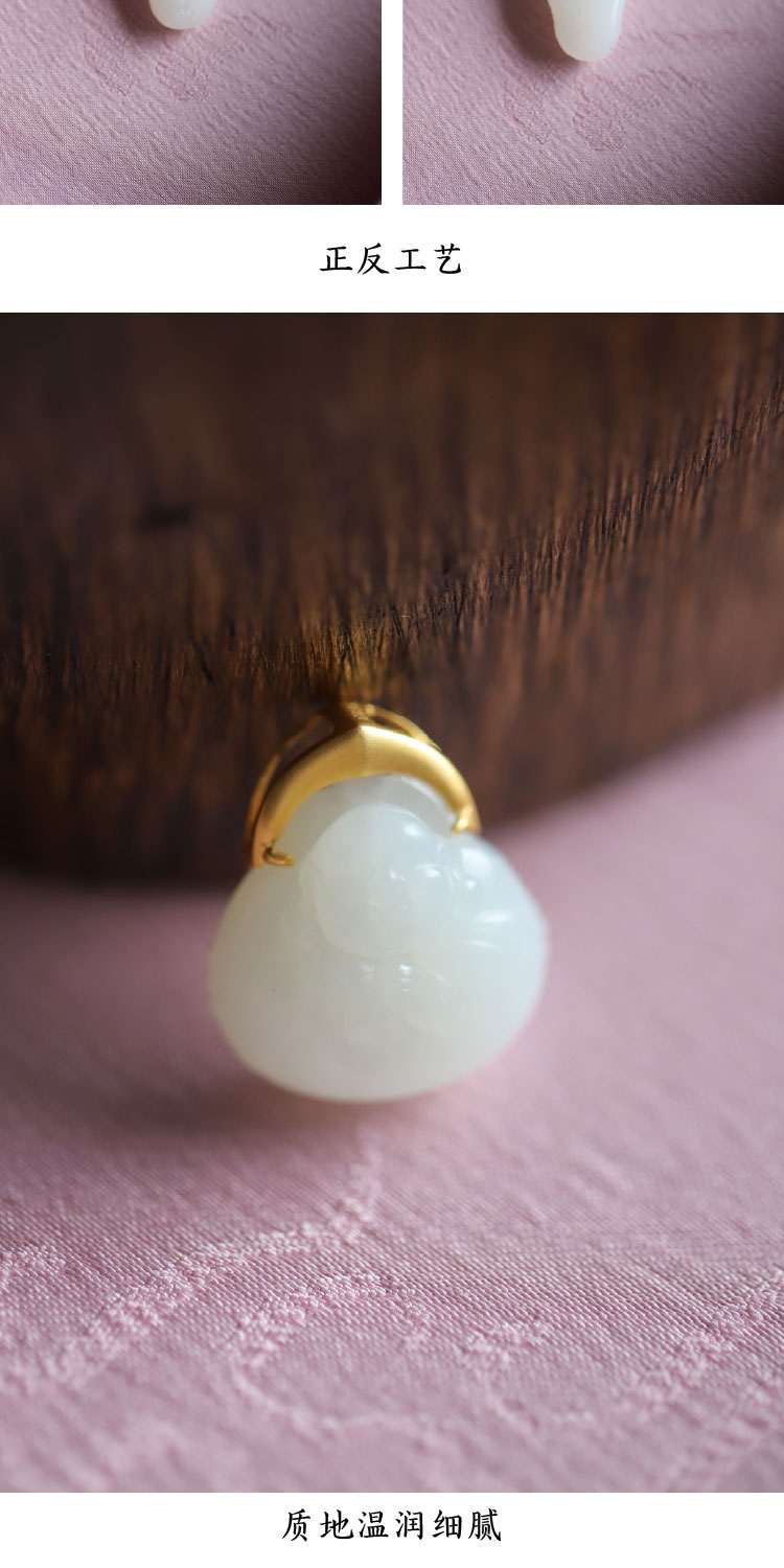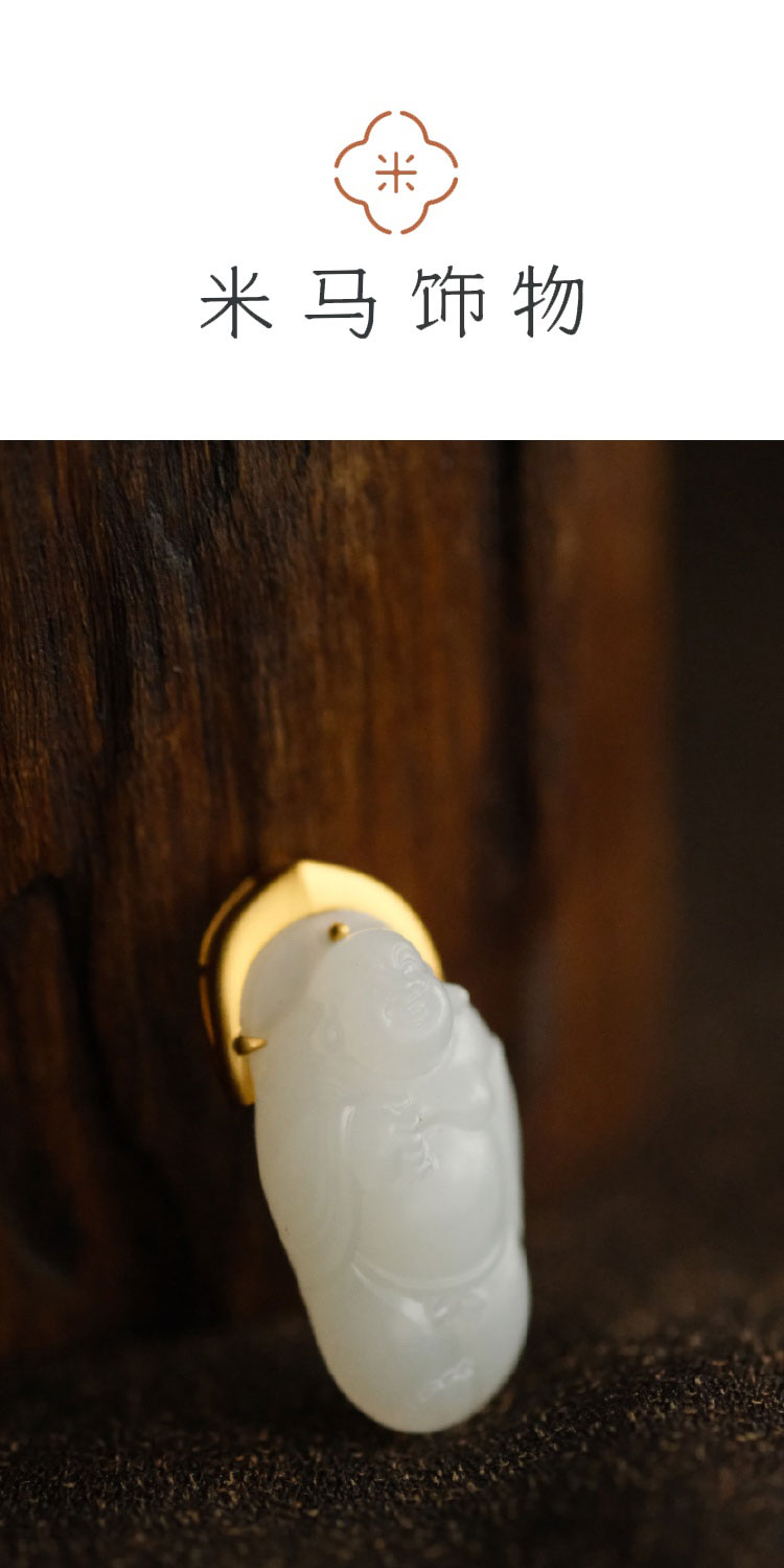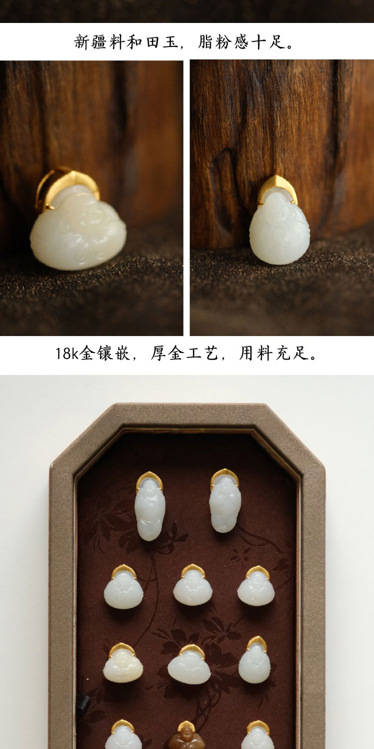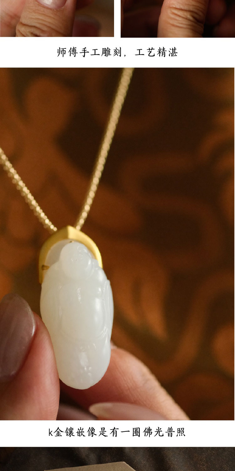 米马饰物 新疆和田玉白玉佛公吊坠——18K金镶嵌 过灯料
