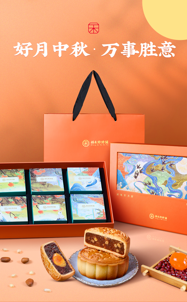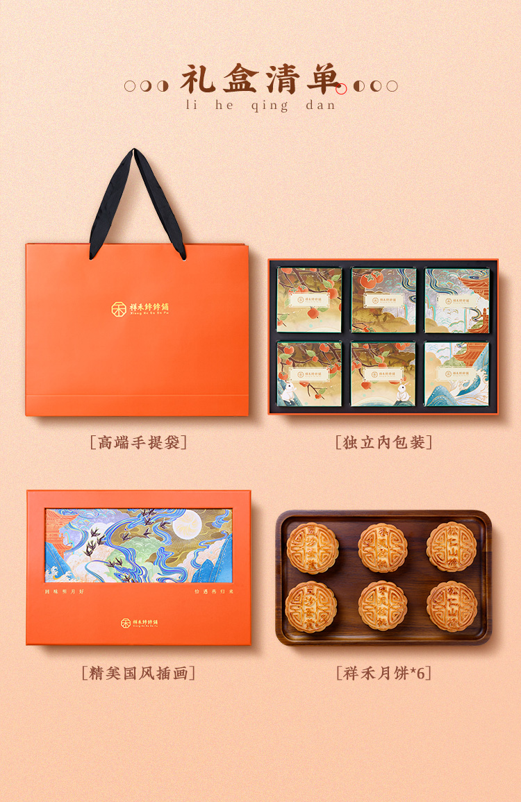 祥禾饽饽铺万事胜意松仁山楂核桃枣泥豆沙蛋黄月饼中秋送礼盒包装